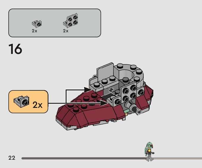 On this page you can find the original construction manual for the LEGO 75344 set. With the assembly manual you can easily learn how to build the 75344 Boba Fett's Starship Microfighter step by step. The set was released in 2023.
