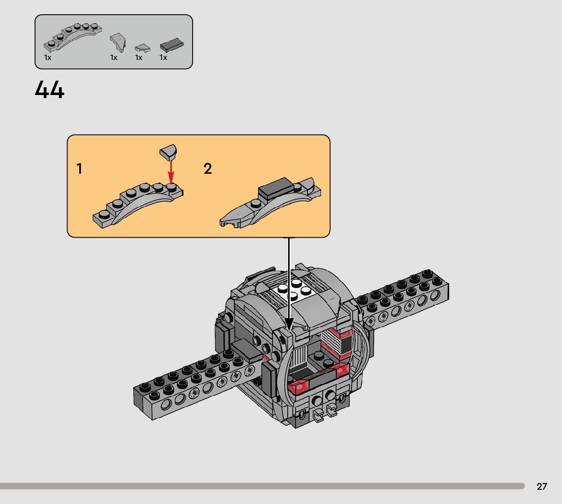 On this page you can find the original construction manual for the LEGO 75348 set. With the assembly manual you can easily learn how to build the 75348 Mandalorian Fang Fighter vs. TIE Interceptor step by step. The set was released in 2023.
