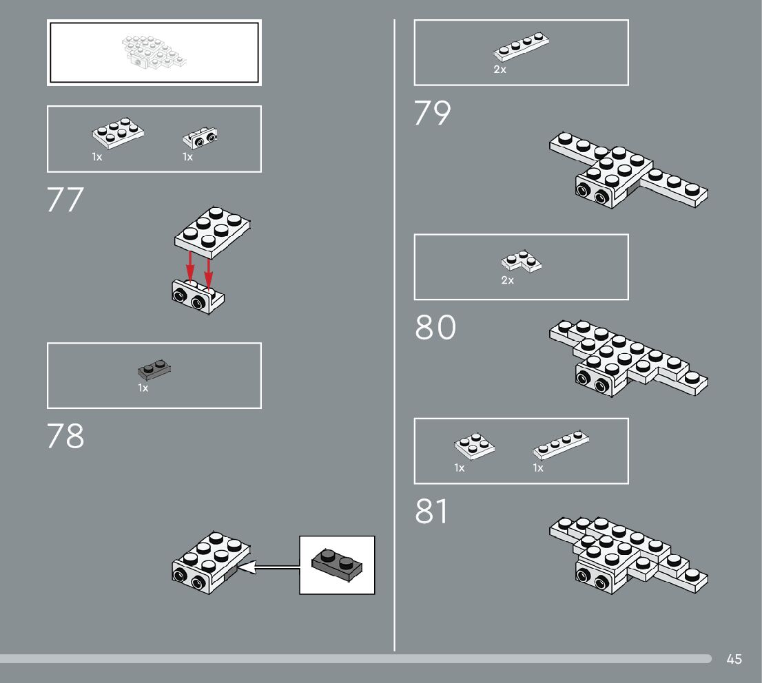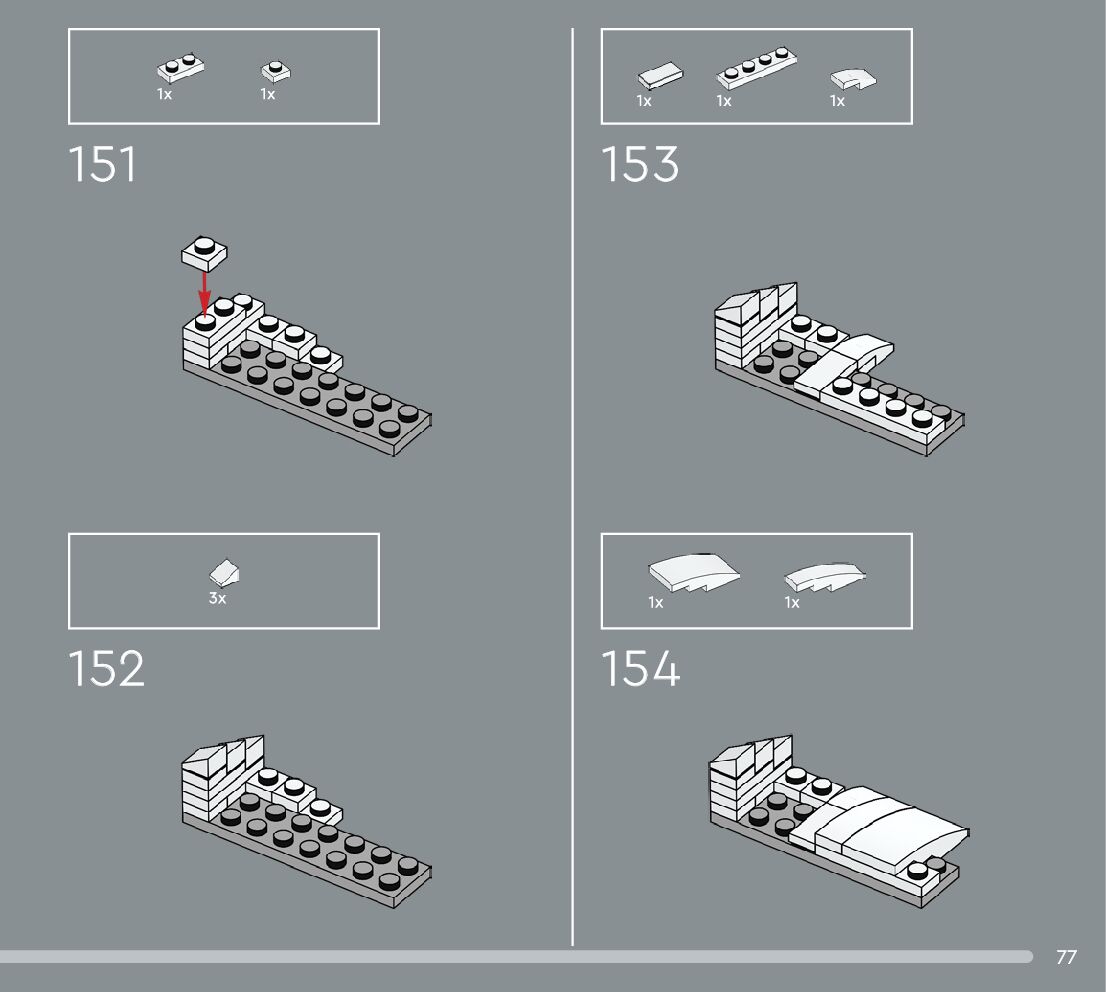 The assembly guide is prepared in a very understandable way for children and adult LEGO enthusiasts. A total of 152 picture galleries are shown, explaining the step-by-step construction stages for 1 different structures.