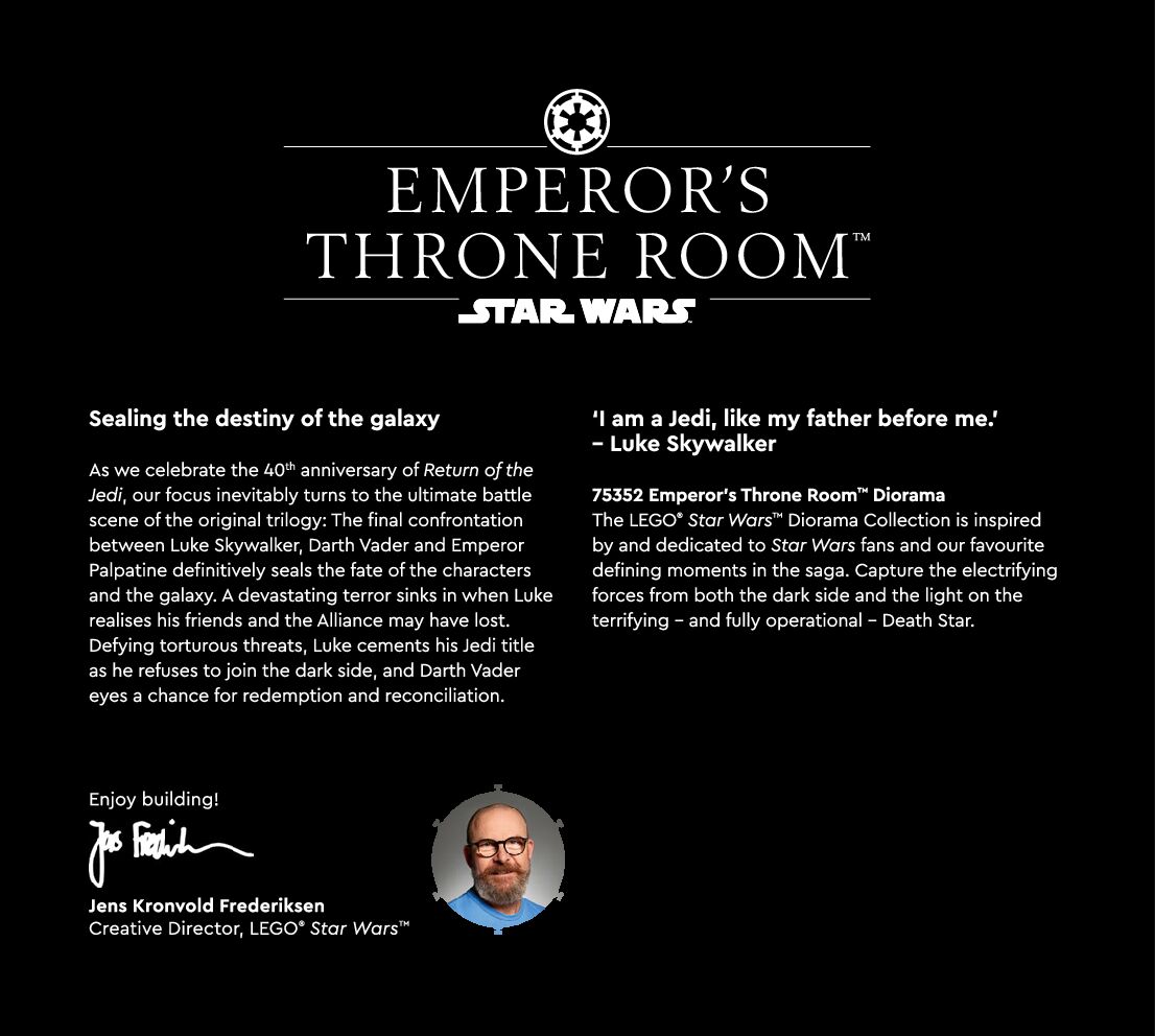 This page shares information about LEGO 75352 Emperor's Throne Room Diorama manual, LEGO 75352 PDF instructions, LEGO 75352 Emperor's Throne Room Diorama building guide online, How to build 75352 Emperor's Throne Room Diorama LEGO.