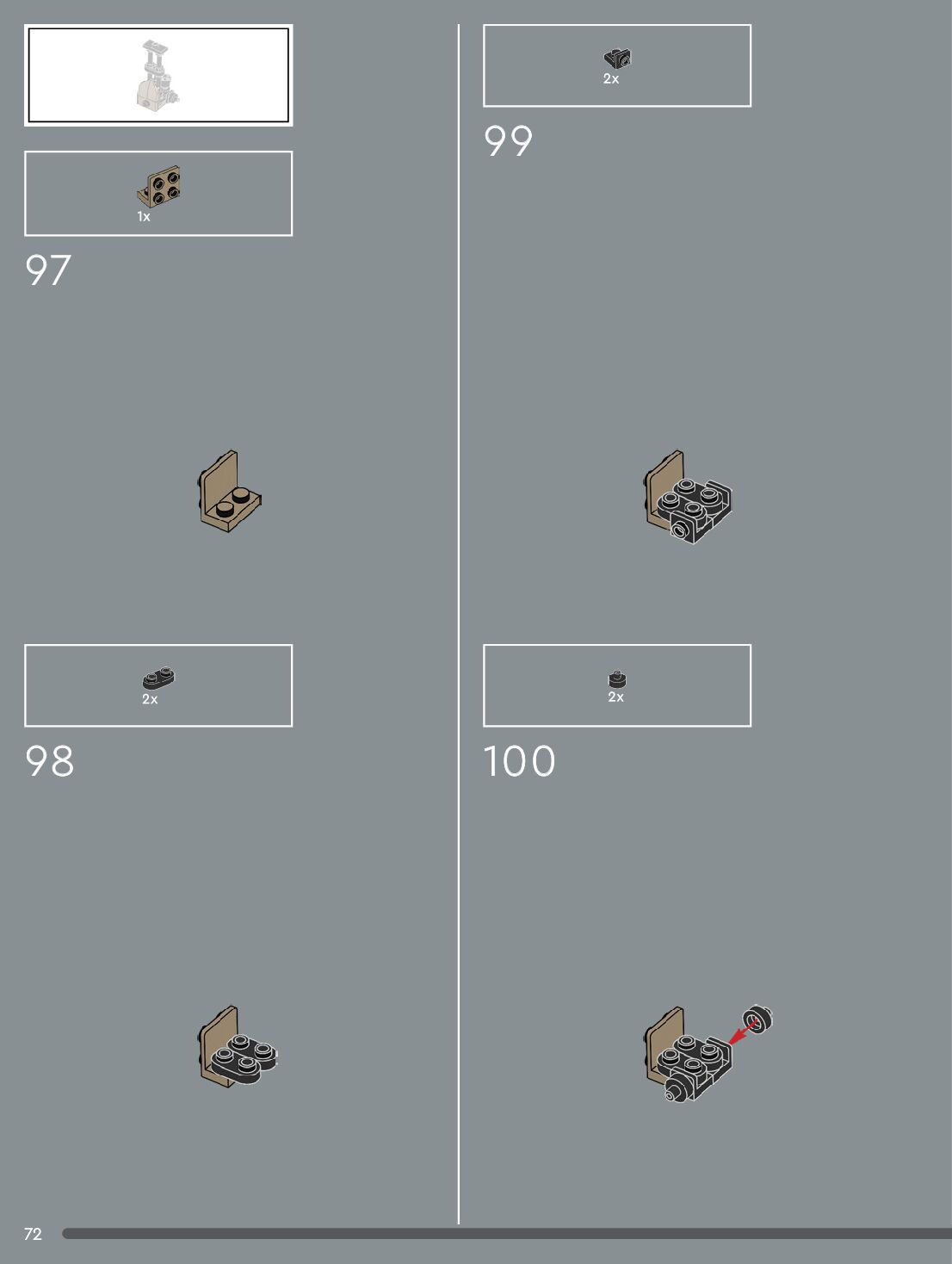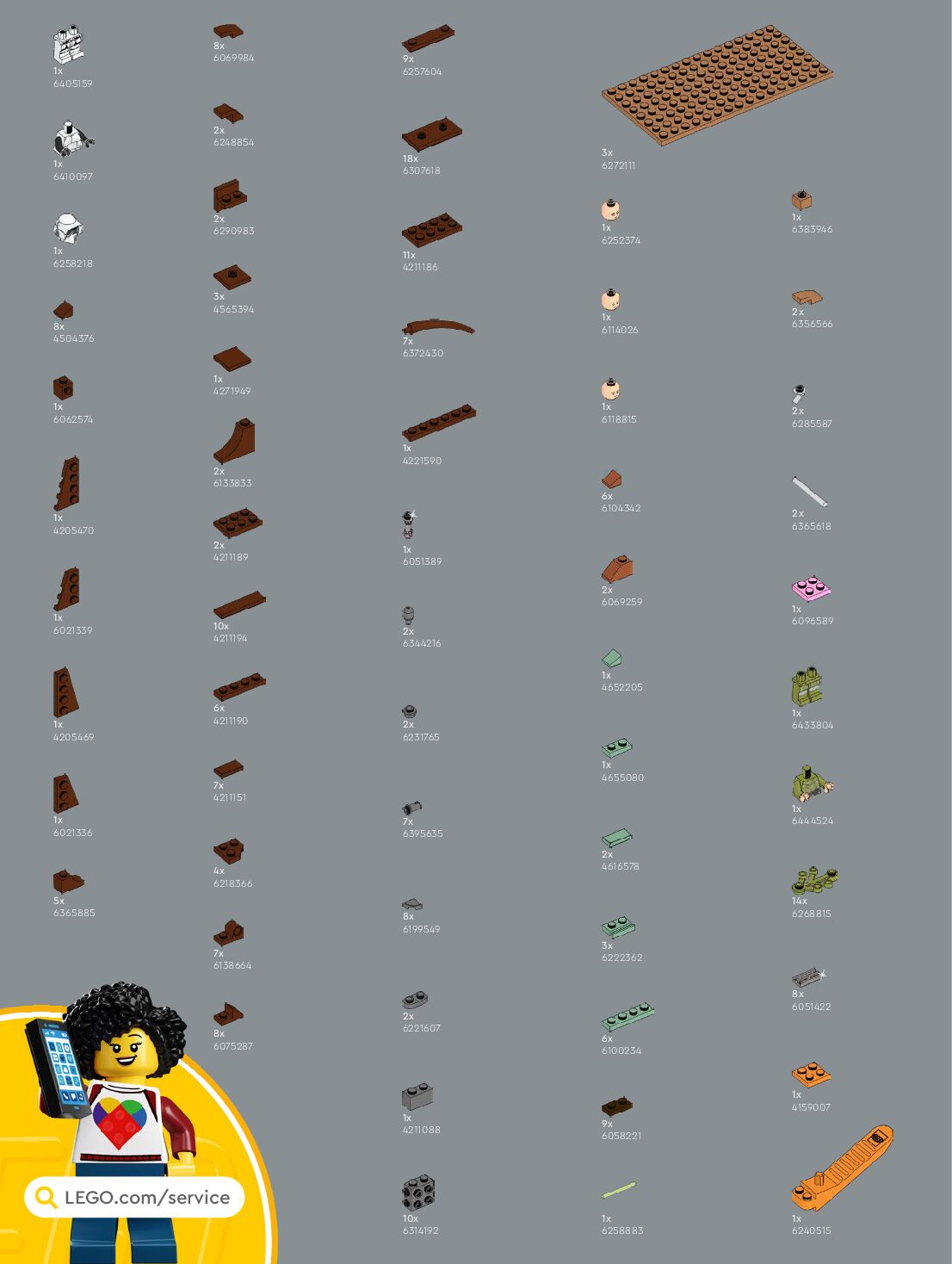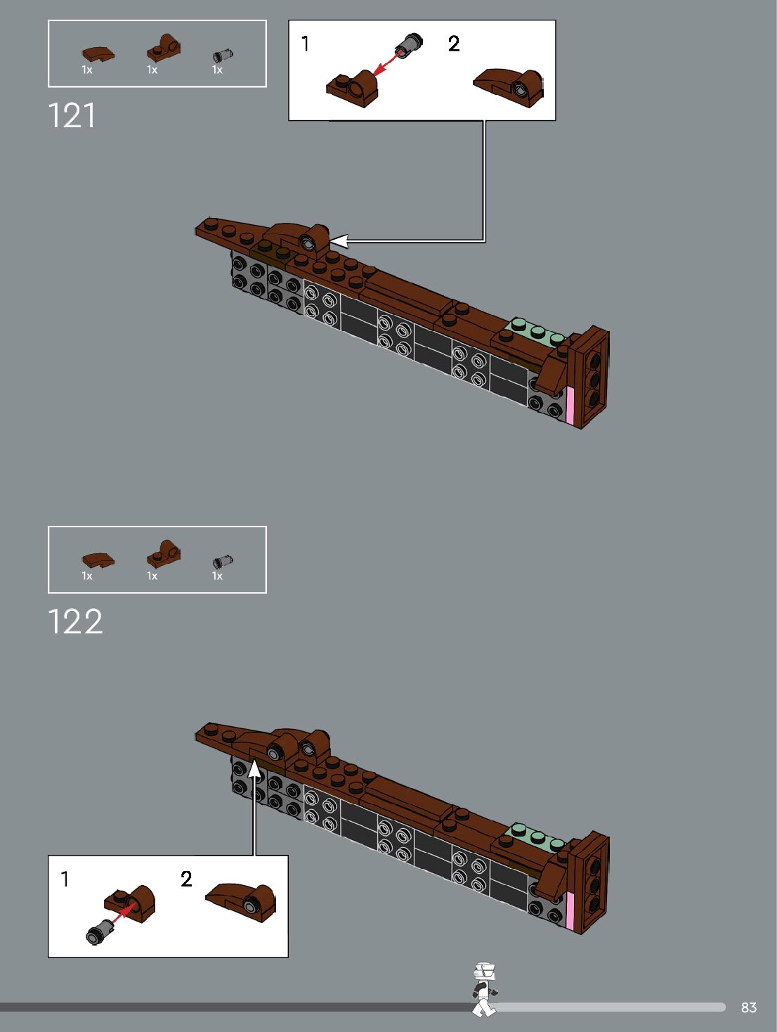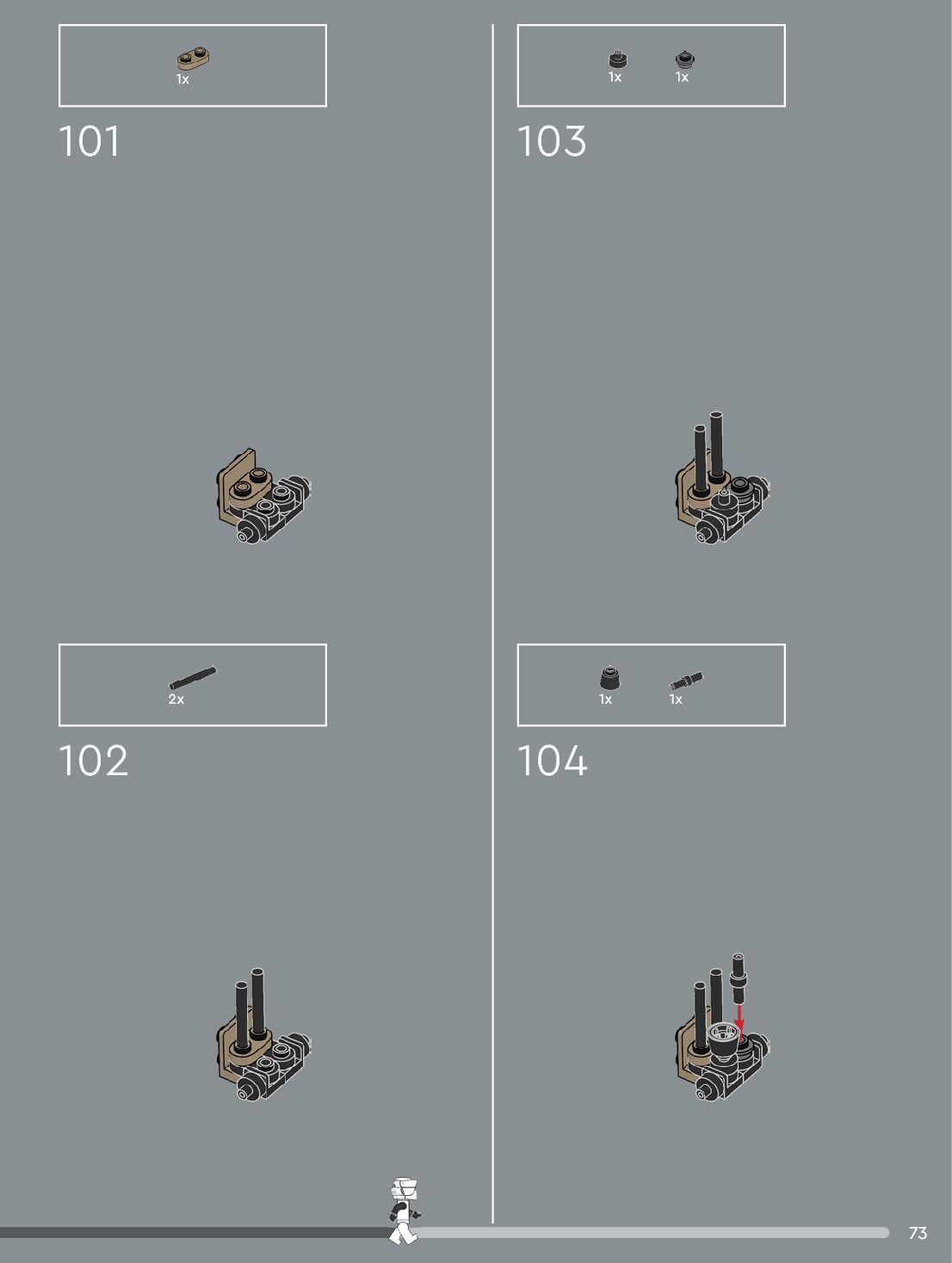 The assembly guide is prepared in a very understandable way for children and adult LEGO enthusiasts. A total of 104 picture galleries are shown, explaining the step-by-step construction stages for 1 different structures.