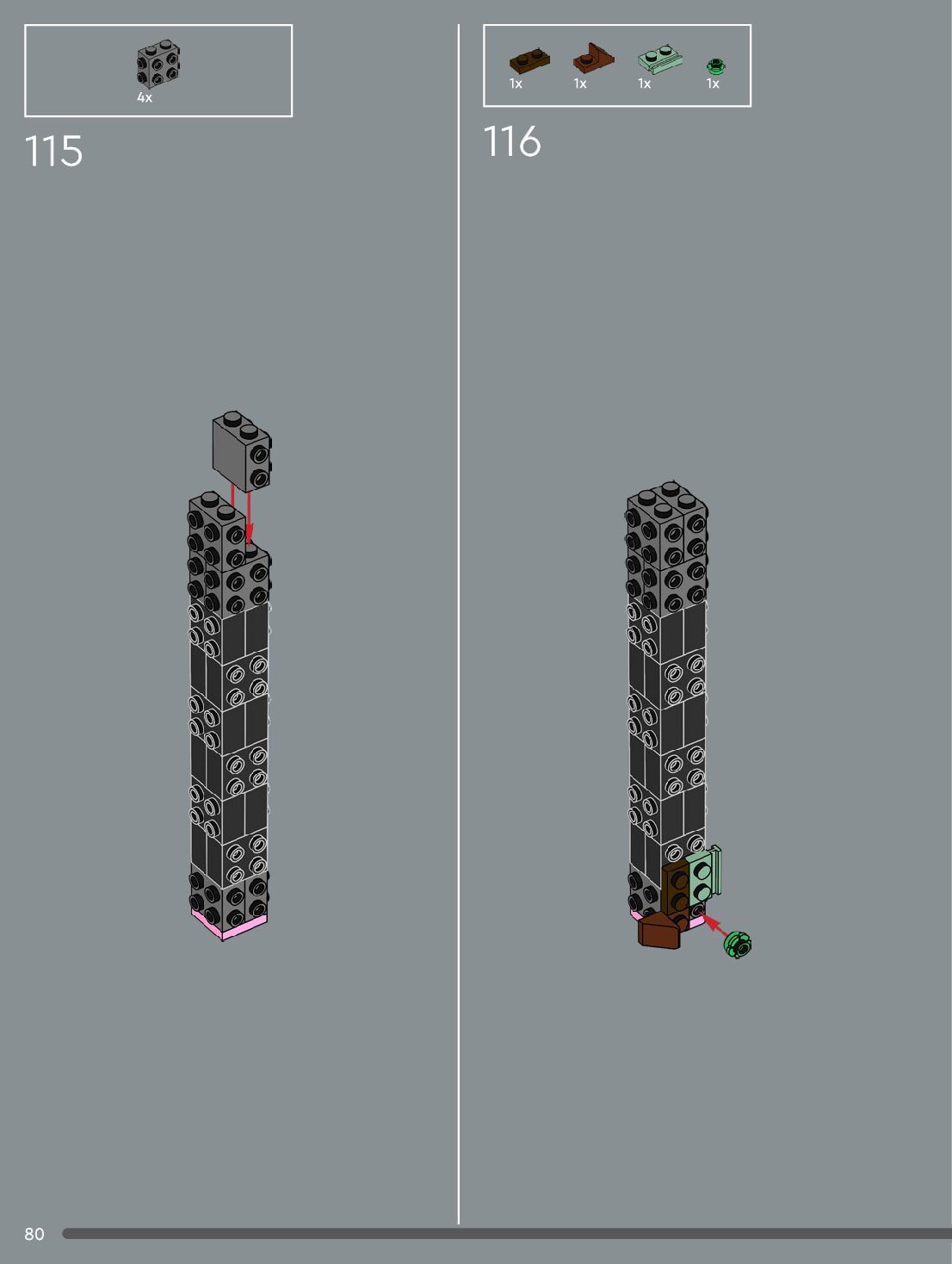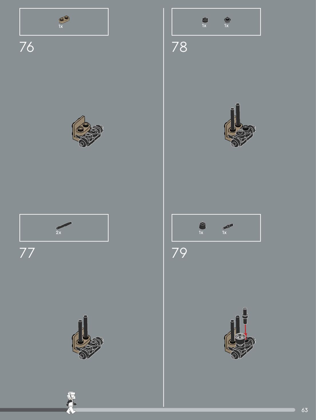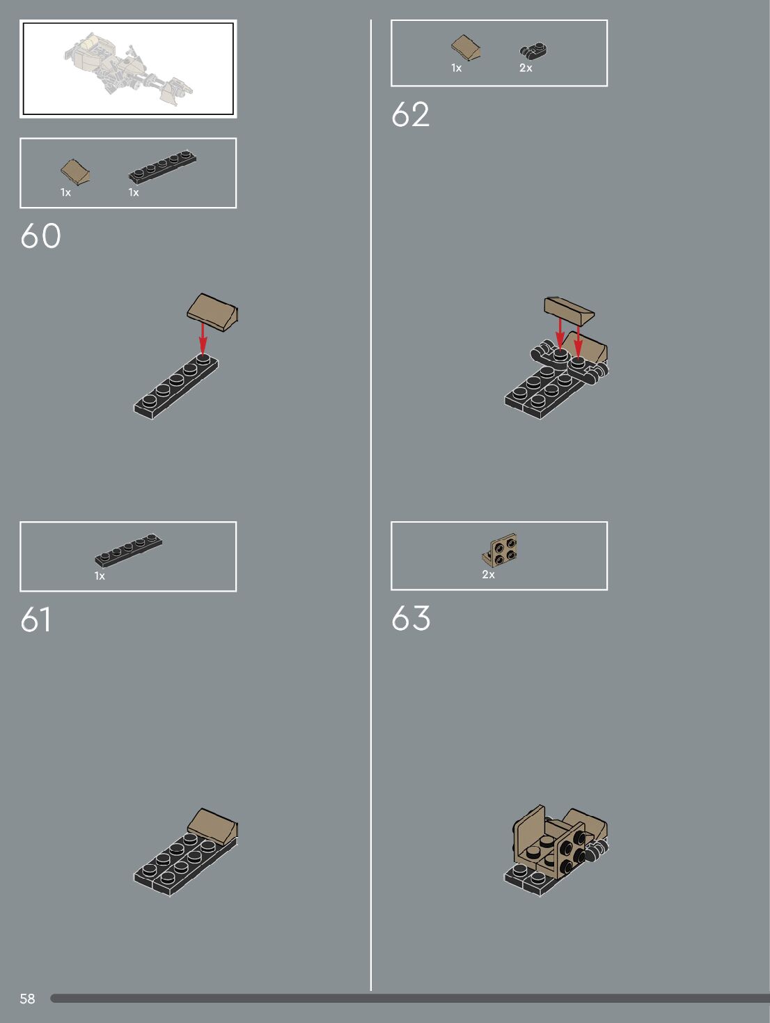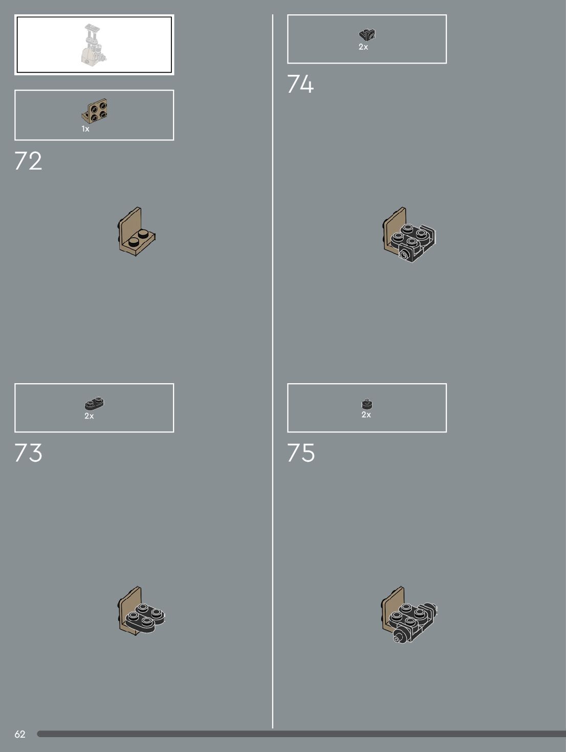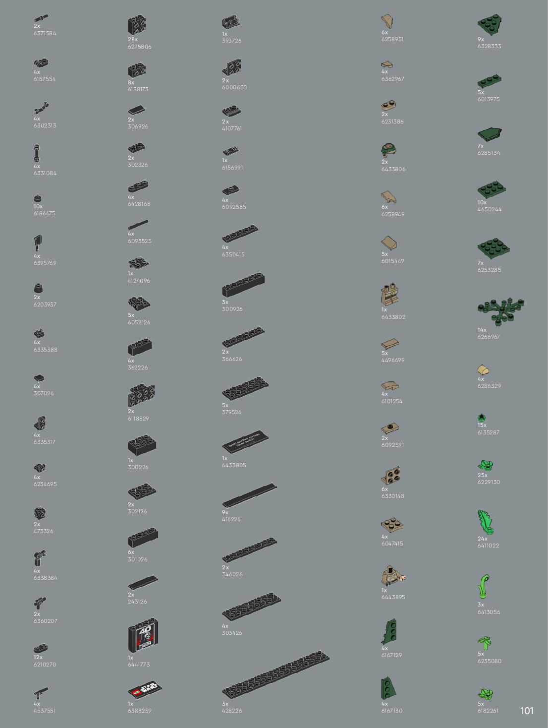 The assembly guide is prepared in a very understandable way for children and adult LEGO enthusiasts. A total of 104 picture galleries are shown, explaining the step-by-step construction stages for 1 different structures.