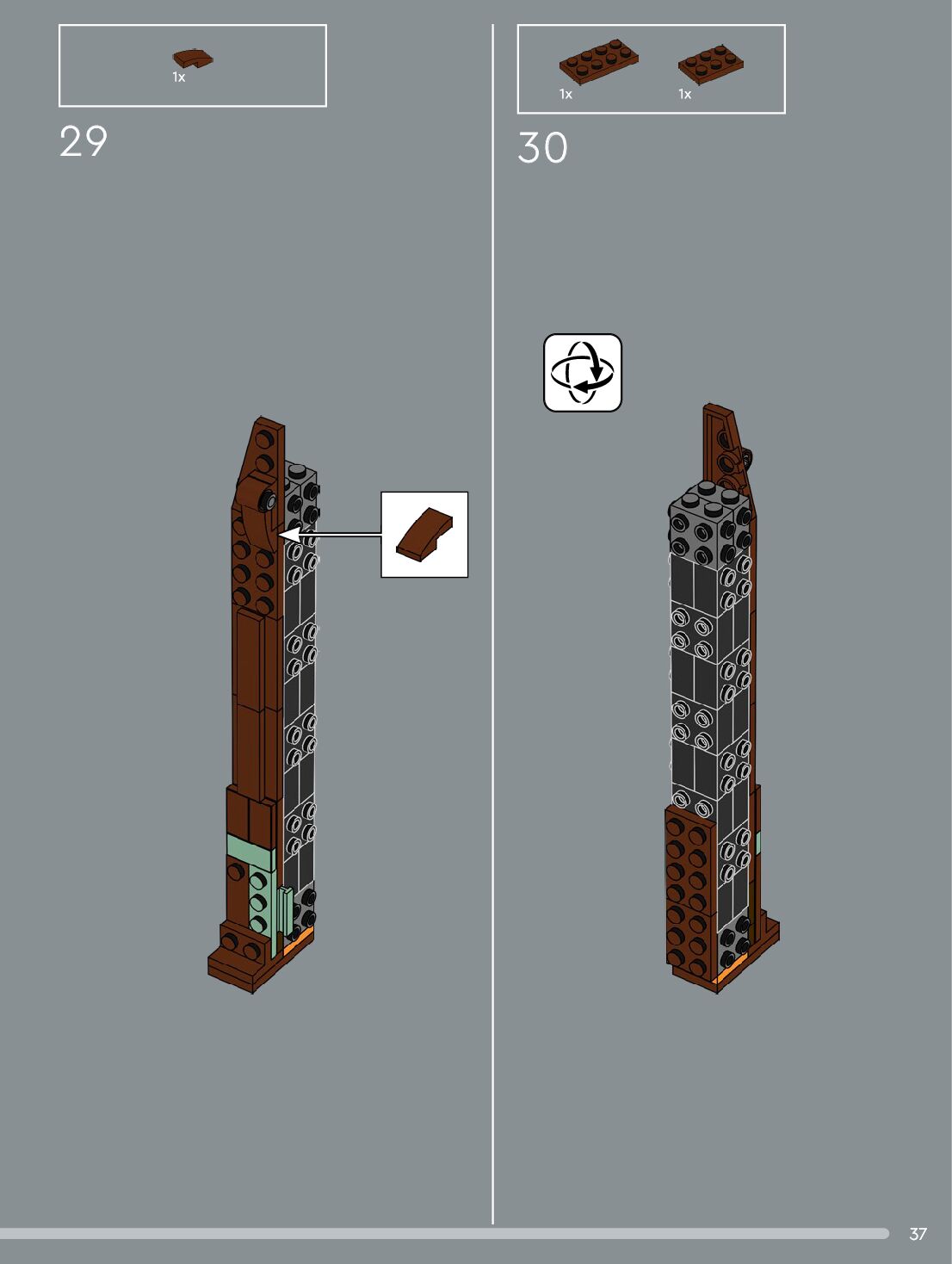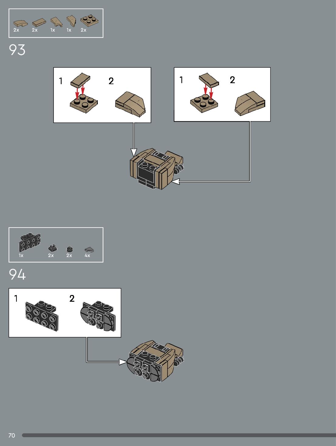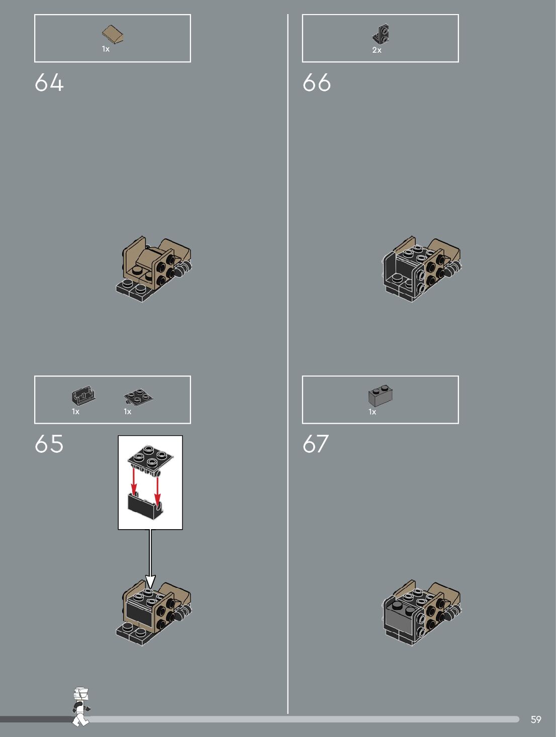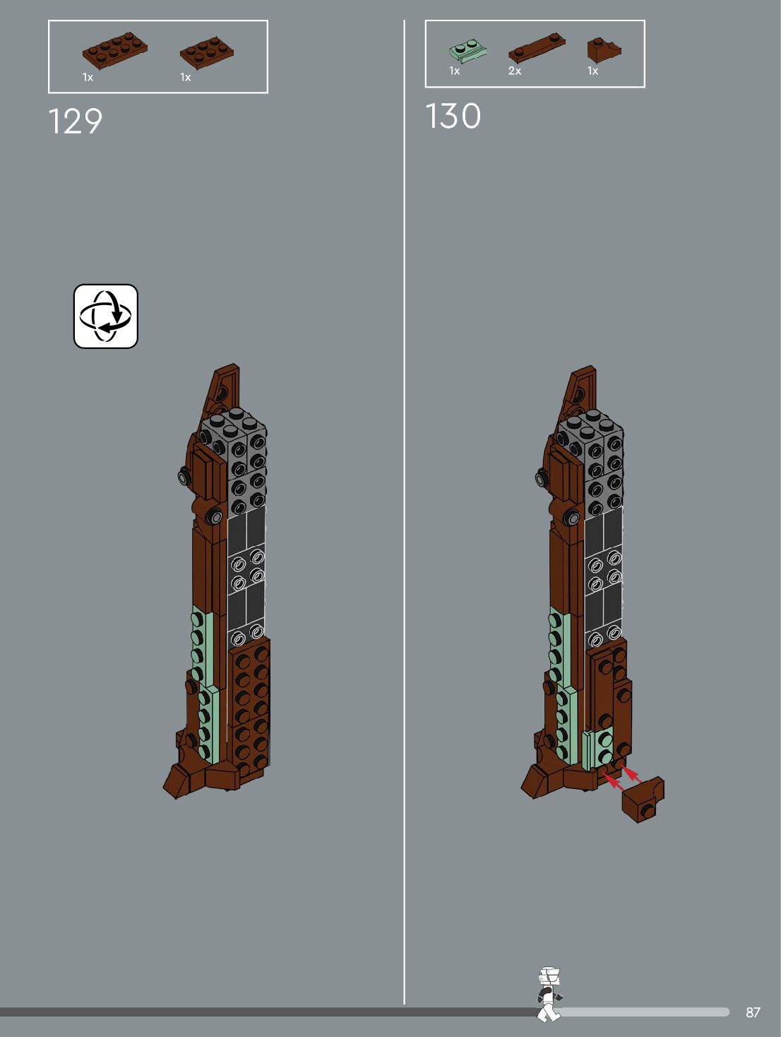 The assembly guide is prepared in a very understandable way for children and adult LEGO enthusiasts. A total of 104 picture galleries are shown, explaining the step-by-step construction stages for 1 different structures.