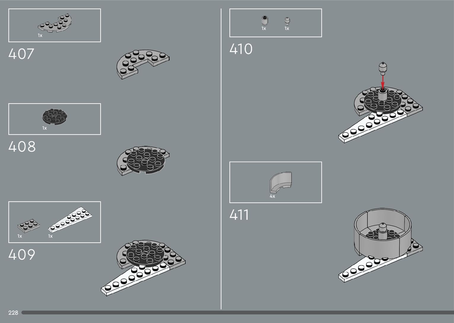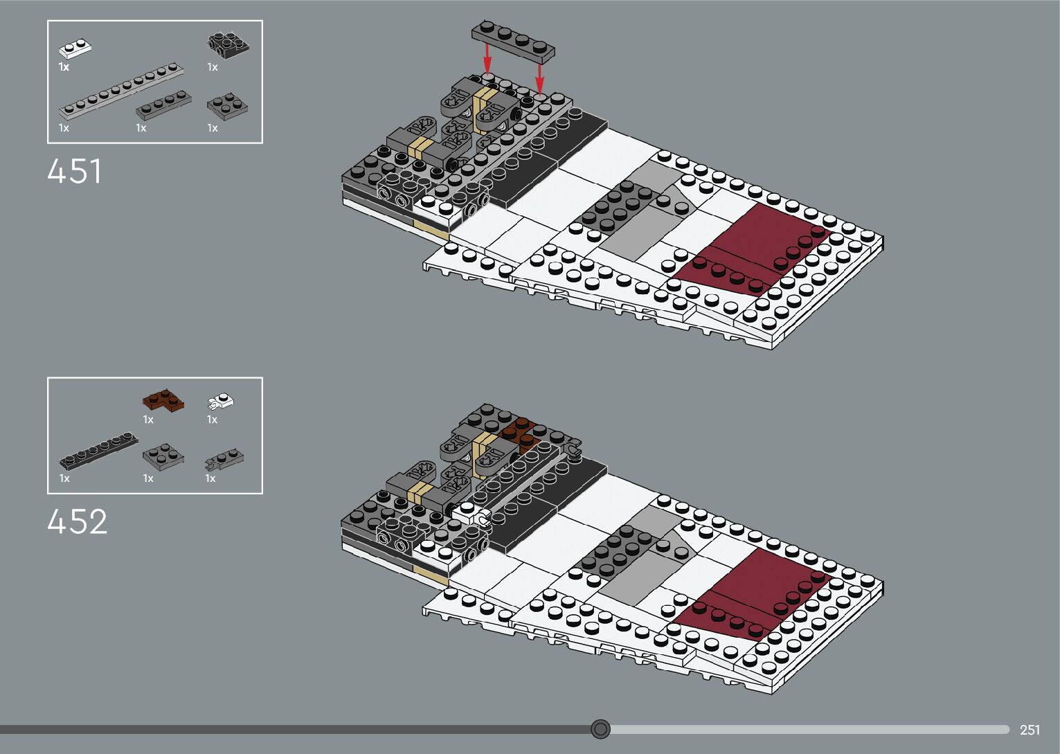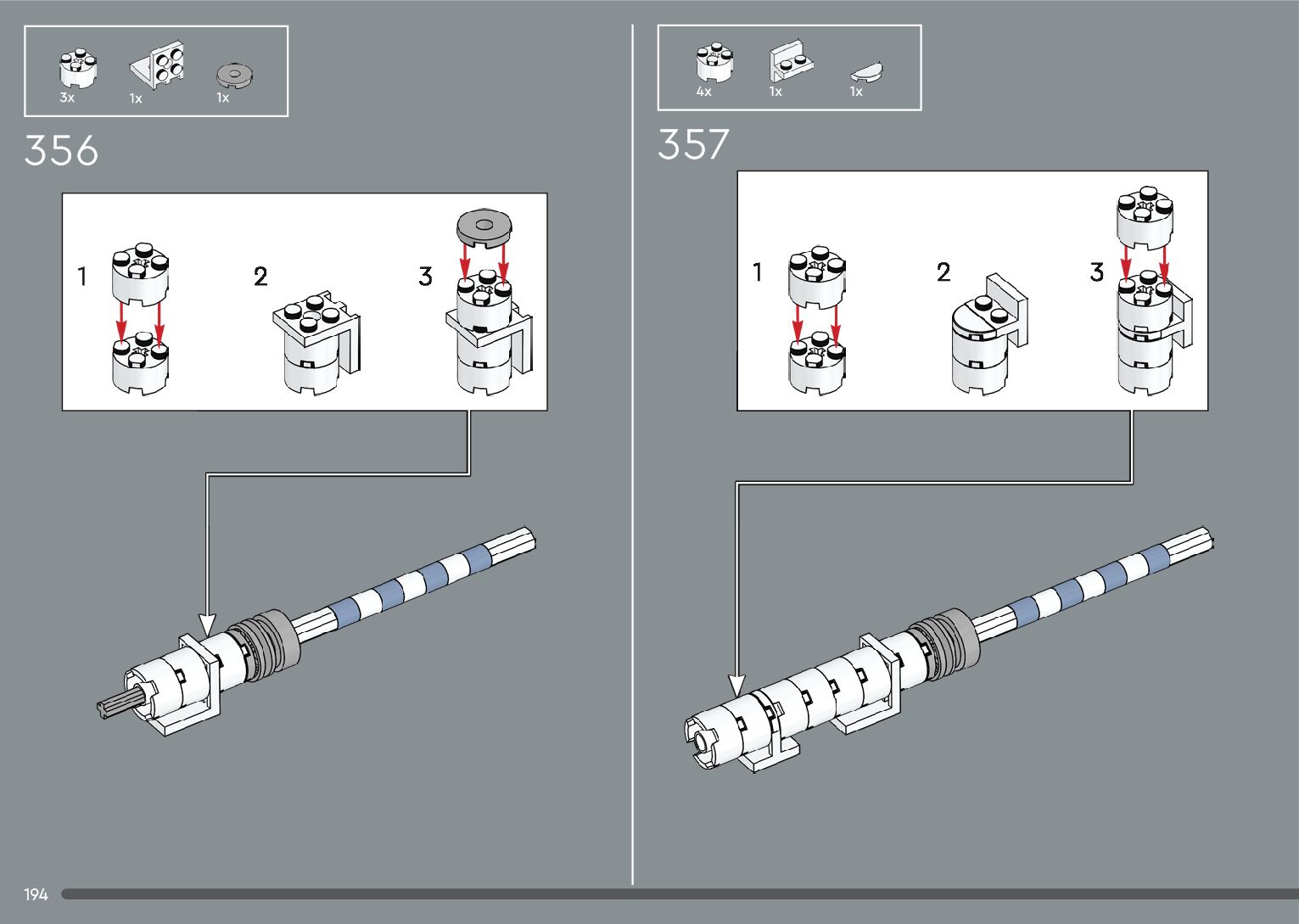The assembly guide is prepared in a very understandable way for children and adult LEGO enthusiasts. A total of 320 picture galleries are shown, explaining the step-by-step construction stages for 1 different structures.