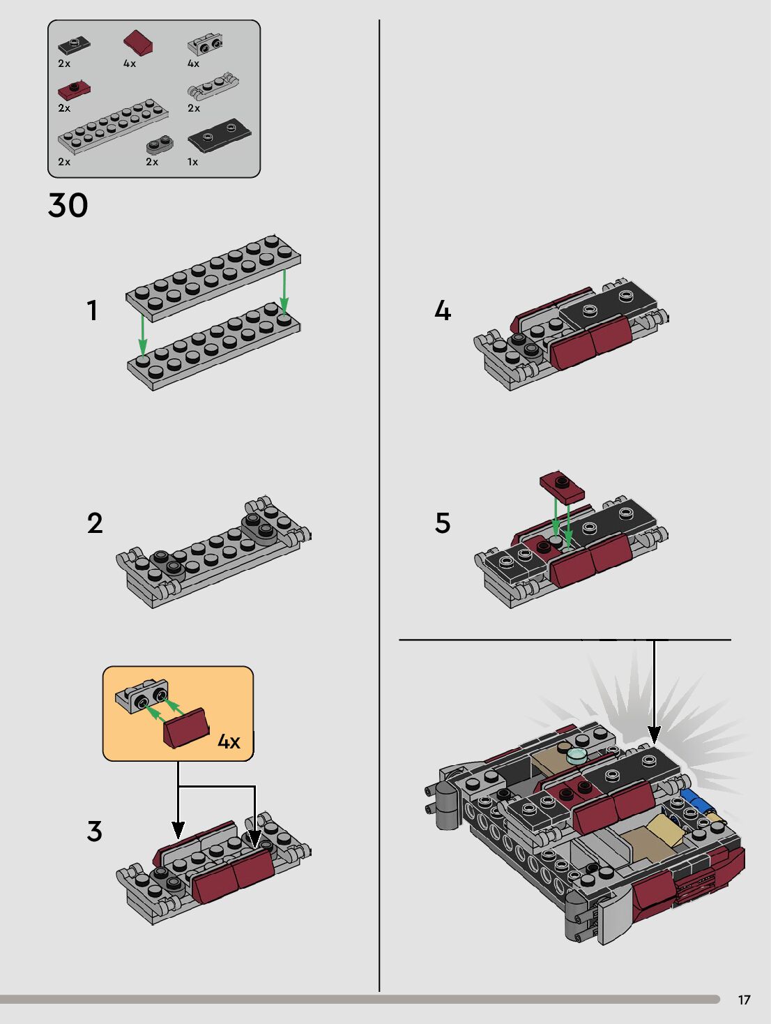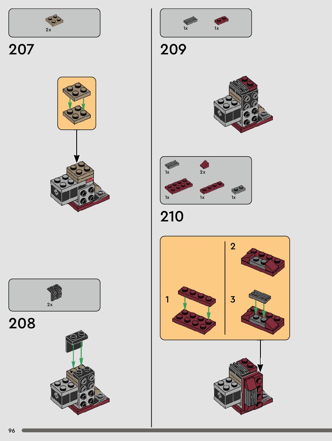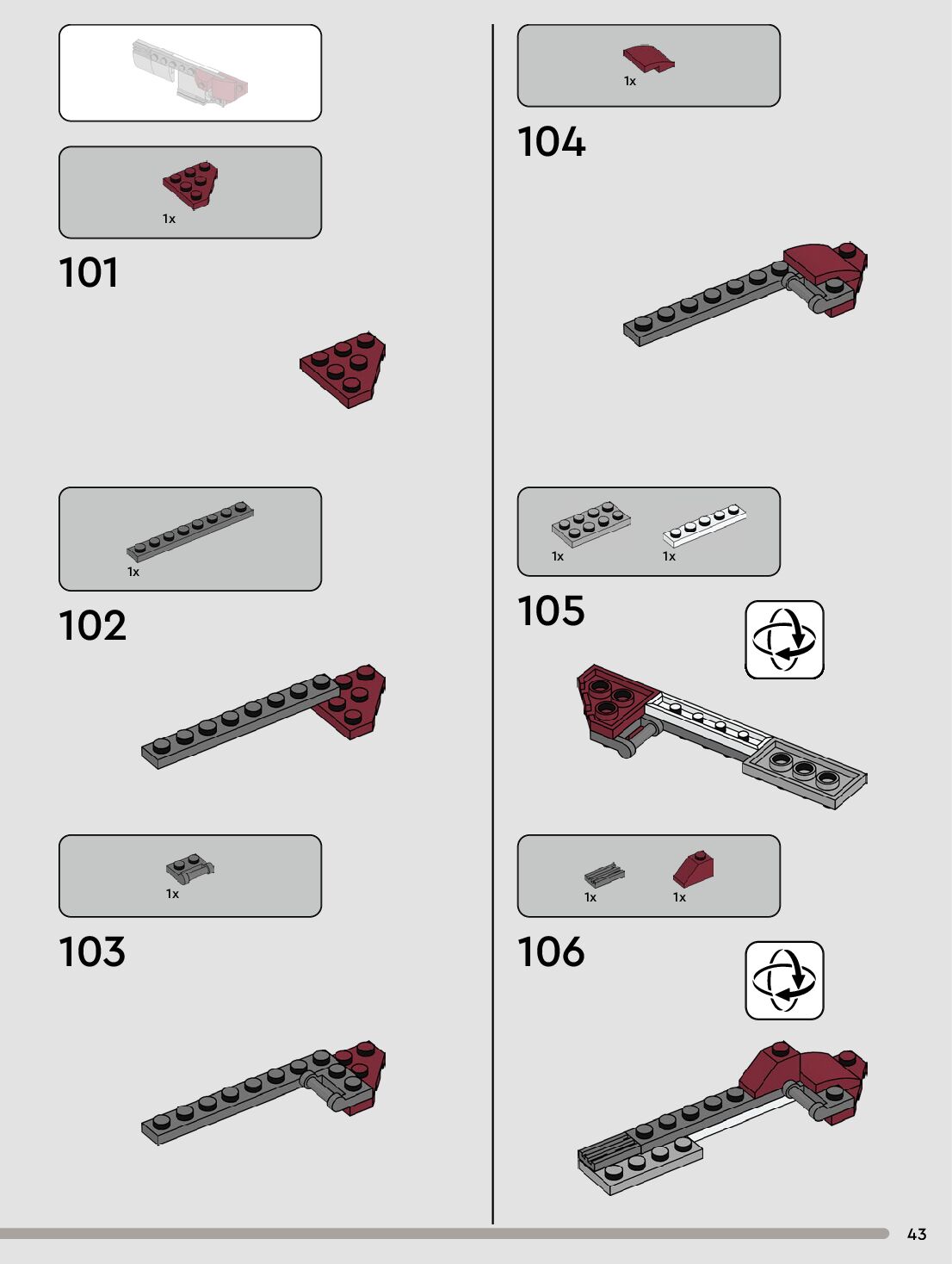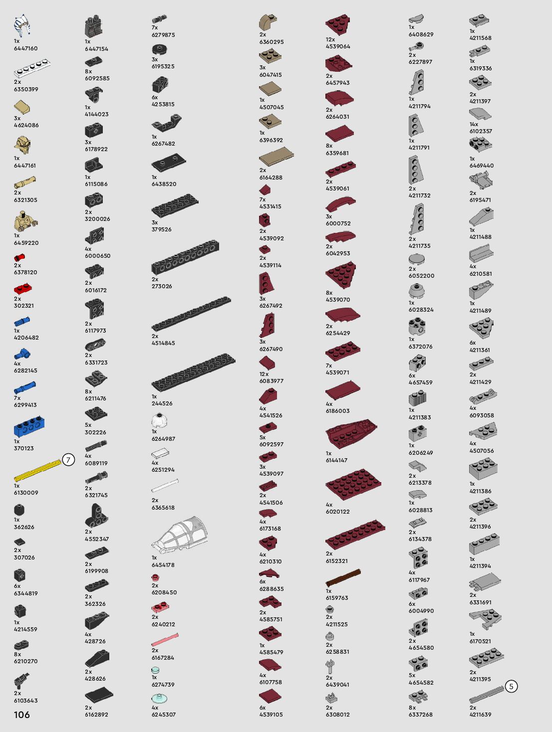 The assembly guide is prepared in a very understandable way for children and adult LEGO enthusiasts. A total of 108 picture galleries are shown, explaining the step-by-step construction stages for 1 different structures.