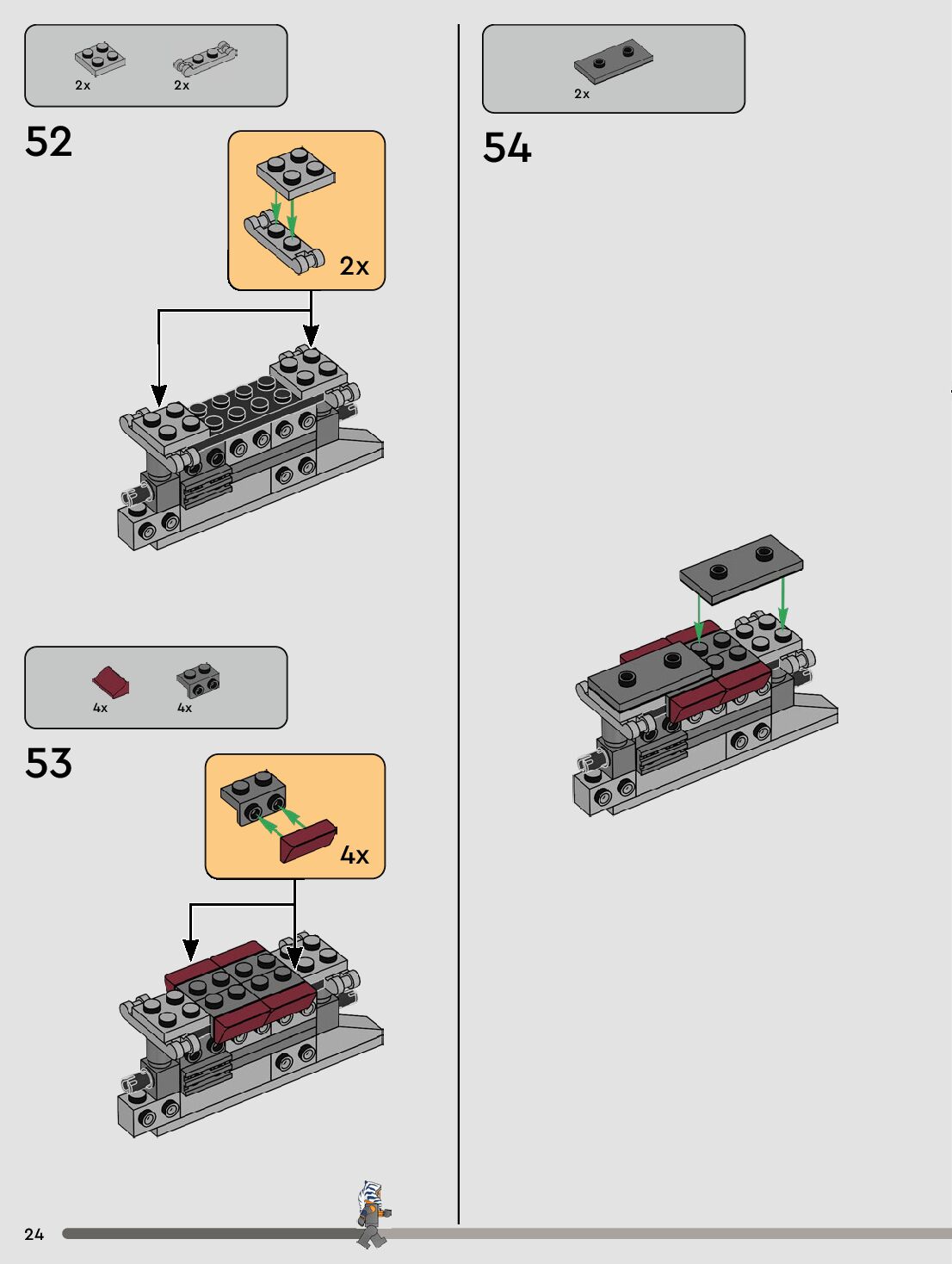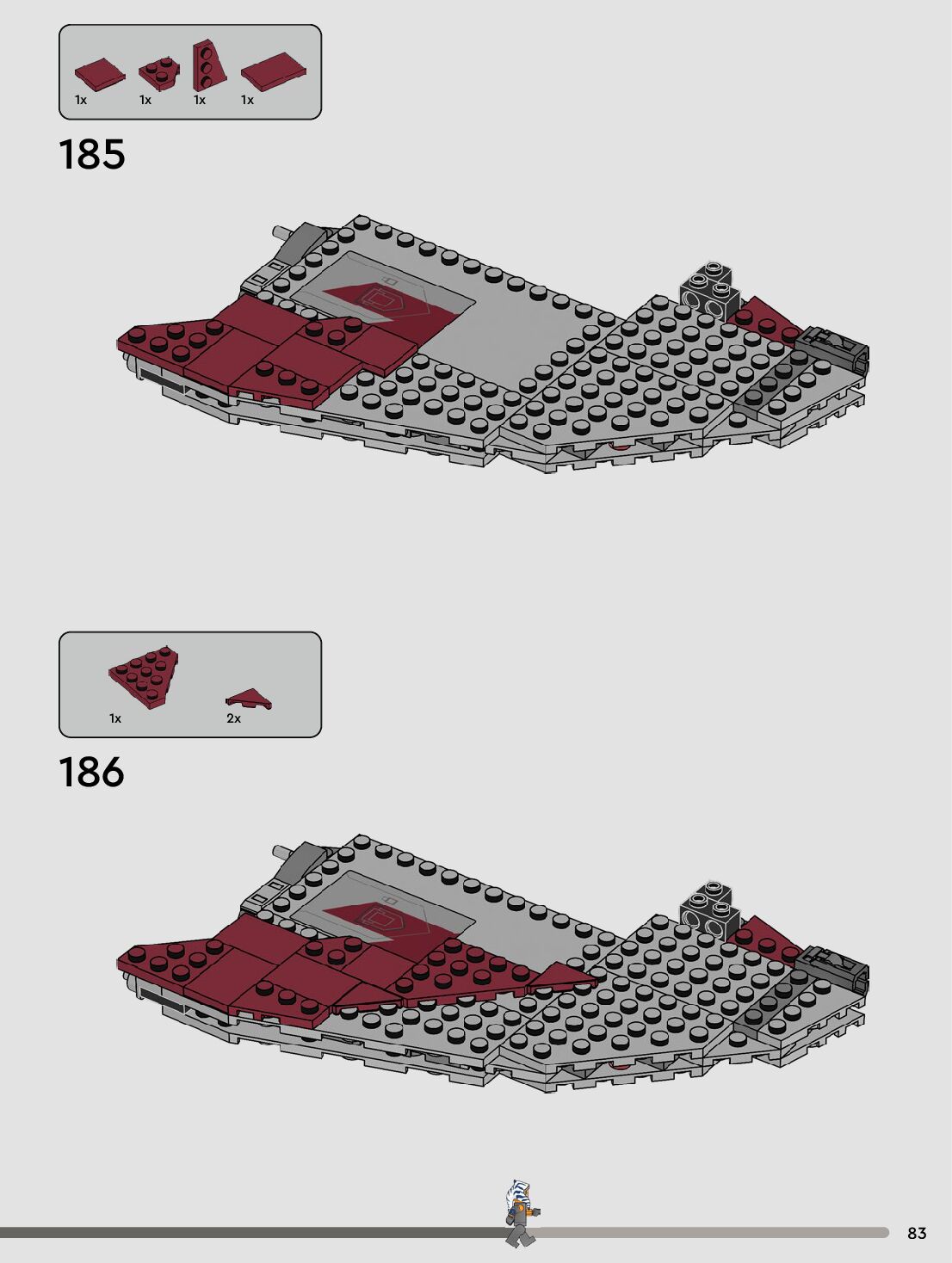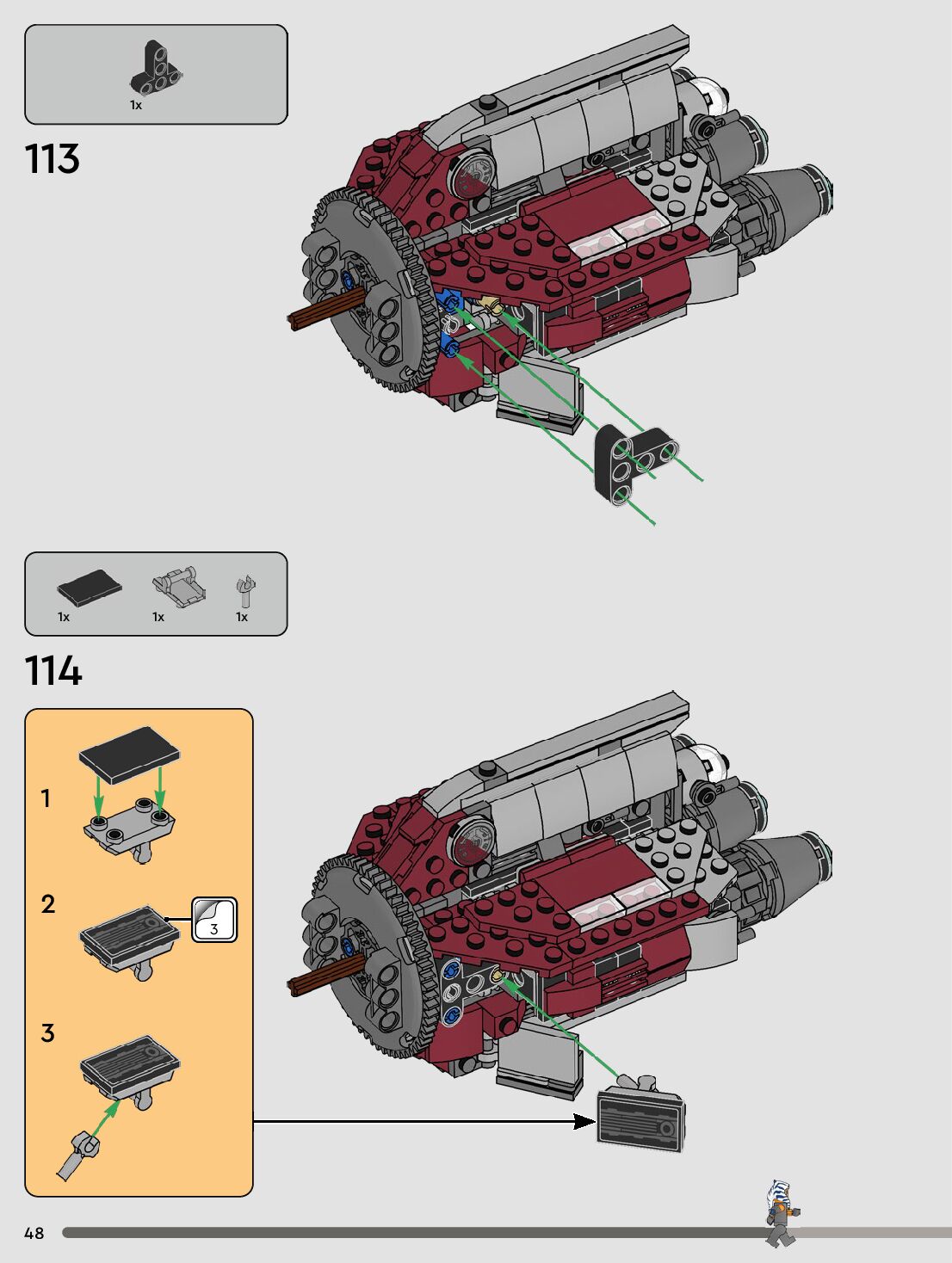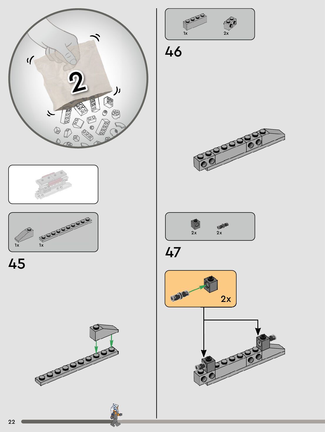 On this page you can find the original construction manual for the LEGO 75362 set. With the assembly manual you can easily learn how to build the 75362 Ahsoka Tano's T-6 Jedi Shuttle step by step. The set was released in 2023.