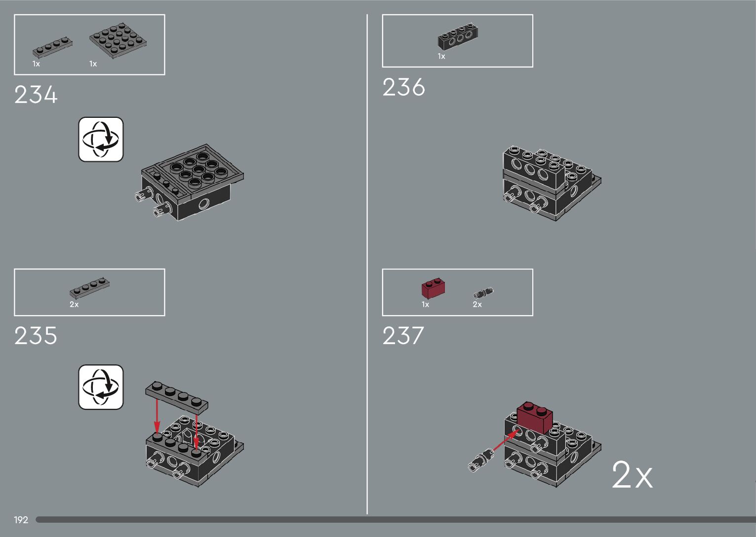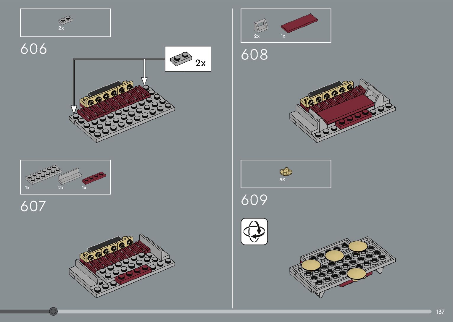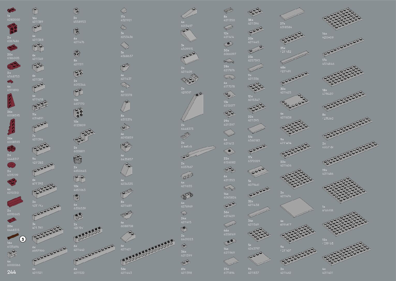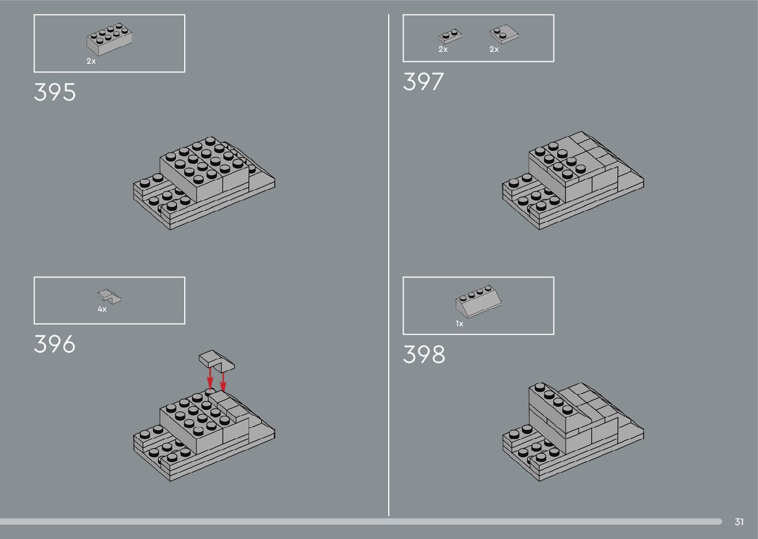 The assembly guide is prepared in a very understandable way for children and adult LEGO enthusiasts. A total of 988 picture galleries are shown, explaining the step-by-step construction stages for 4 different structures.