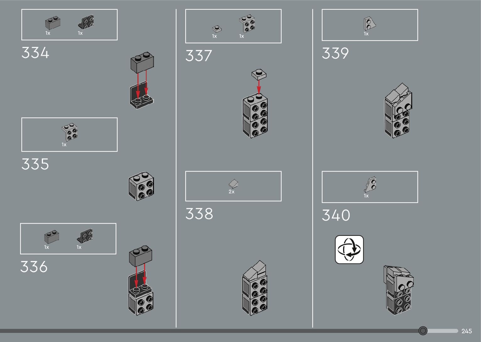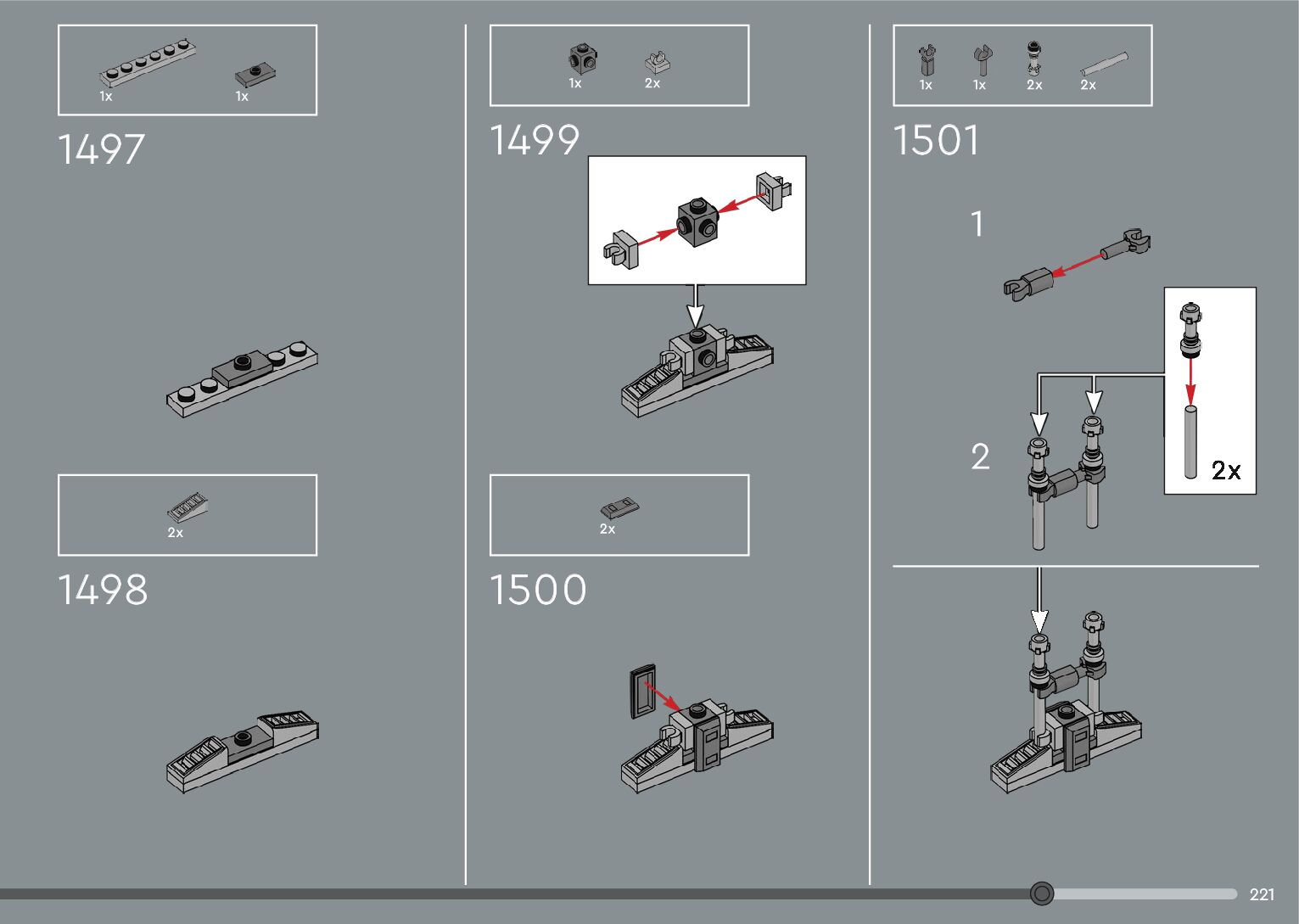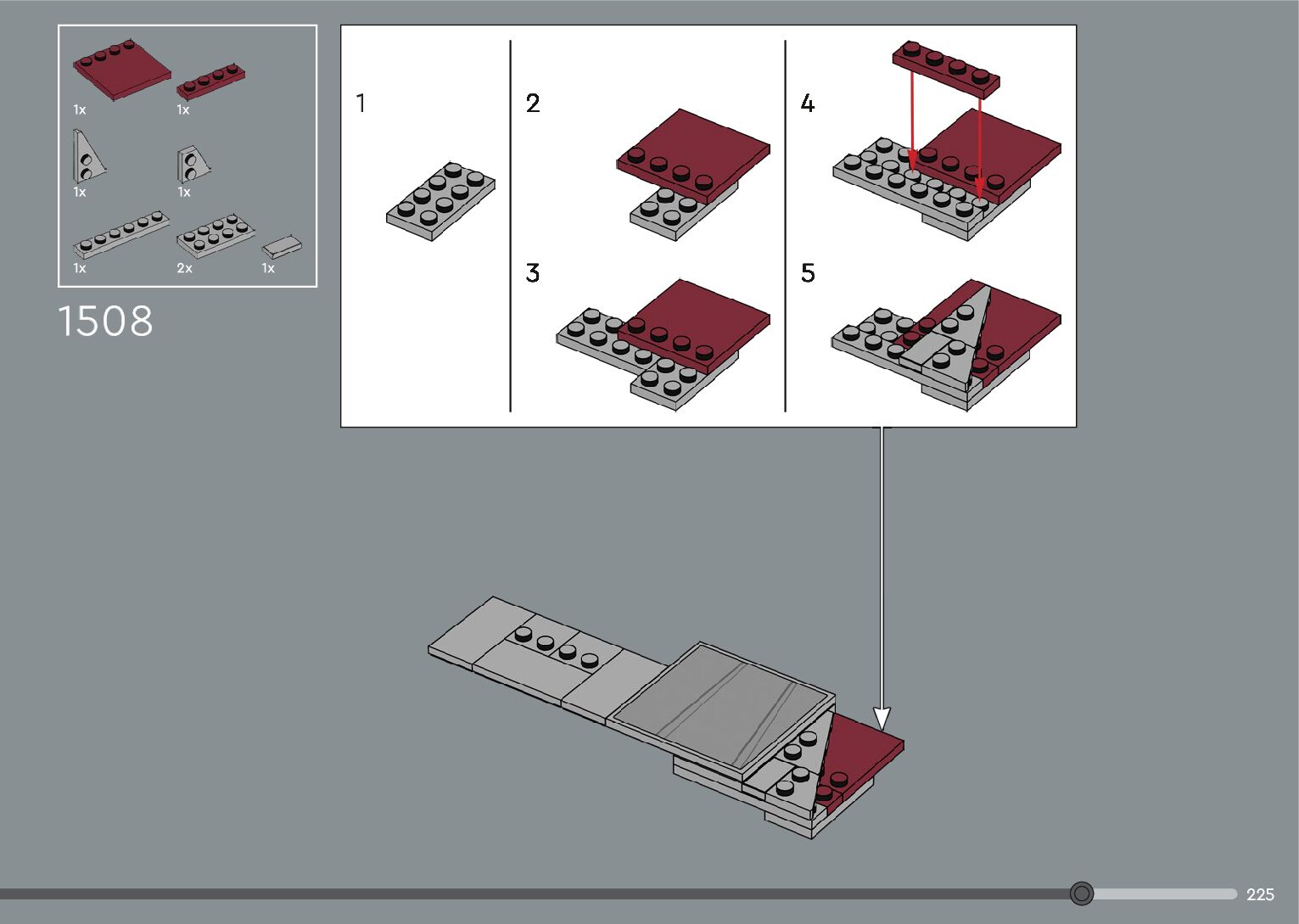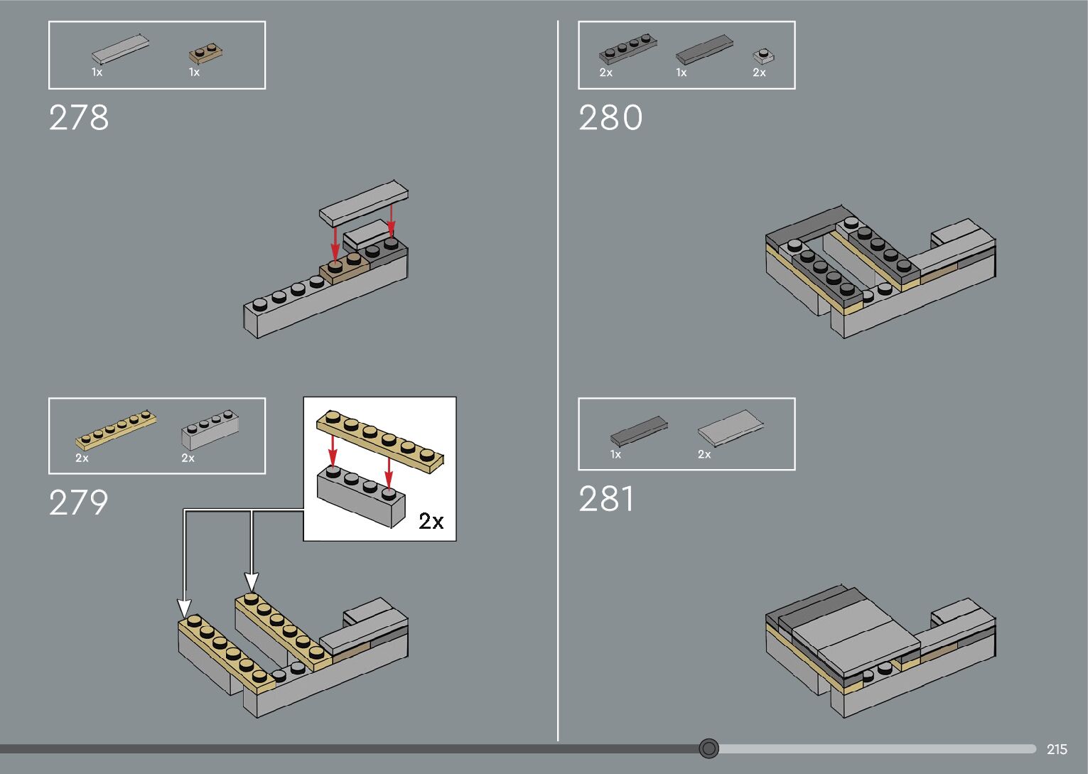The assembly guide is prepared in a very understandable way for children and adult LEGO enthusiasts. A total of 988 picture galleries are shown, explaining the step-by-step construction stages for 4 different structures.