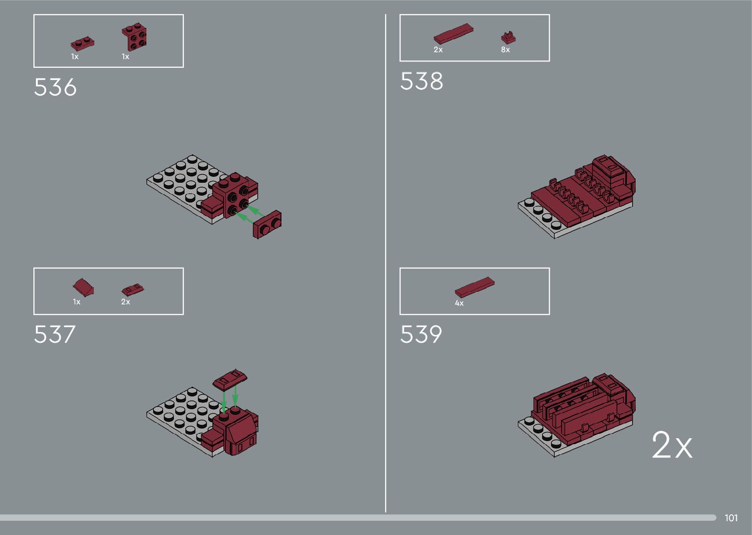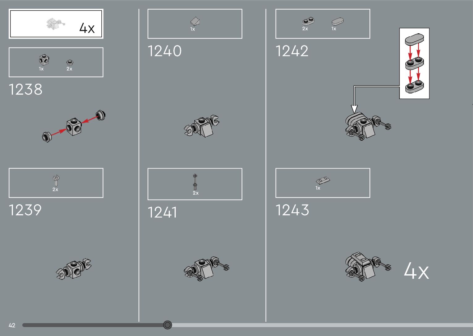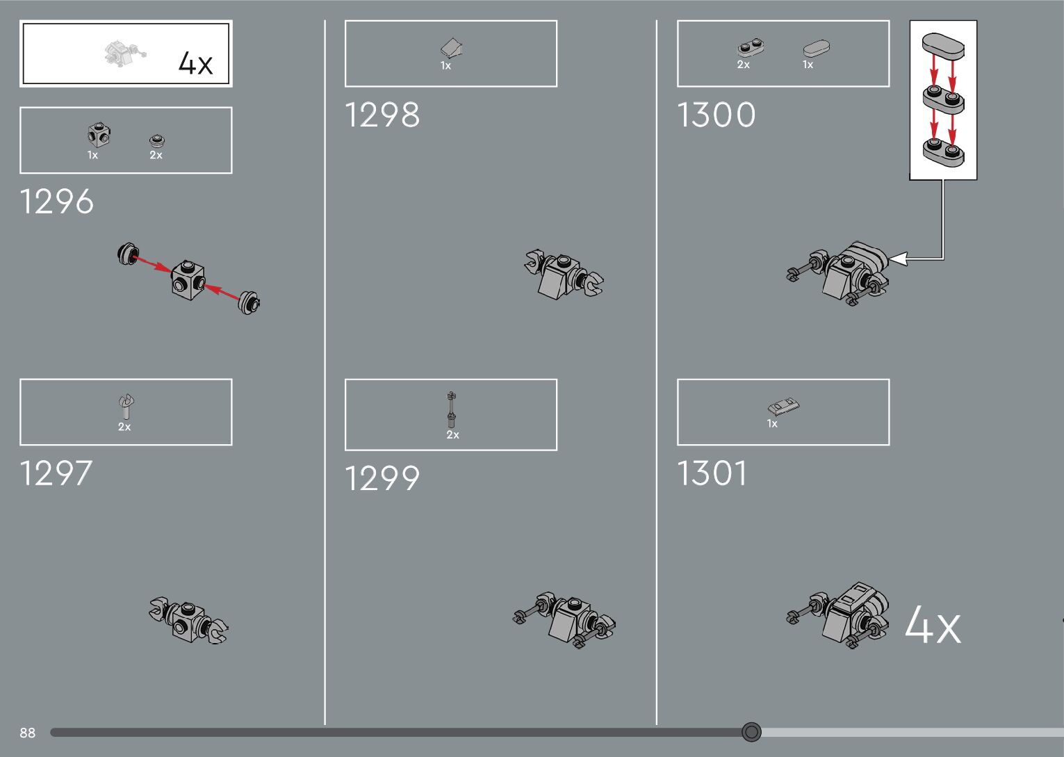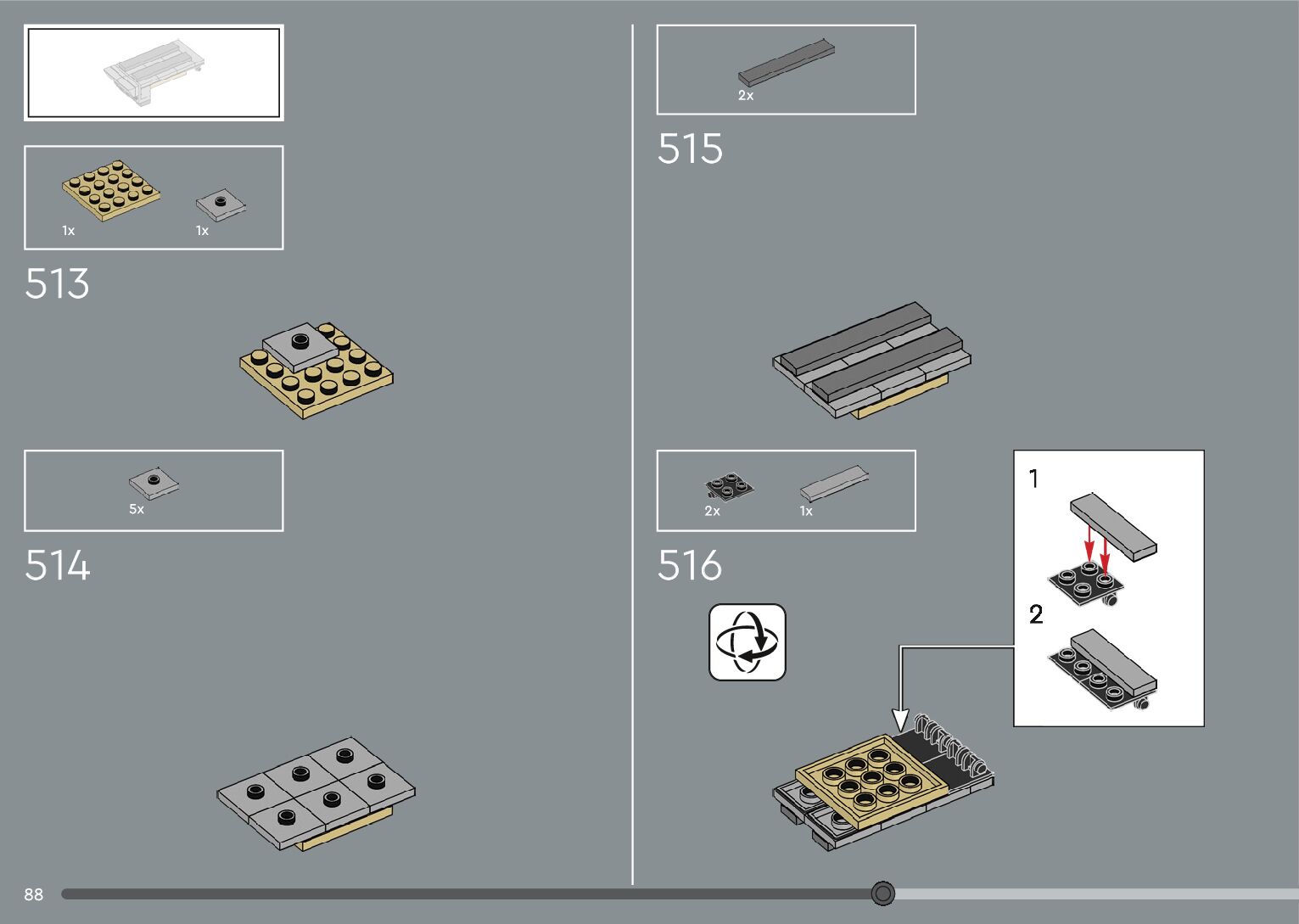 The assembly guide is prepared in a very understandable way for children and adult LEGO enthusiasts. A total of 988 picture galleries are shown, explaining the step-by-step construction stages for 4 different structures.