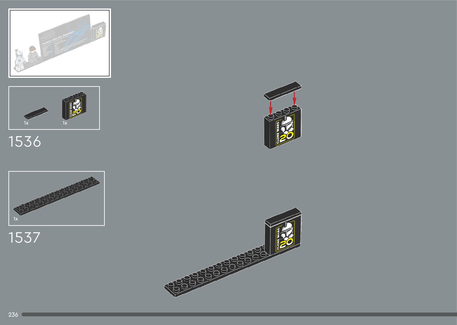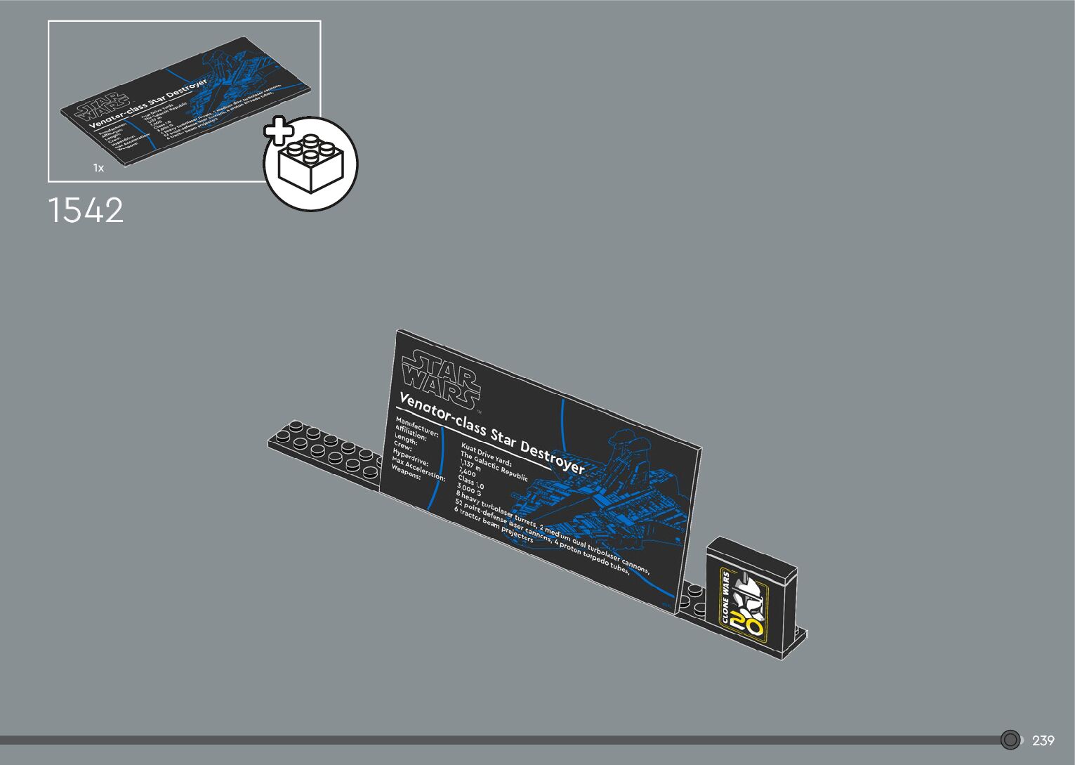 On this page you can find the original construction manual for the LEGO 75367 set. With the assembly manual you can easily learn how to build the 75367 Venator-Class Republic Attack Cruiser step by step. The set was released in 2023.