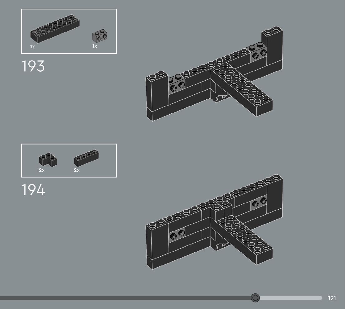 The assembly guide is prepared in a very understandable way for children and adult LEGO enthusiasts. A total of 140 picture galleries are shown, explaining the step-by-step construction stages for 1 different structures.