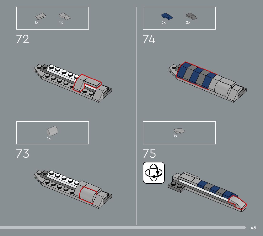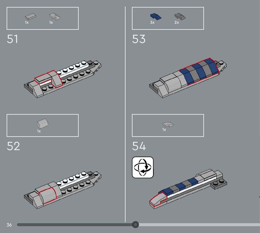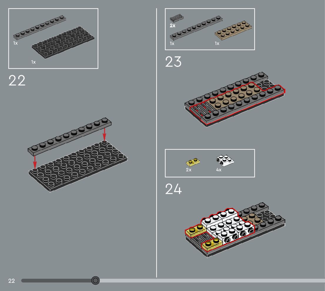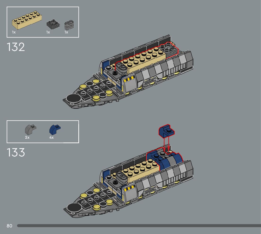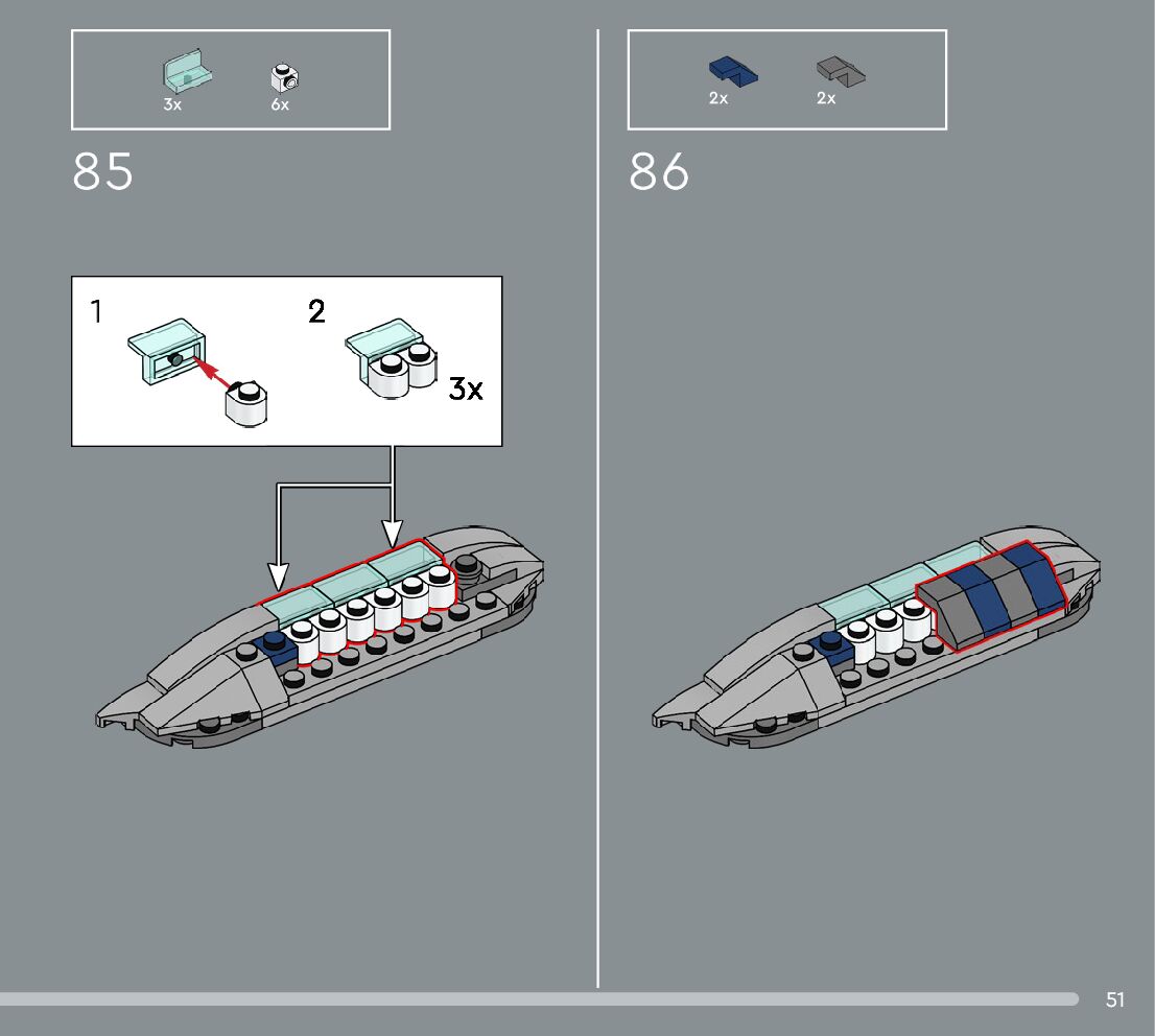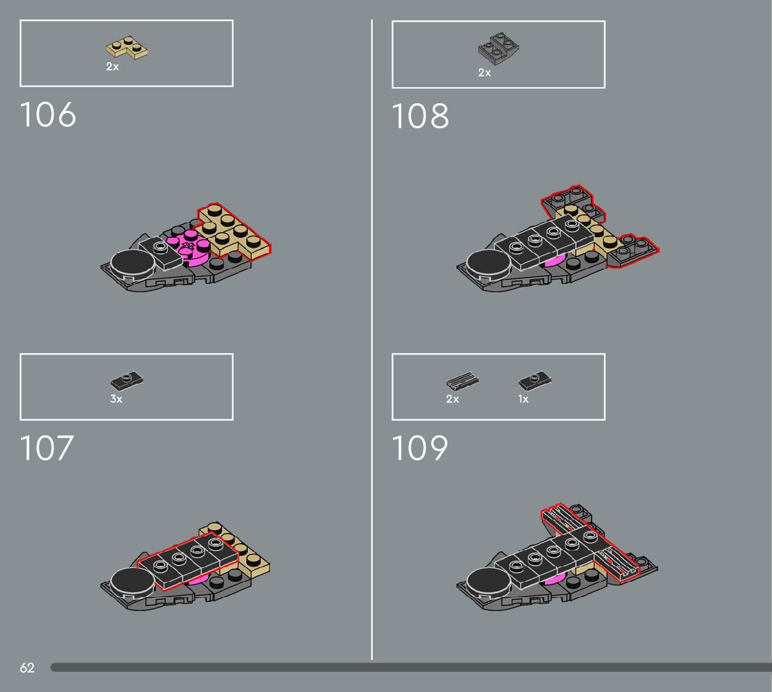 The assembly guide is prepared in a very understandable way for children and adult LEGO enthusiasts. A total of 360 picture galleries are shown, explaining the step-by-step construction stages for 3 different structures.