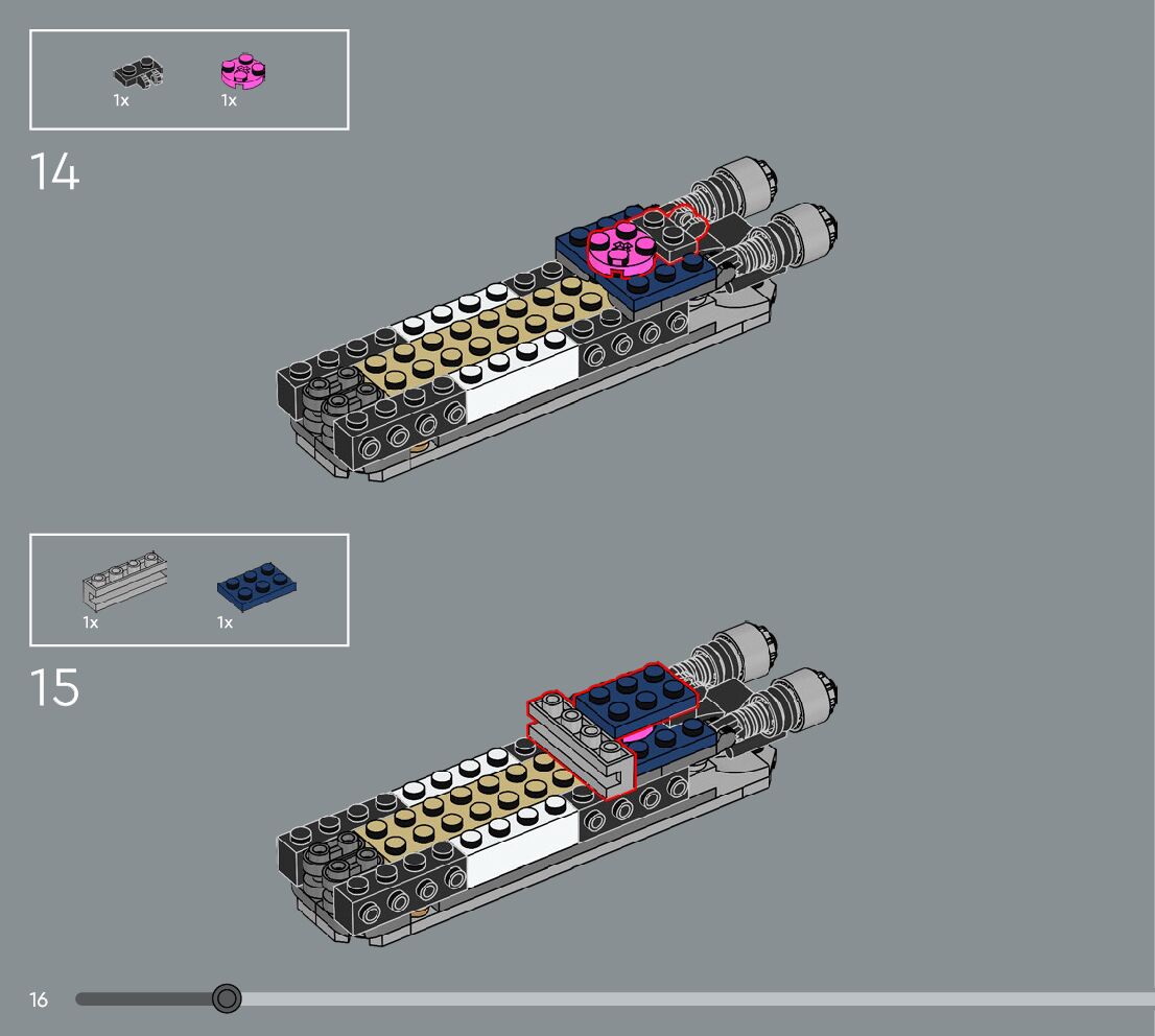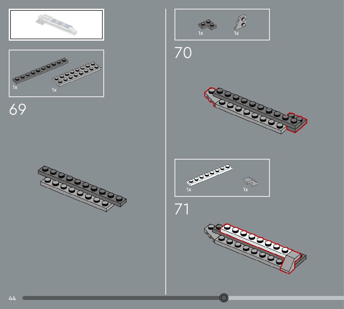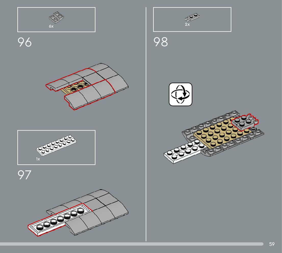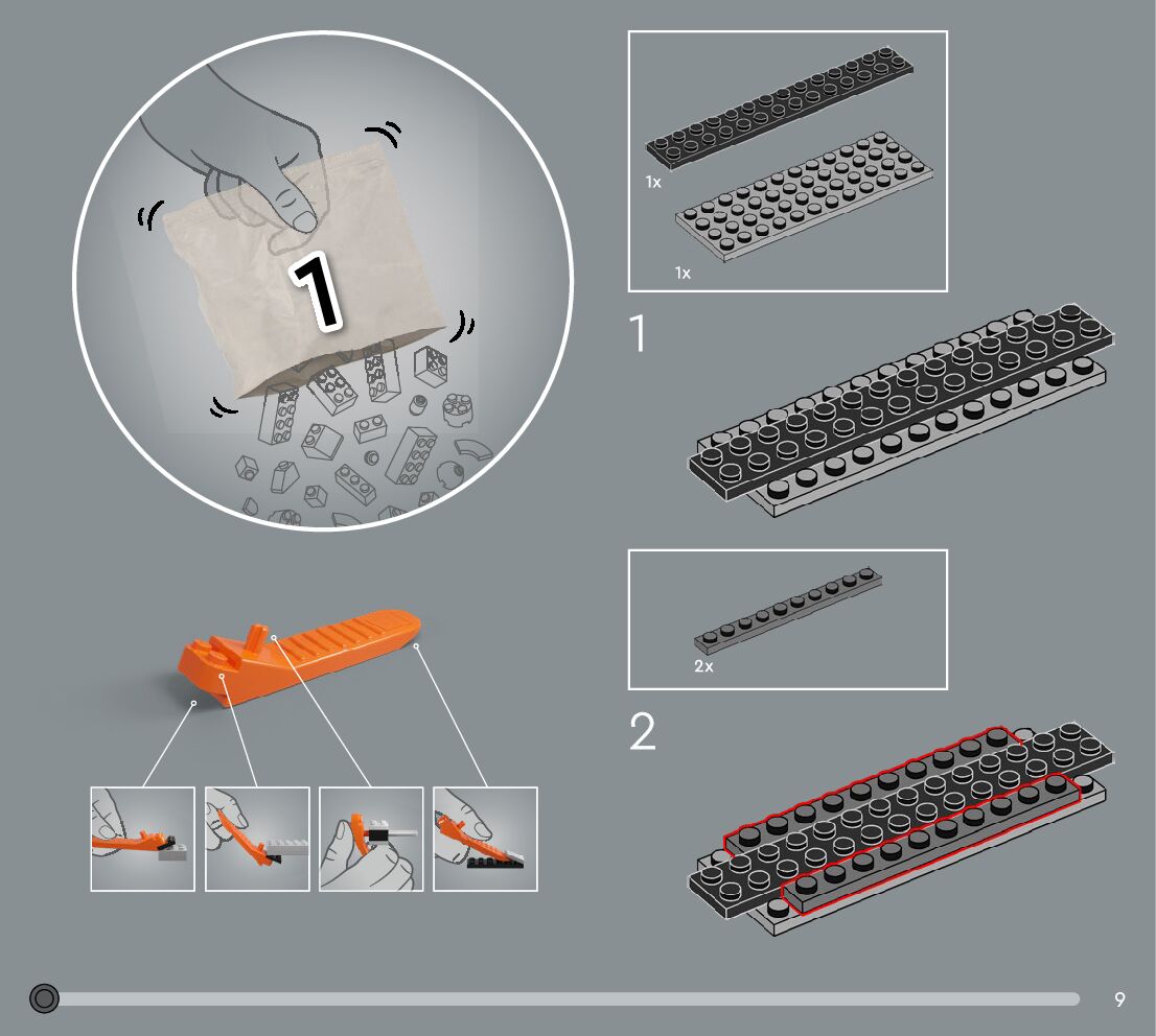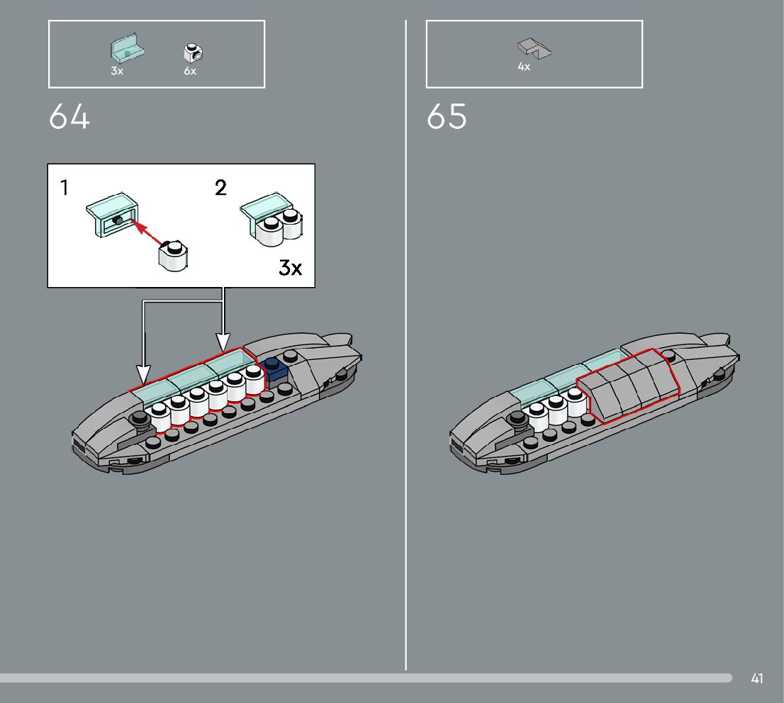 The assembly guide is prepared in a very understandable way for children and adult LEGO enthusiasts. A total of 360 picture galleries are shown, explaining the step-by-step construction stages for 3 different structures.