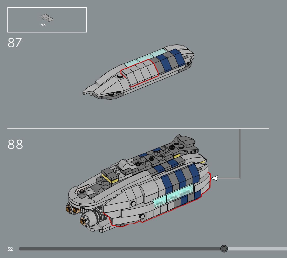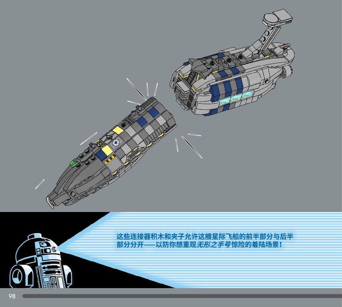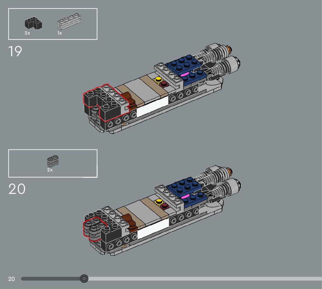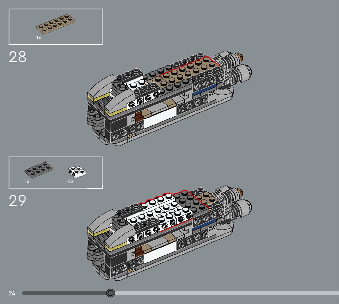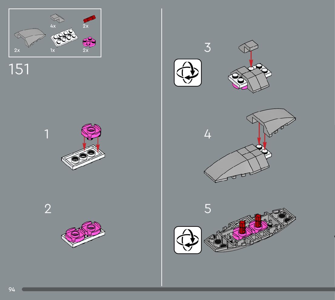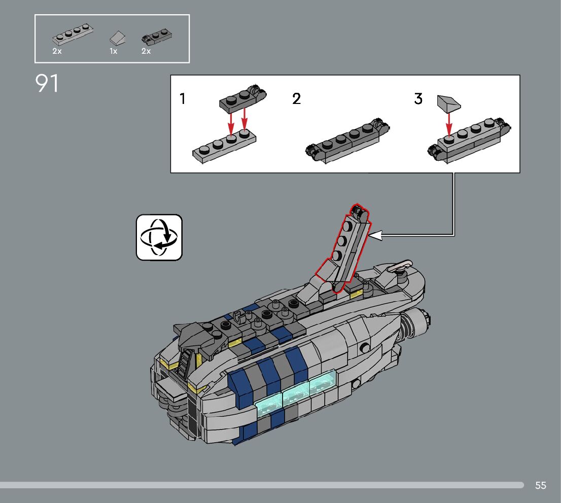 The assembly guide is prepared in a very understandable way for children and adult LEGO enthusiasts. A total of 360 picture galleries are shown, explaining the step-by-step construction stages for 3 different structures.