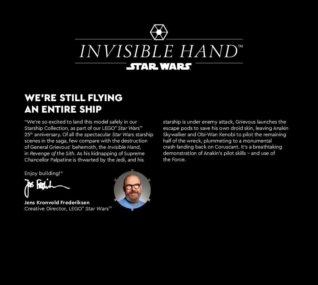 This page shares information about LEGO 75377 Invisible Hand manual, LEGO 75377 PDF instructions, LEGO 75377 Invisible Hand building guide online, How to build 75377 Invisible Hand LEGO.