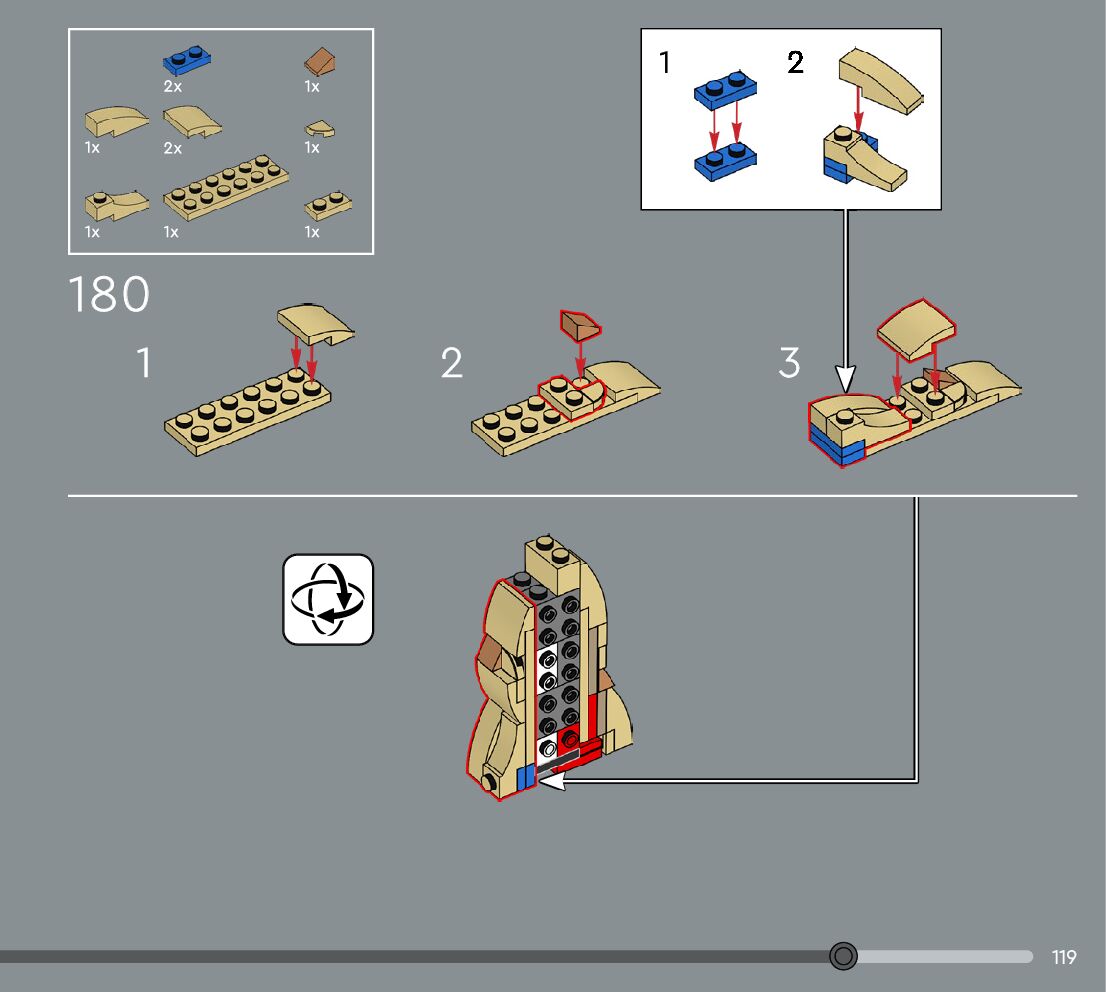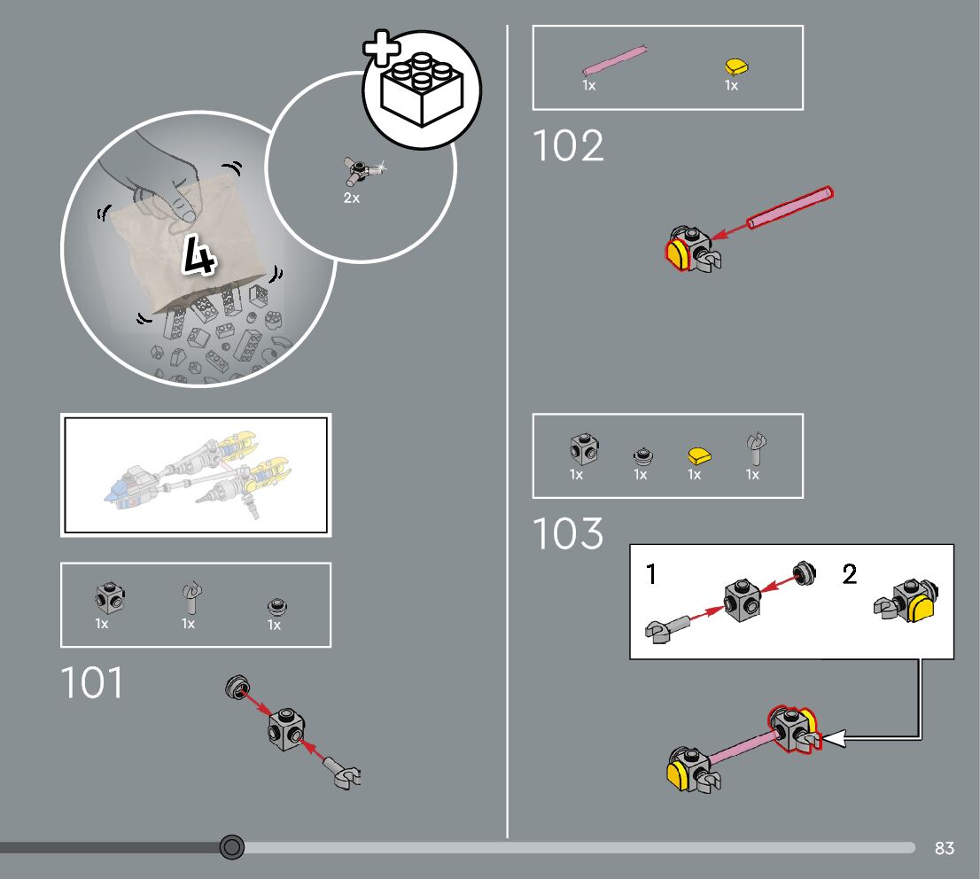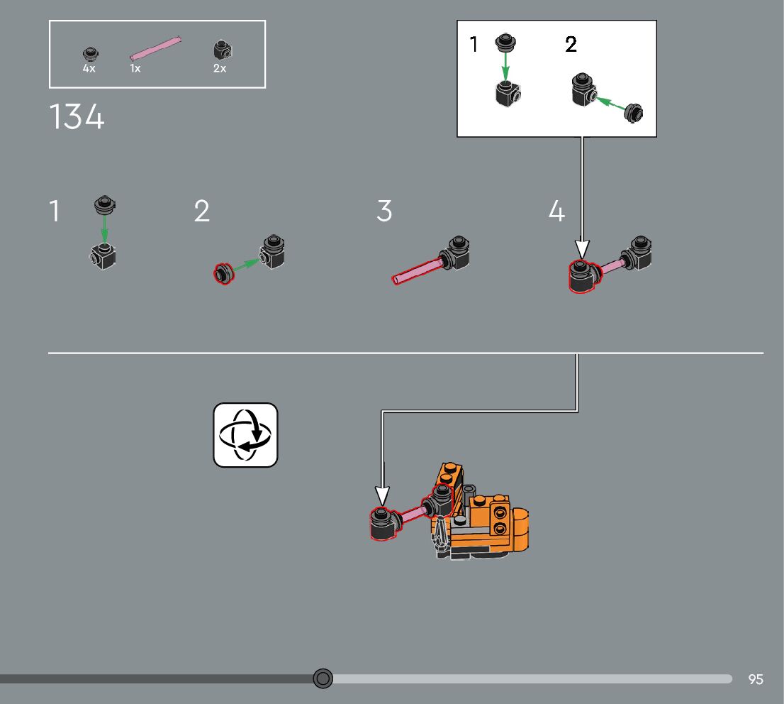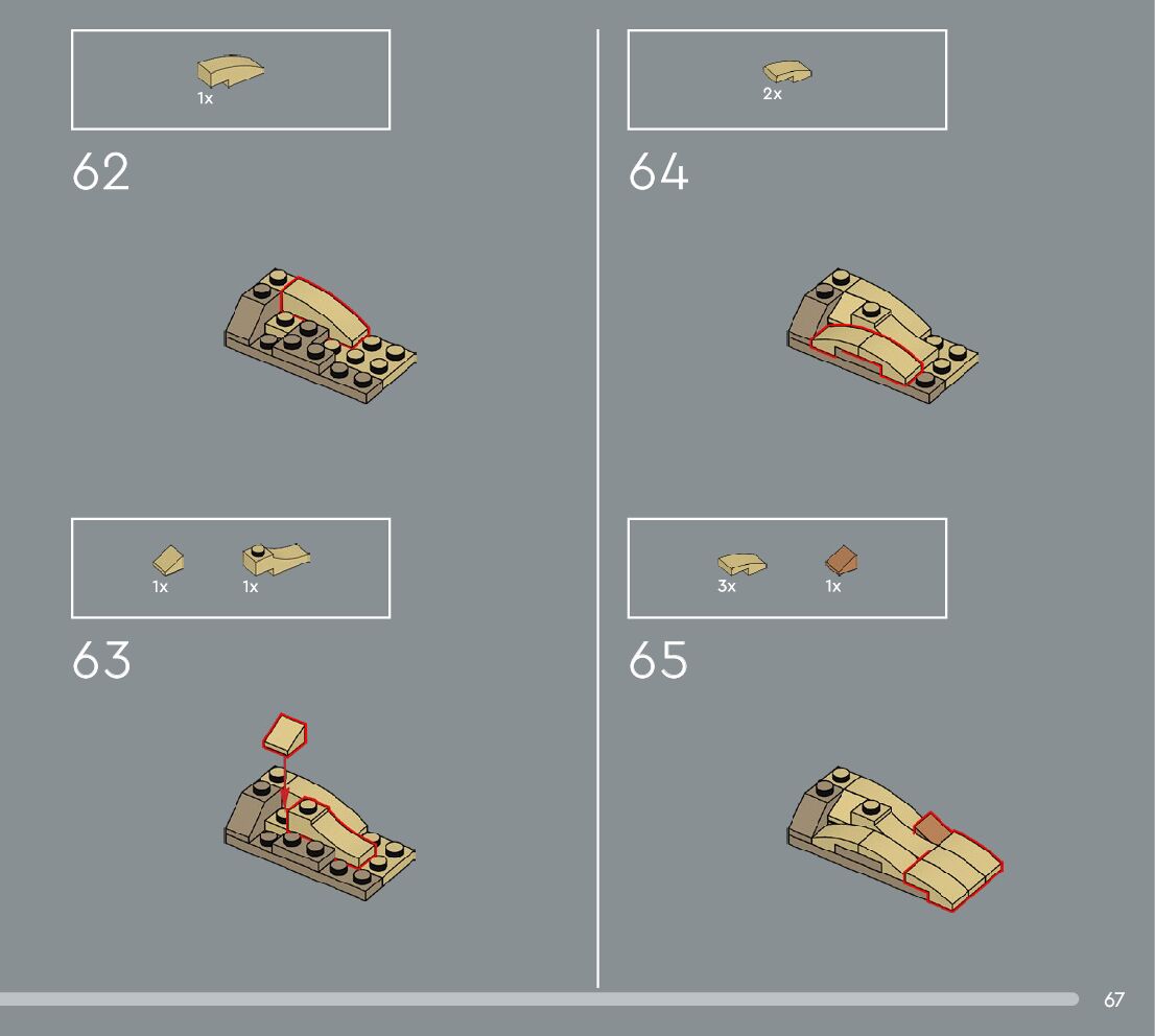 The assembly guide is prepared in a very understandable way for children and adult LEGO enthusiasts. A total of 136 picture galleries are shown, explaining the step-by-step construction stages for 1 different structures.