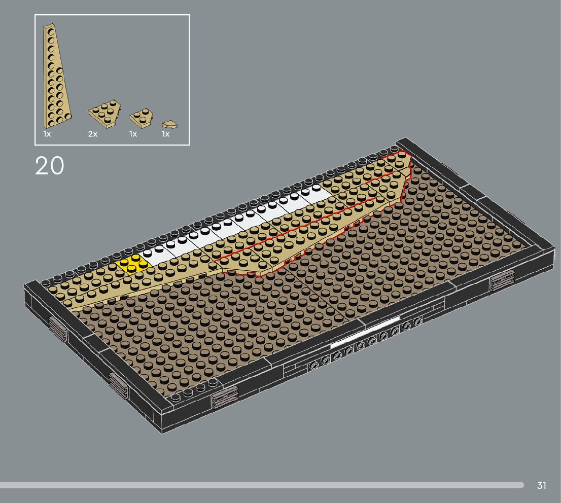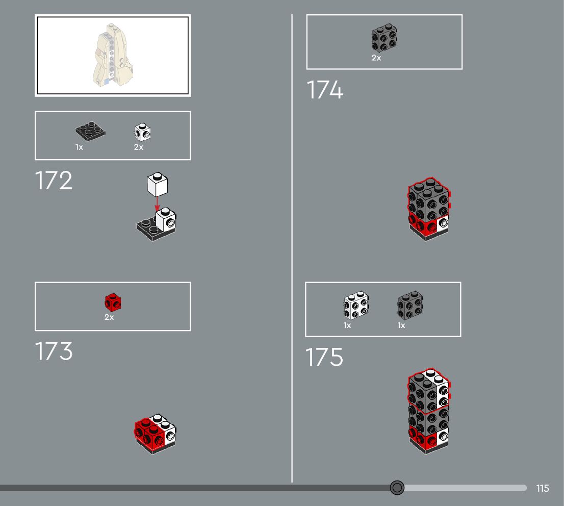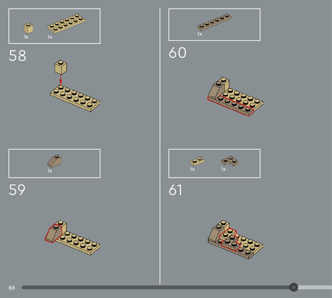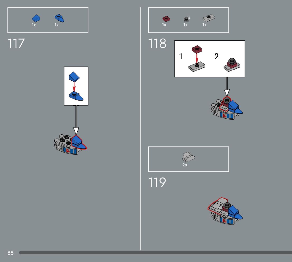 The assembly guide is prepared in a very understandable way for children and adult LEGO enthusiasts. A total of 136 picture galleries are shown, explaining the step-by-step construction stages for 1 different structures.