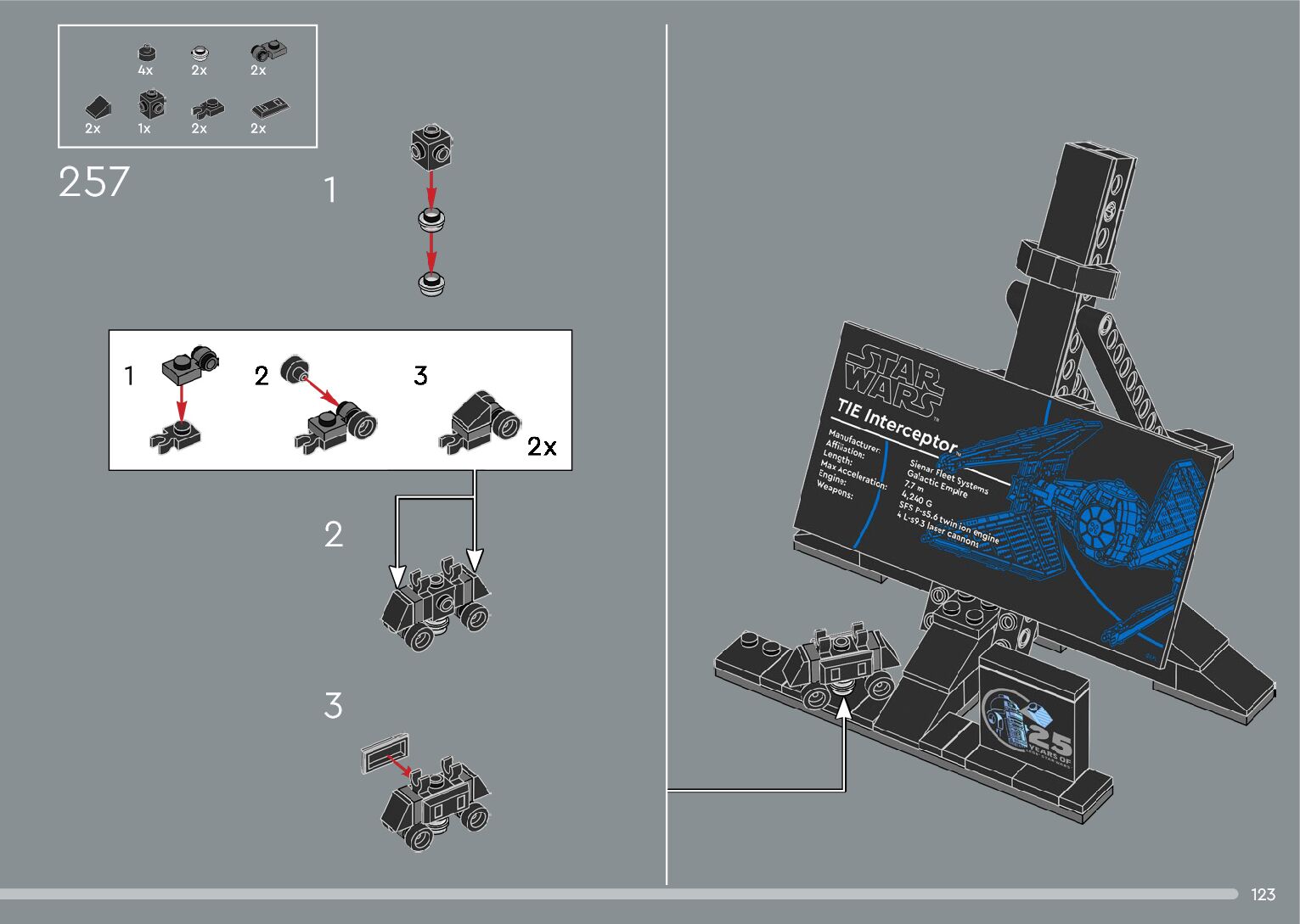 On this page you can find the original construction manual for the LEGO 75382 set. With the assembly manual you can easily learn how to build the 75382 TIE Interceptor step by step. The set was released in 2024.