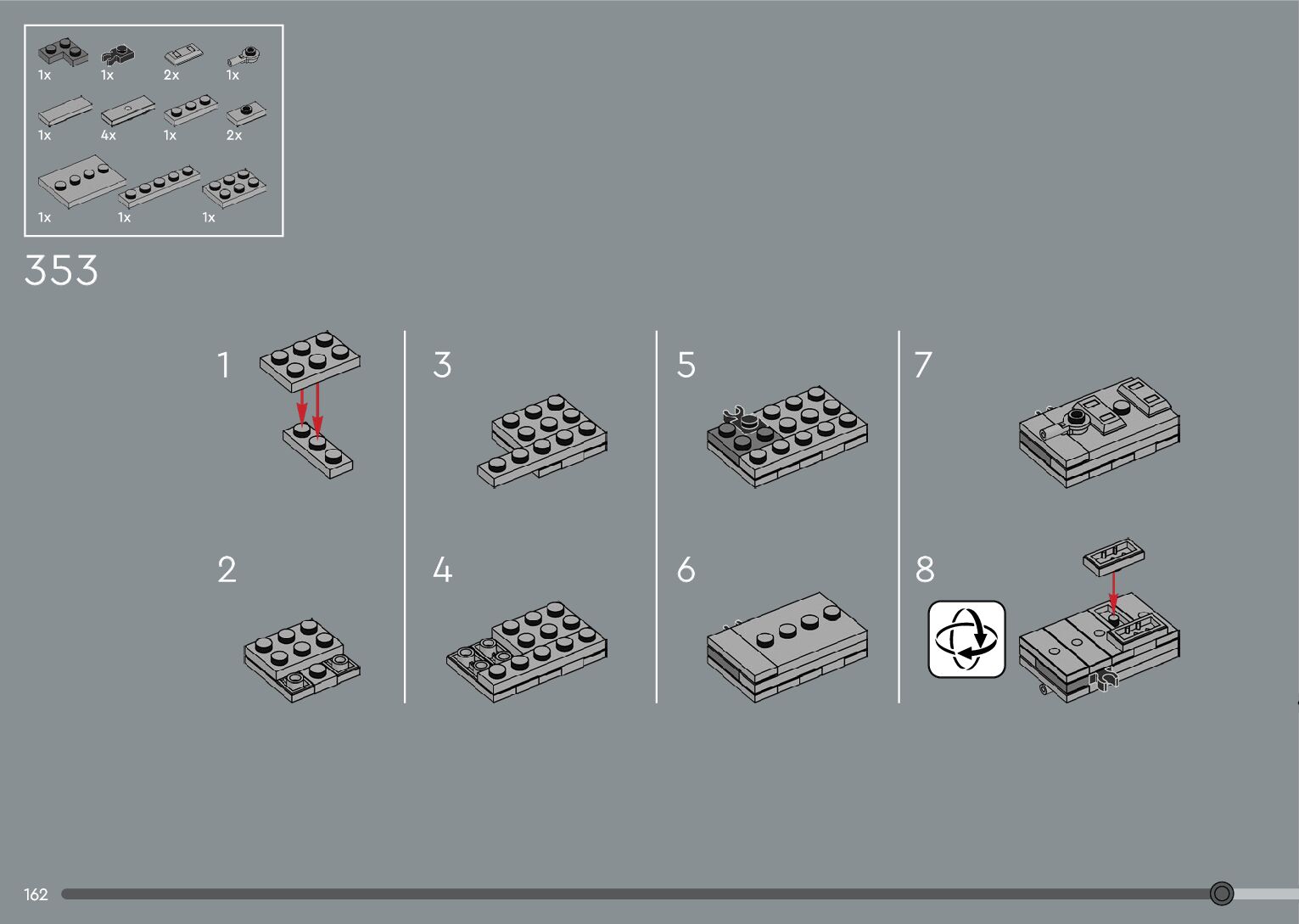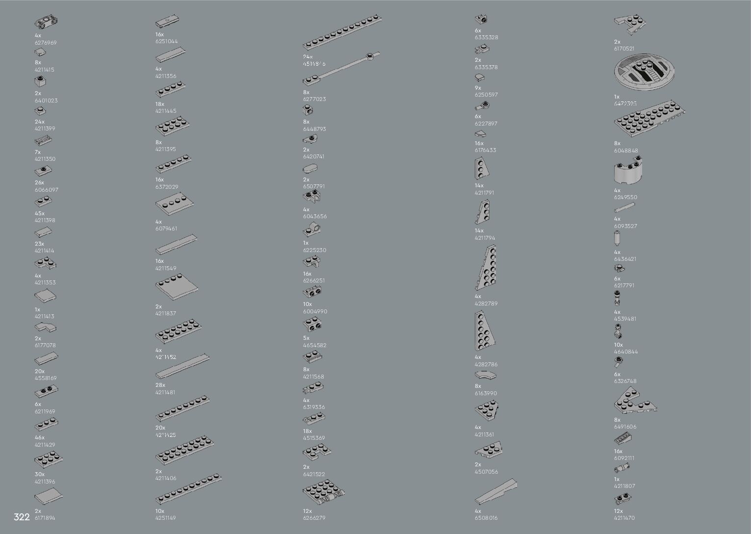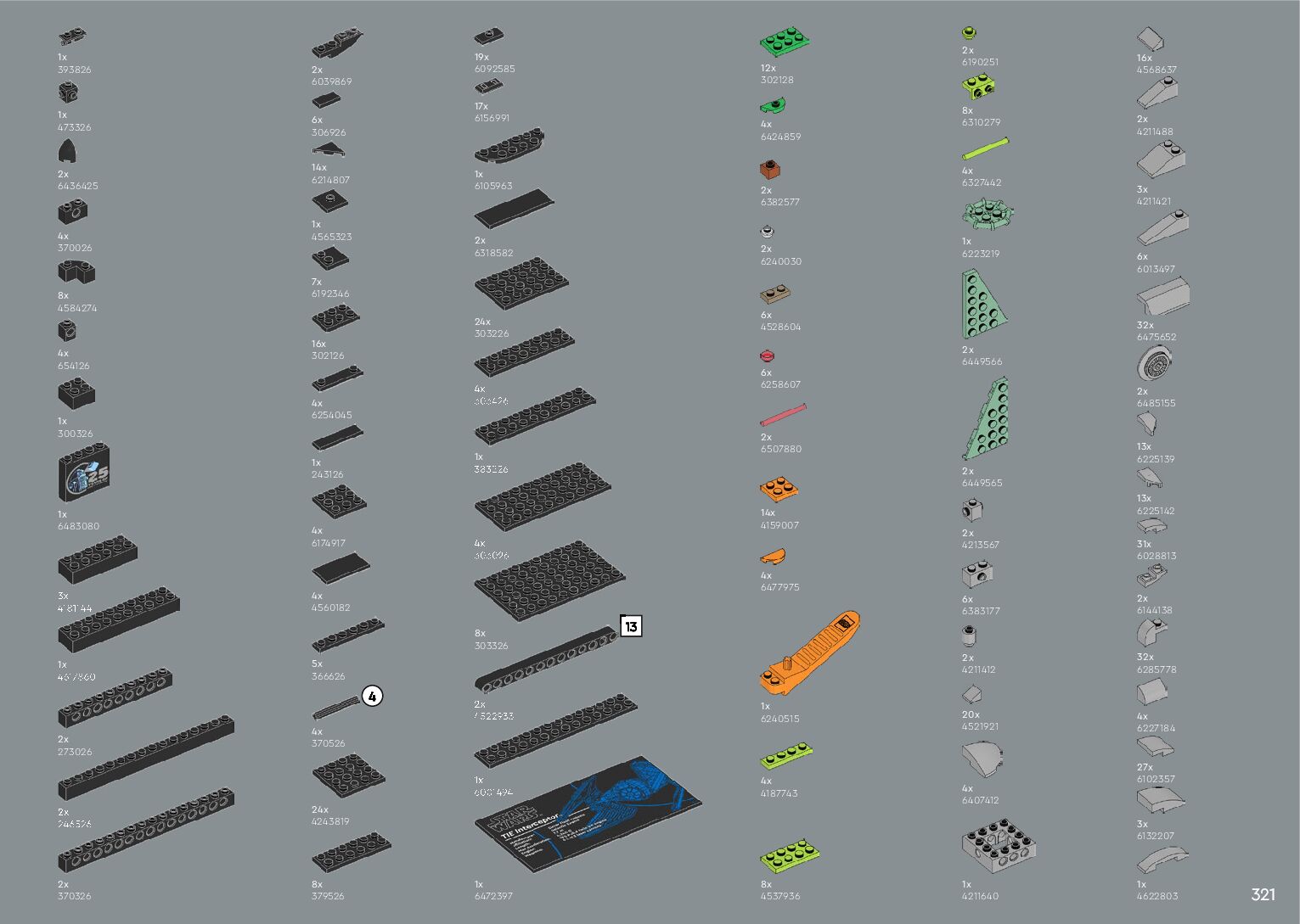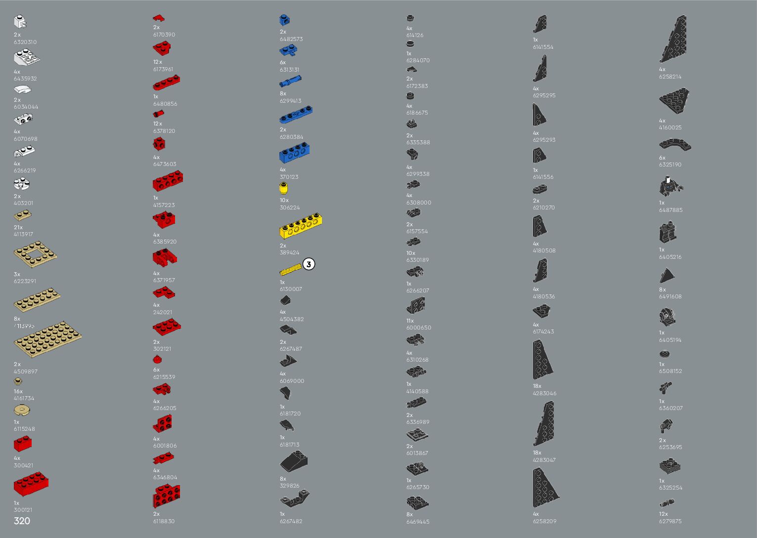 The assembly guide is prepared in a very understandable way for children and adult LEGO enthusiasts. A total of 324 picture galleries are shown, explaining the step-by-step construction stages for 1 different structures.