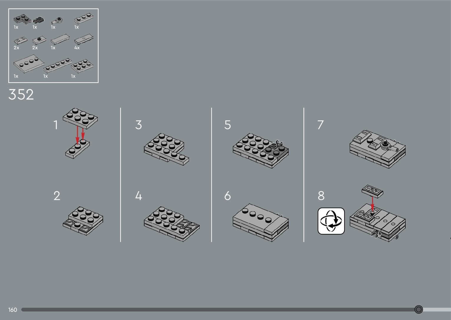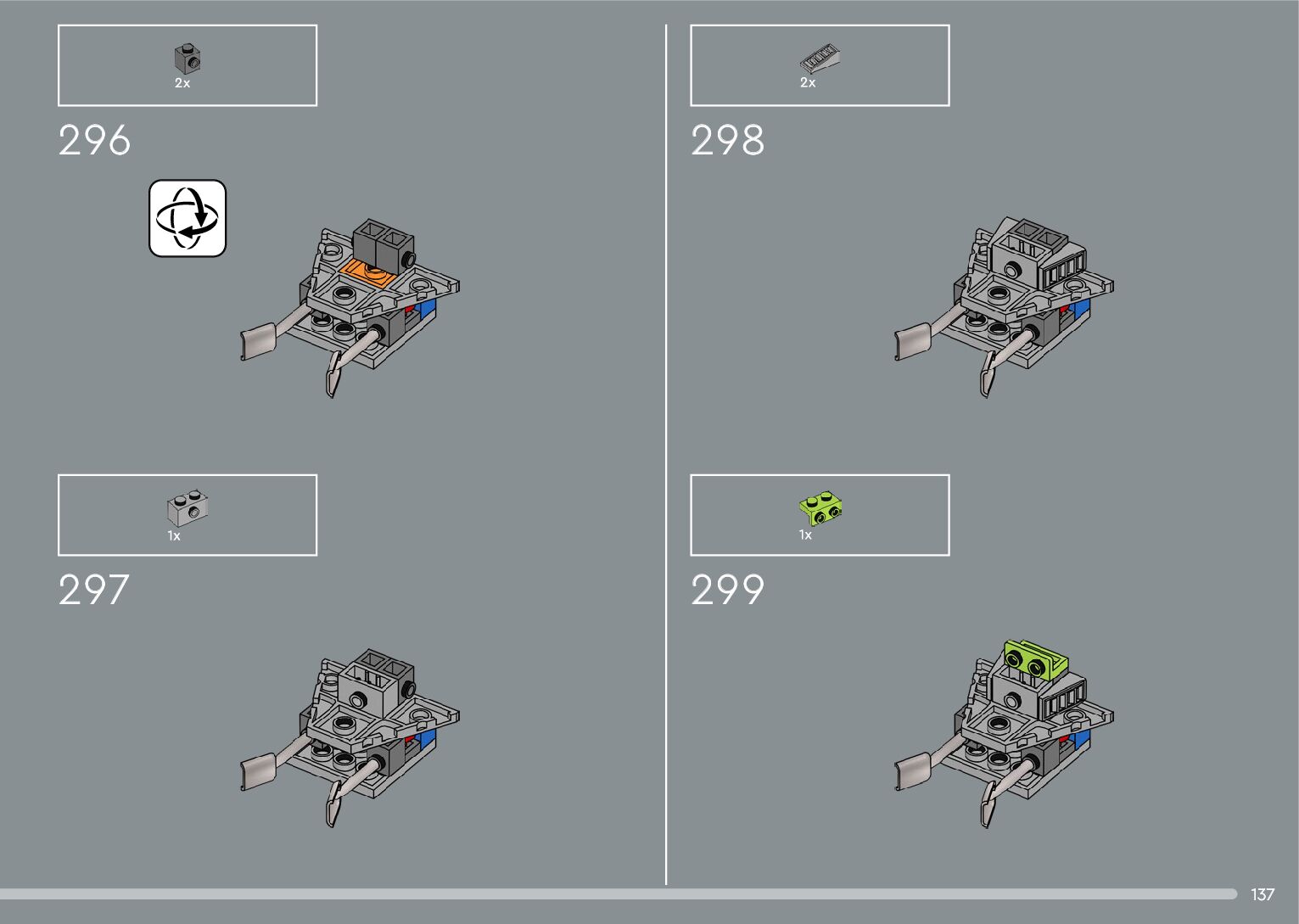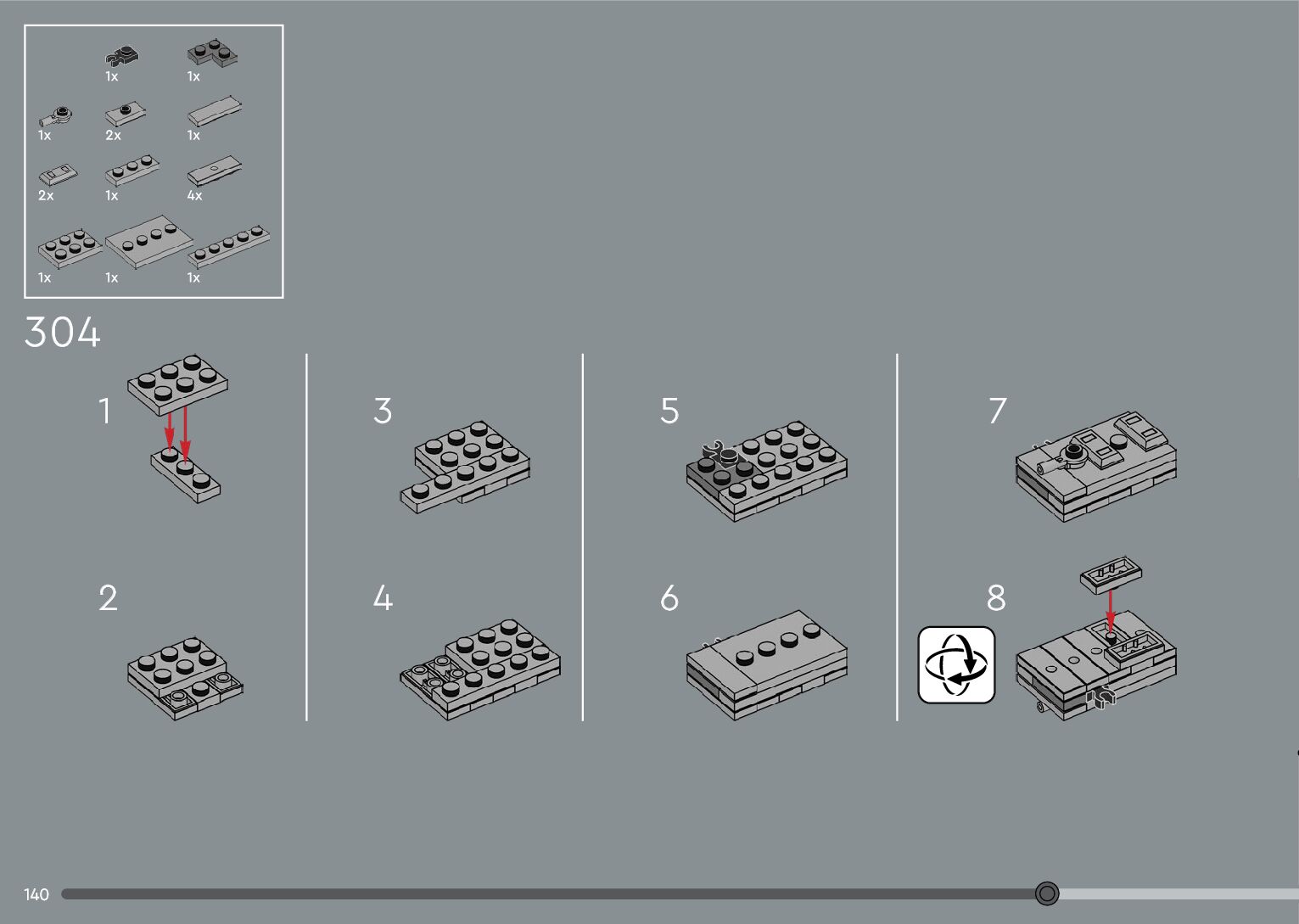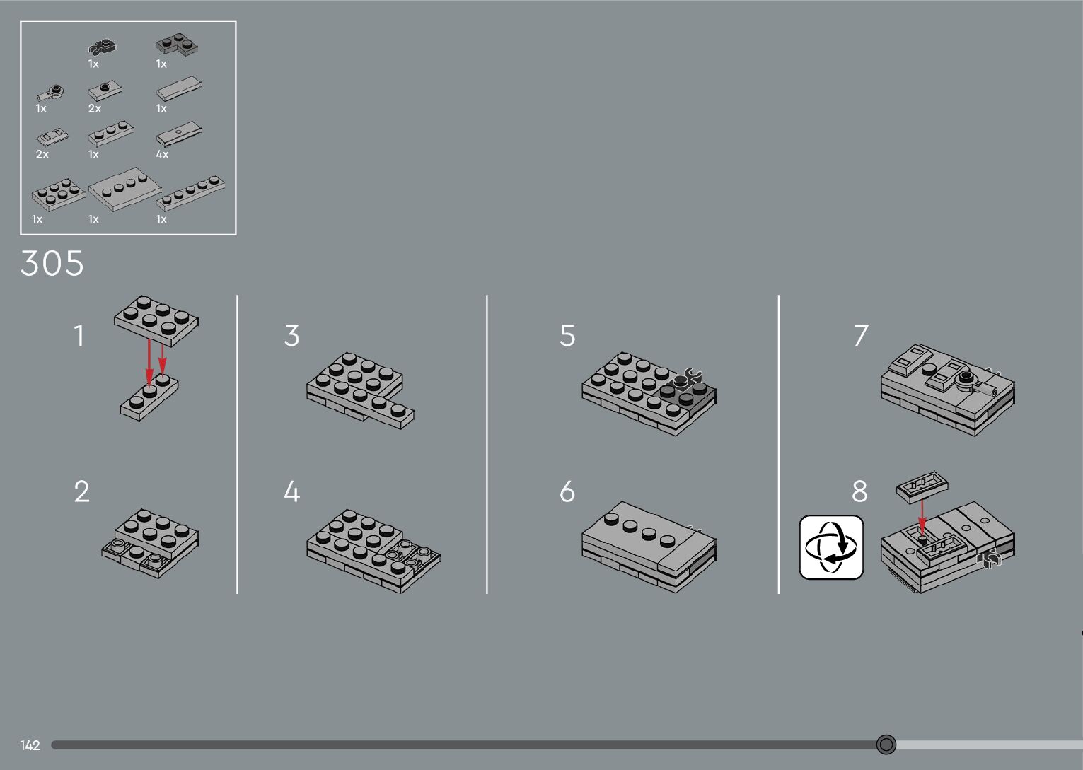 The assembly guide is prepared in a very understandable way for children and adult LEGO enthusiasts. A total of 324 picture galleries are shown, explaining the step-by-step construction stages for 1 different structures.