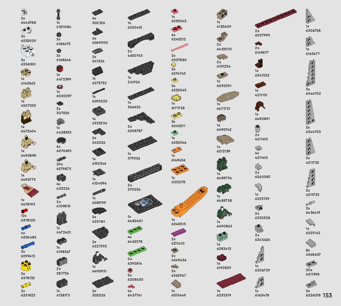 The assembly guide is prepared in a very understandable way for children and adult LEGO enthusiasts. A total of 156 picture galleries are shown, explaining the step-by-step construction stages for 1 different structures.