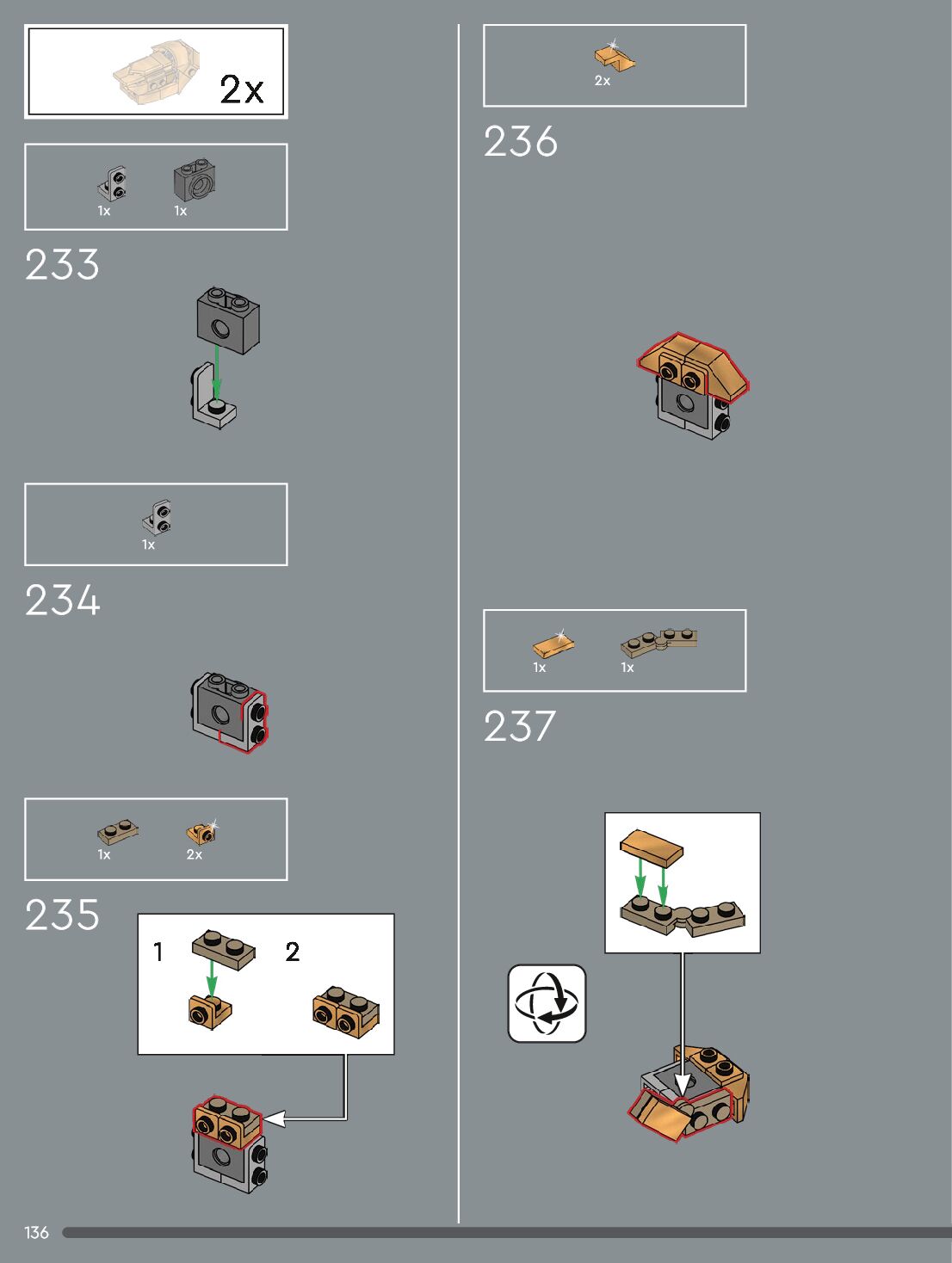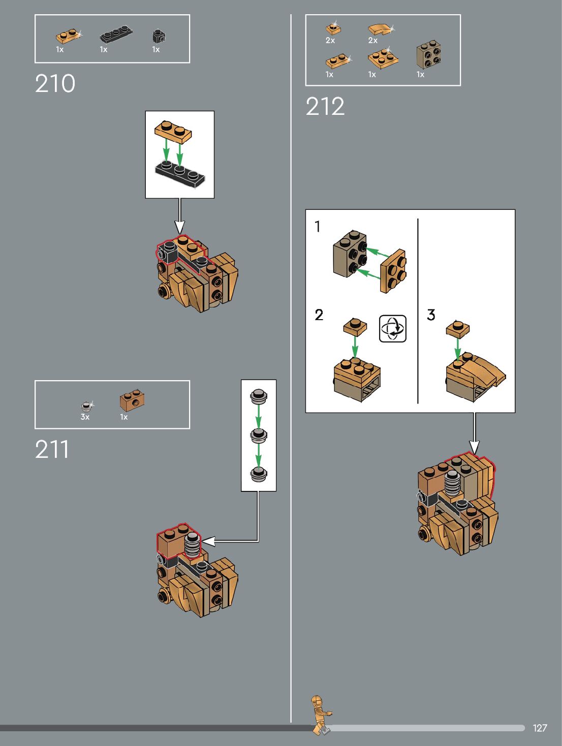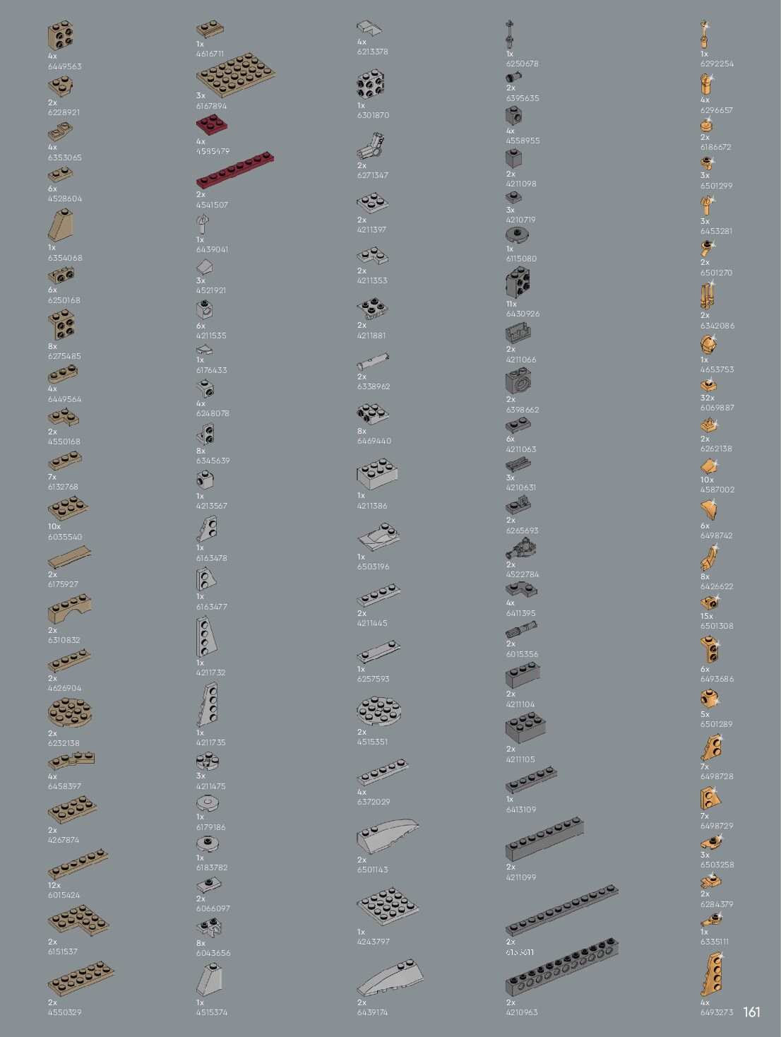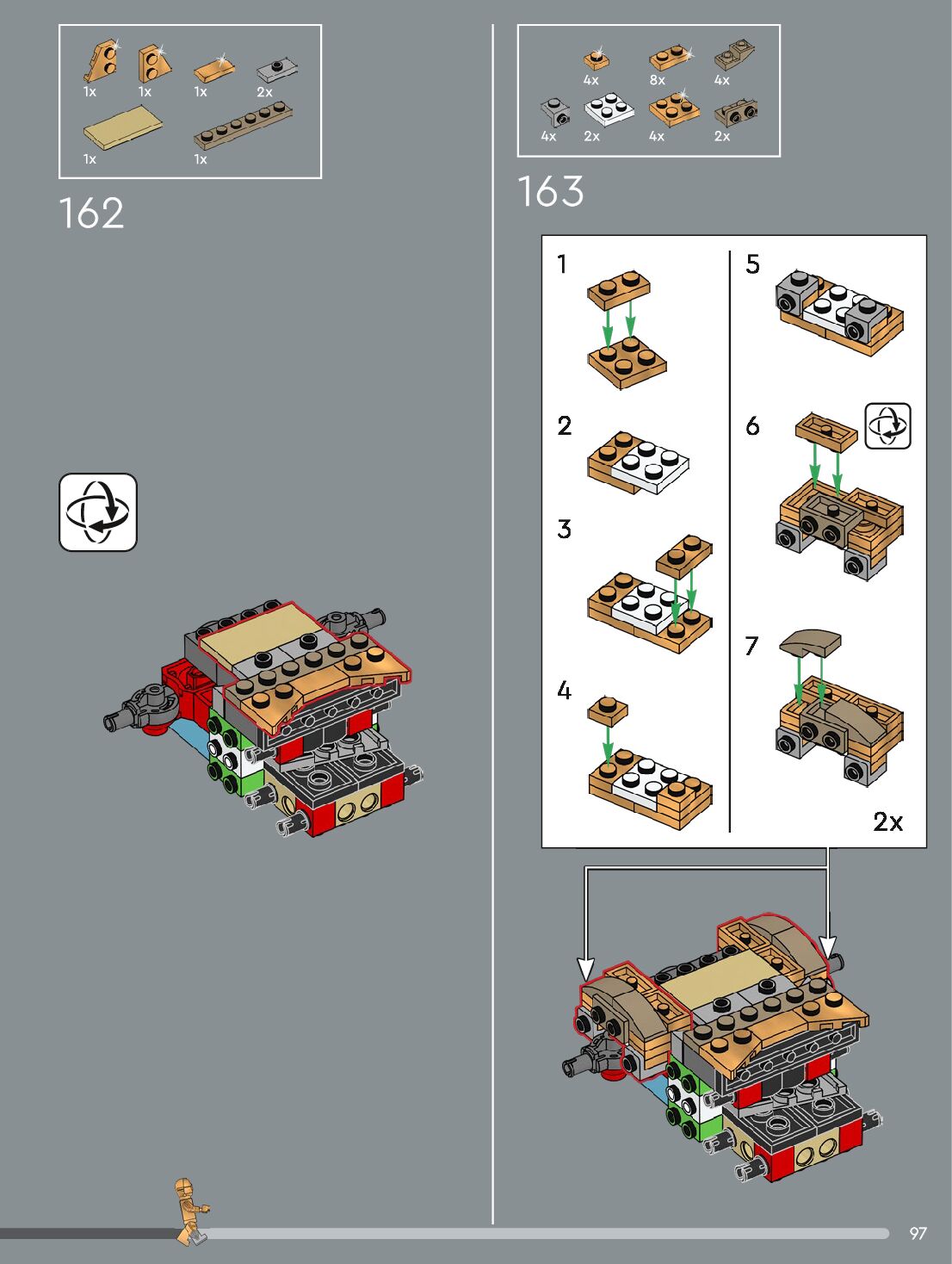The assembly guide is prepared in a very understandable way for children and adult LEGO enthusiasts. A total of 164 picture galleries are shown, explaining the step-by-step construction stages for 1 different structures.