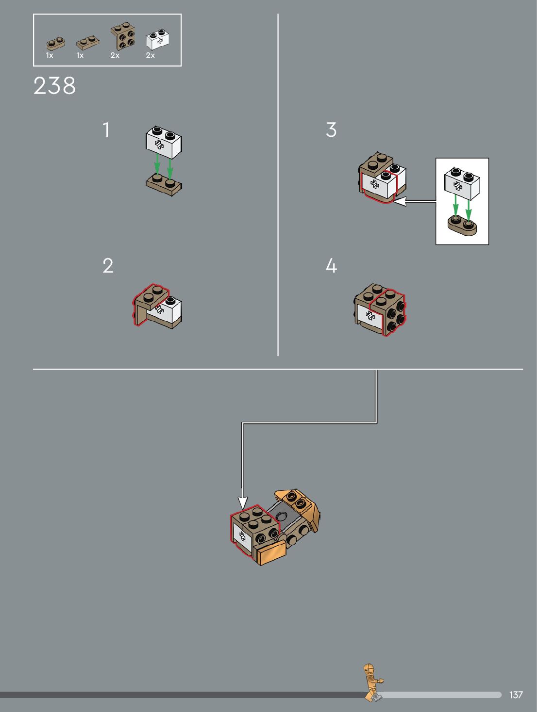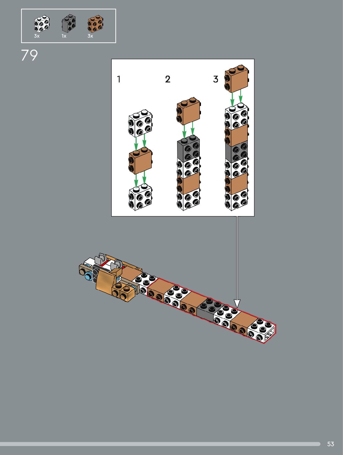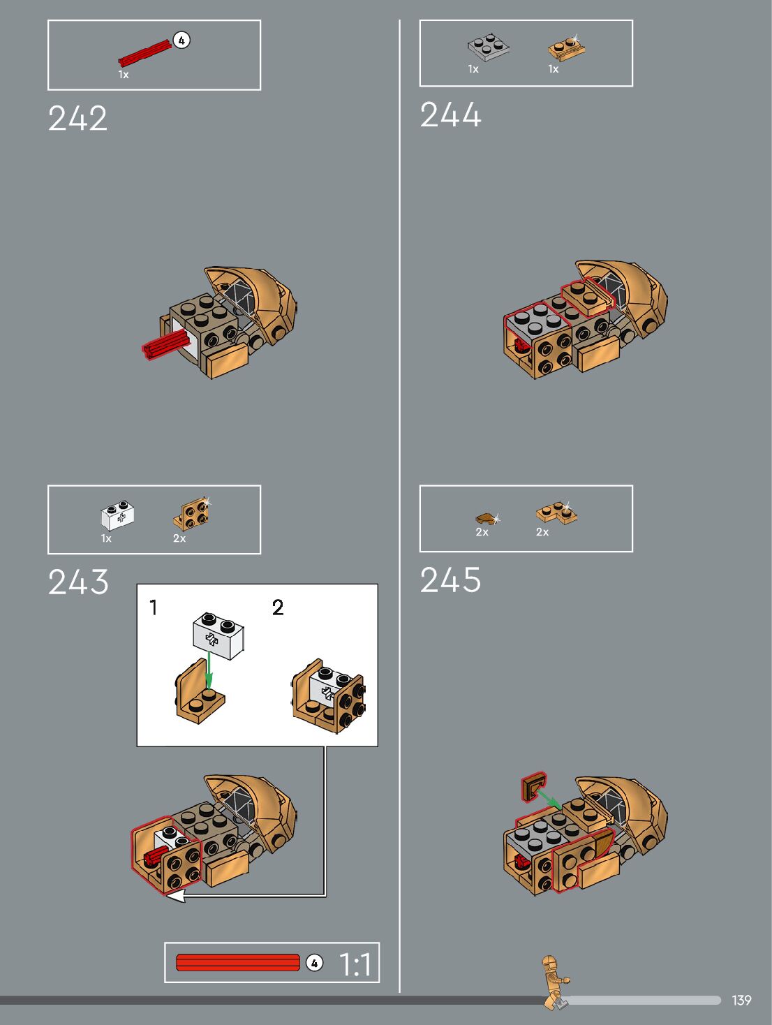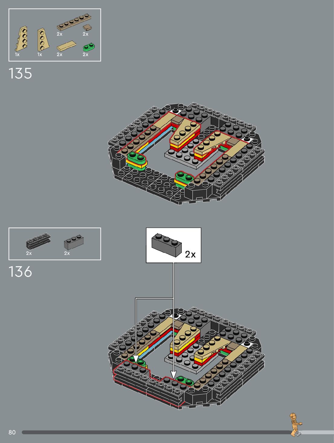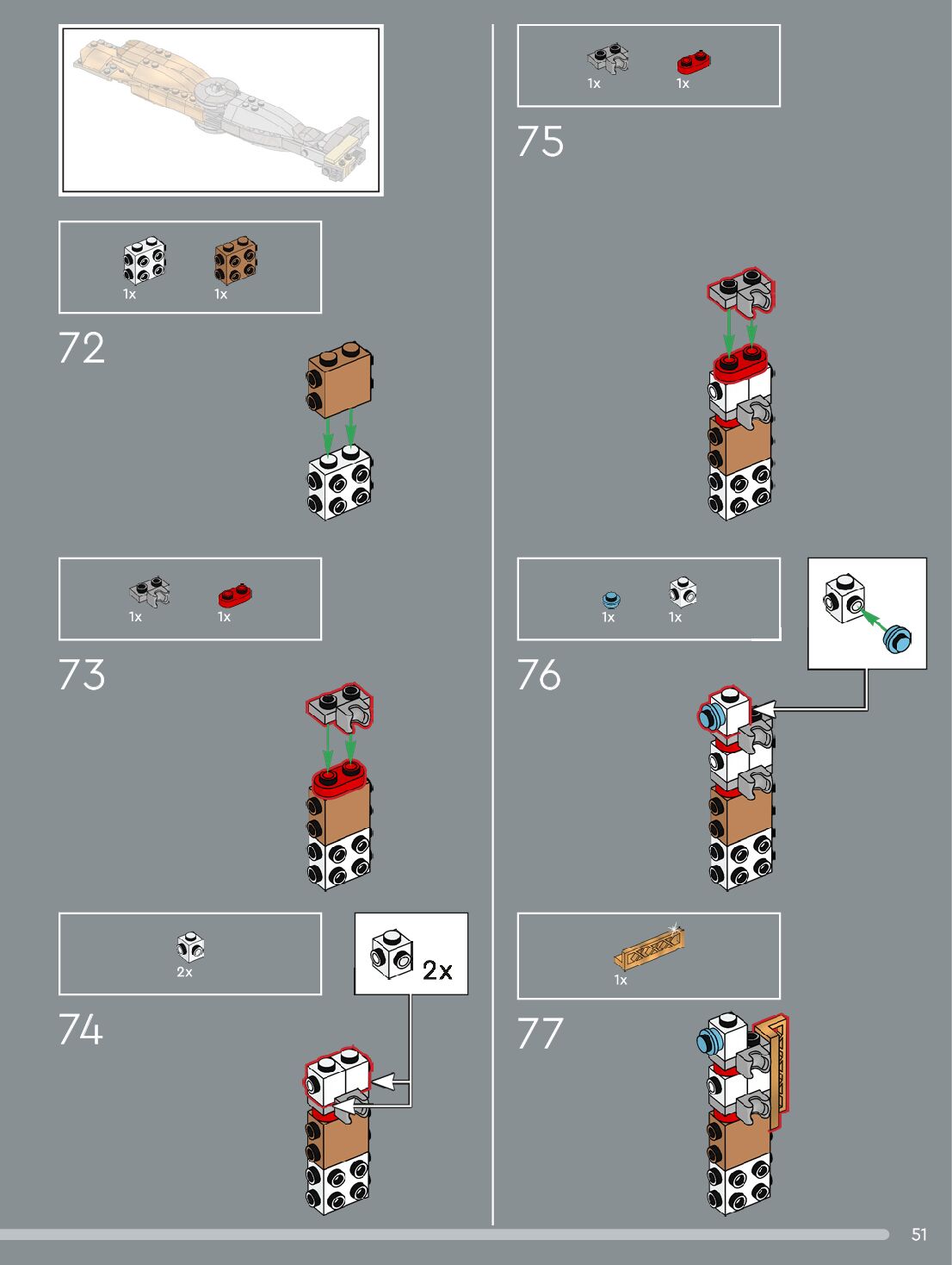 The assembly guide is prepared in a very understandable way for children and adult LEGO enthusiasts. A total of 164 picture galleries are shown, explaining the step-by-step construction stages for 1 different structures.