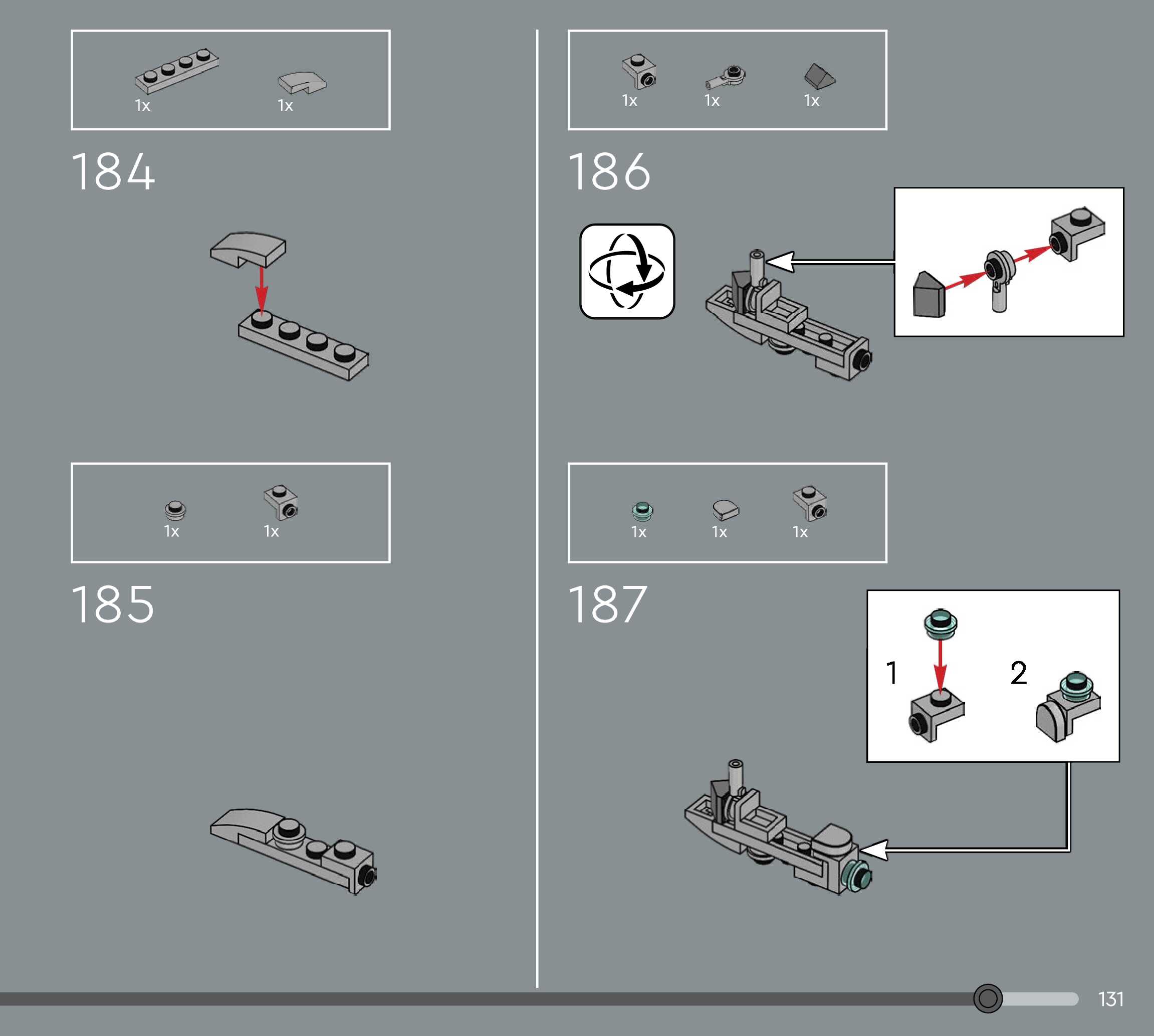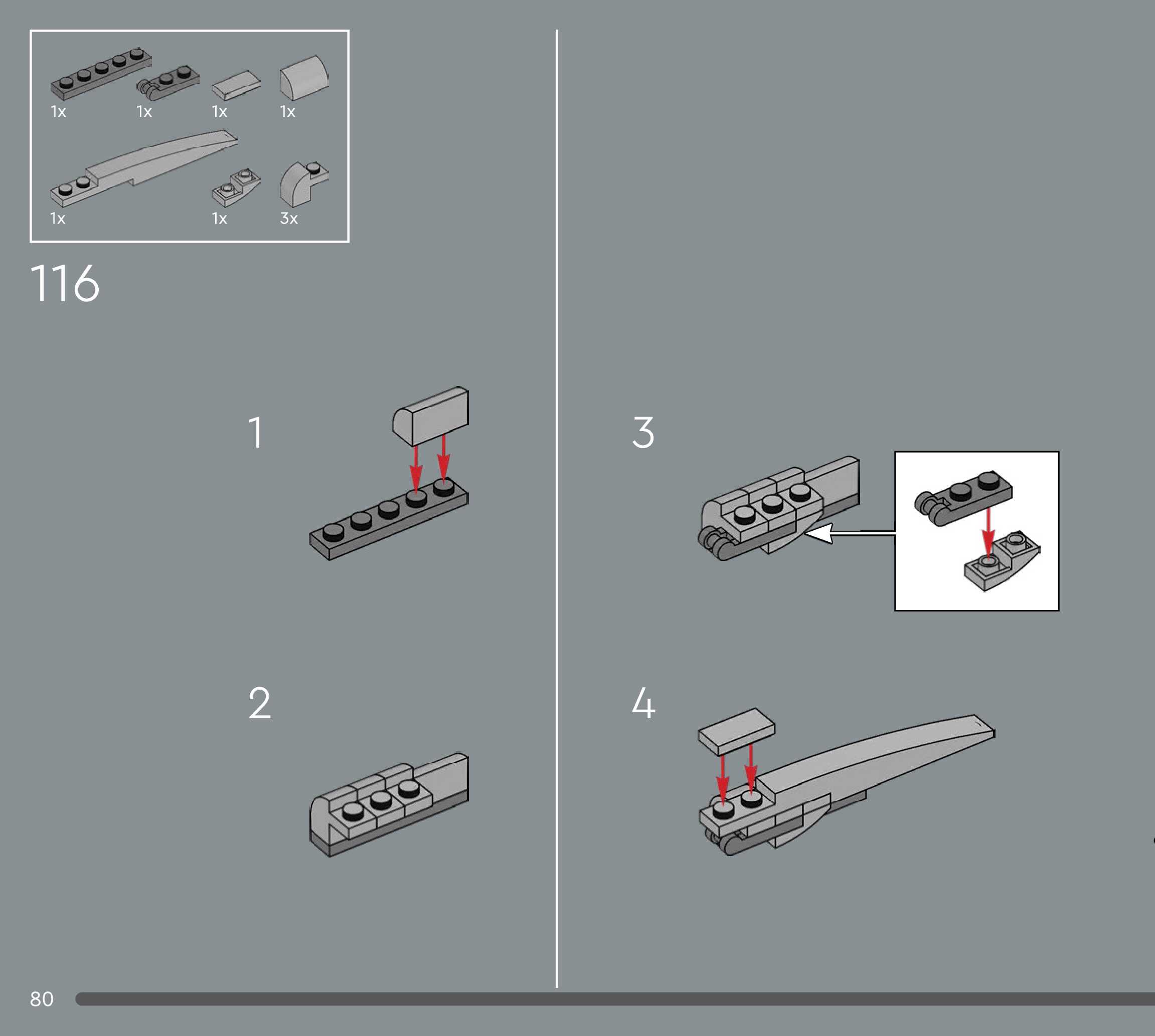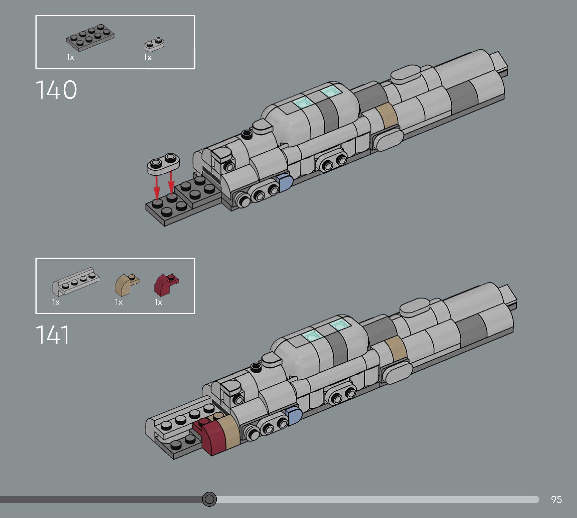 The assembly guide is prepared in a very understandable way for children and adult LEGO enthusiasts. A total of 140 picture galleries are shown, explaining the step-by-step construction stages for 1 different structures.