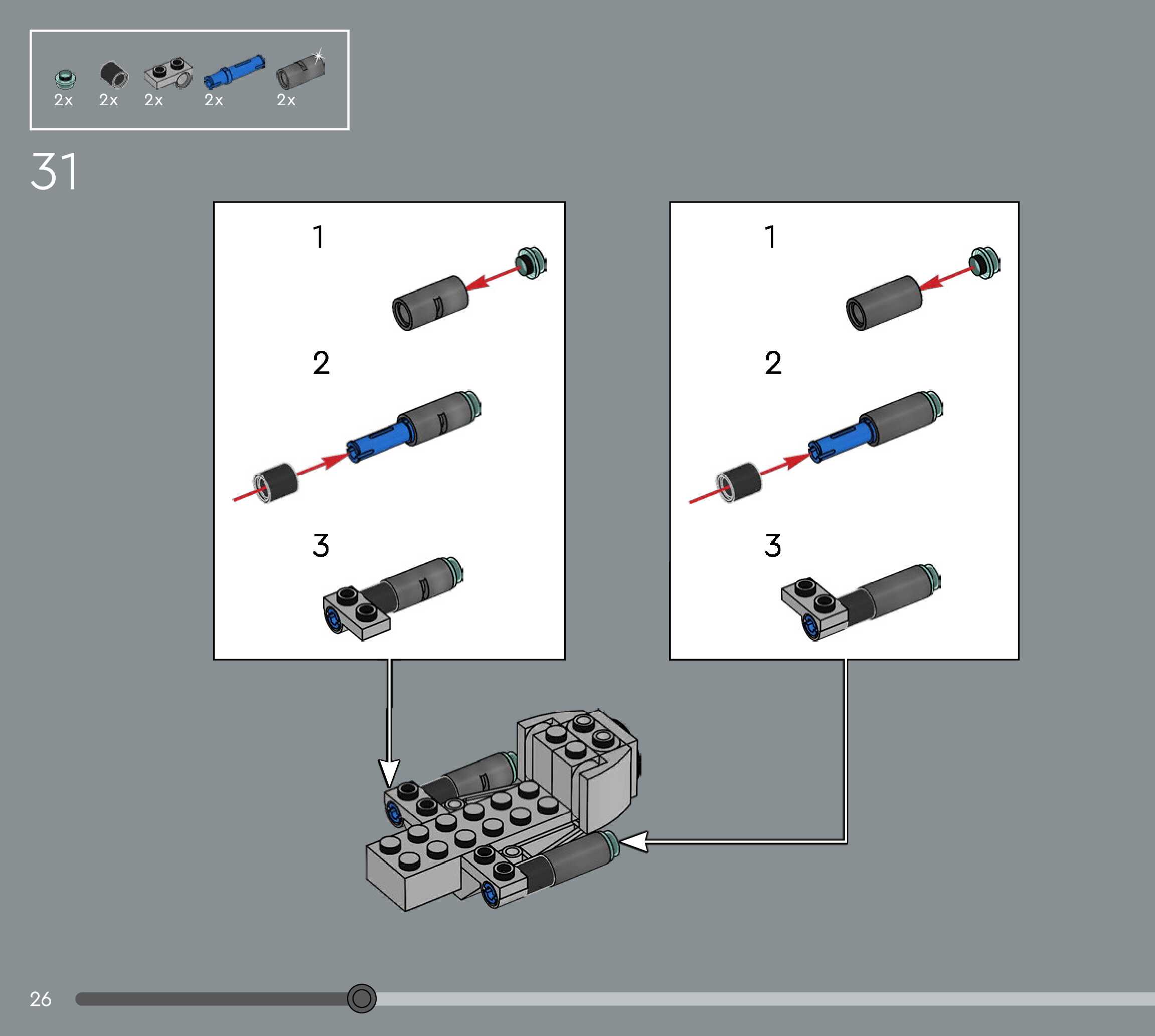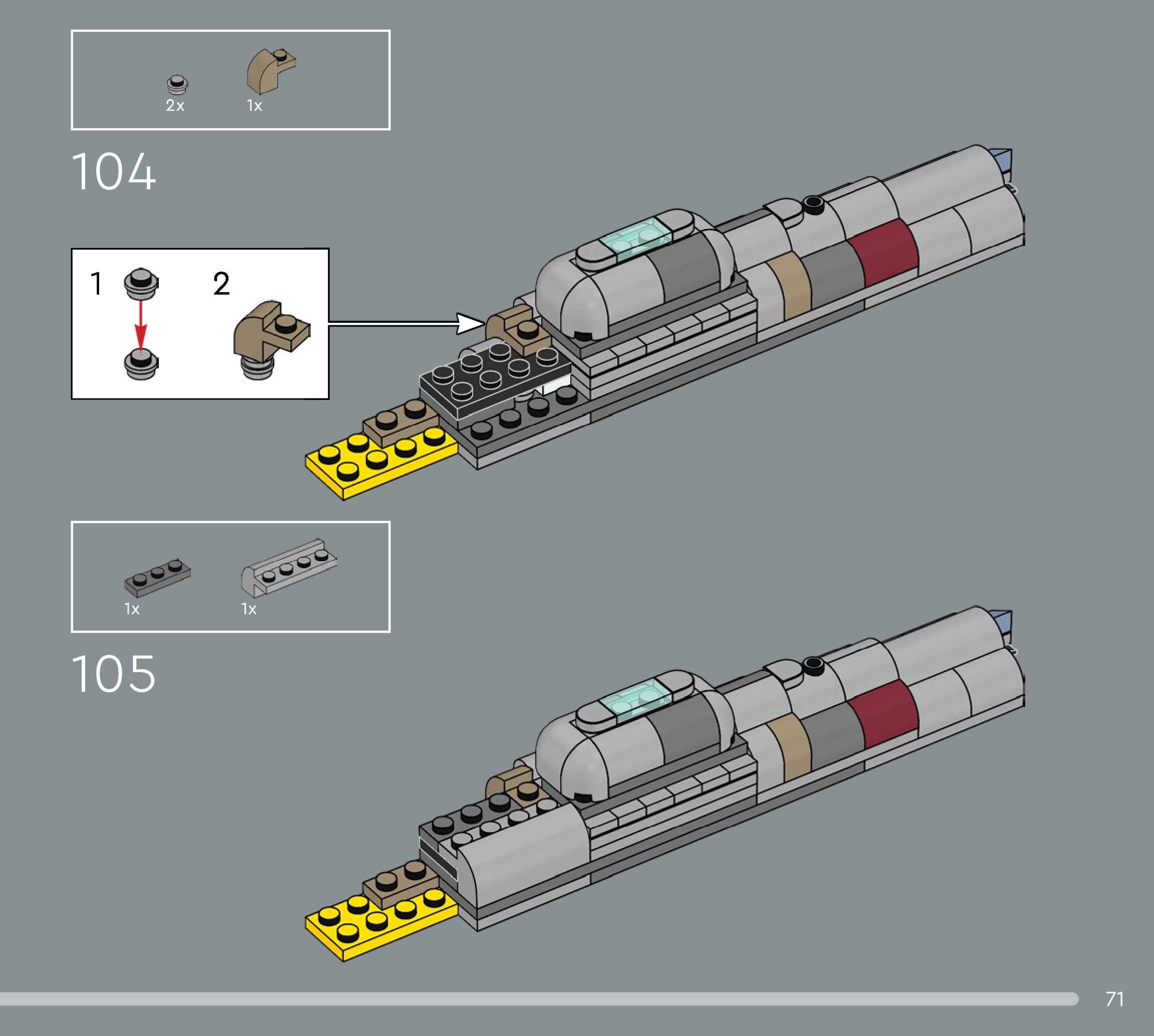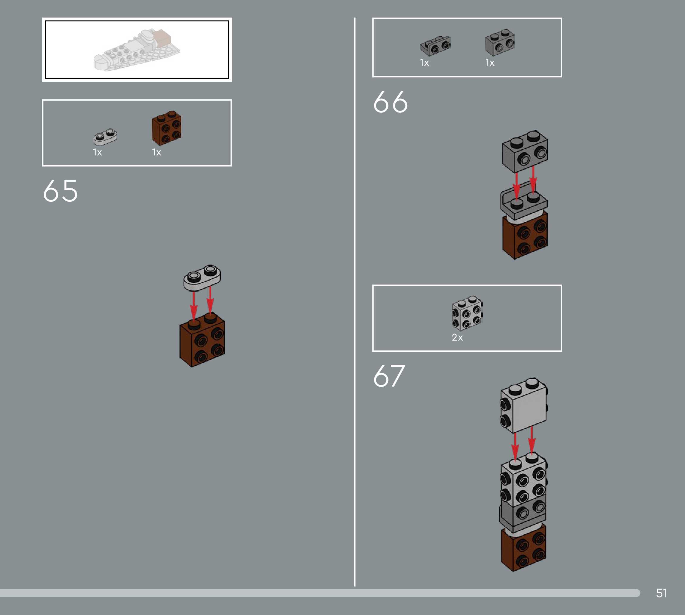 The assembly guide is prepared in a very understandable way for children and adult LEGO enthusiasts. A total of 140 picture galleries are shown, explaining the step-by-step construction stages for 1 different structures.