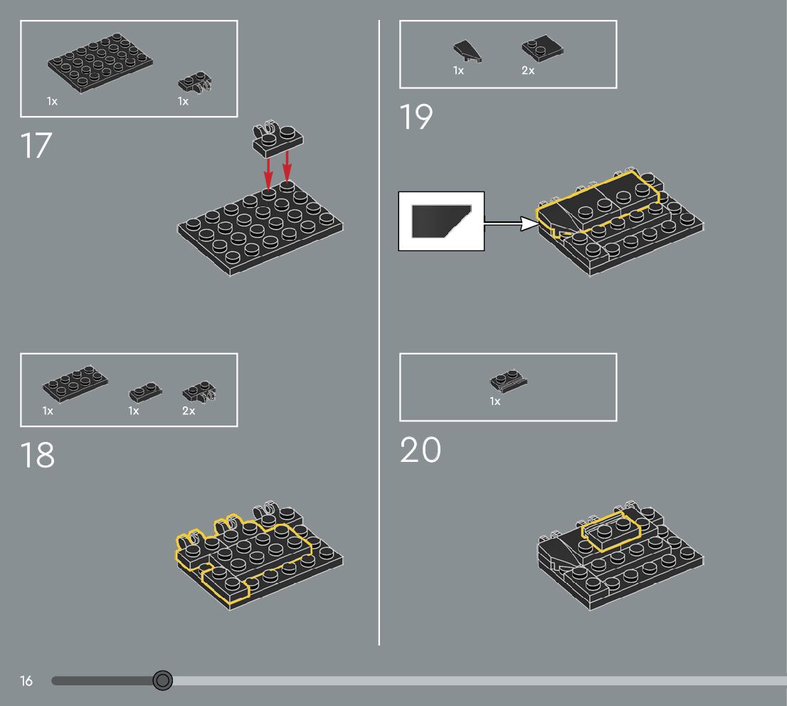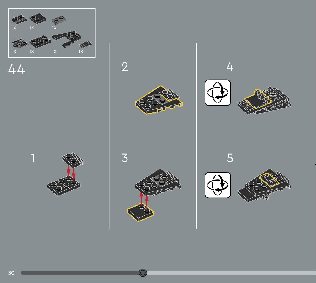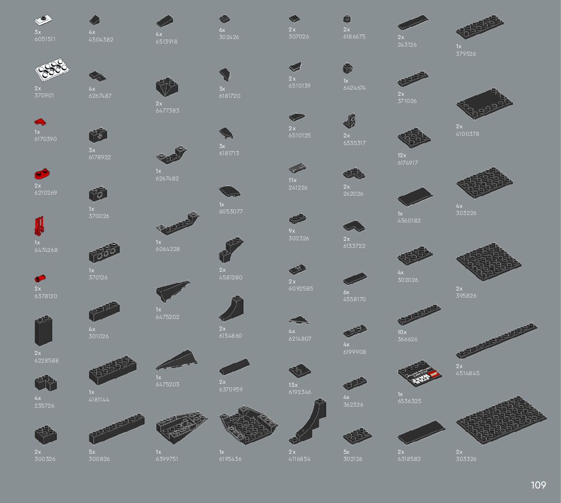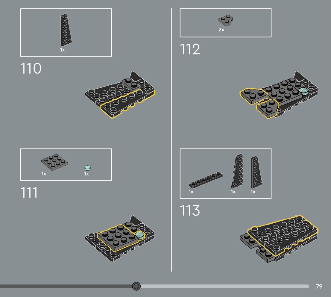 The assembly guide is prepared in a very understandable way for children and adult LEGO enthusiasts. A total of 112 picture galleries are shown, explaining the step-by-step construction stages for 1 different structures.