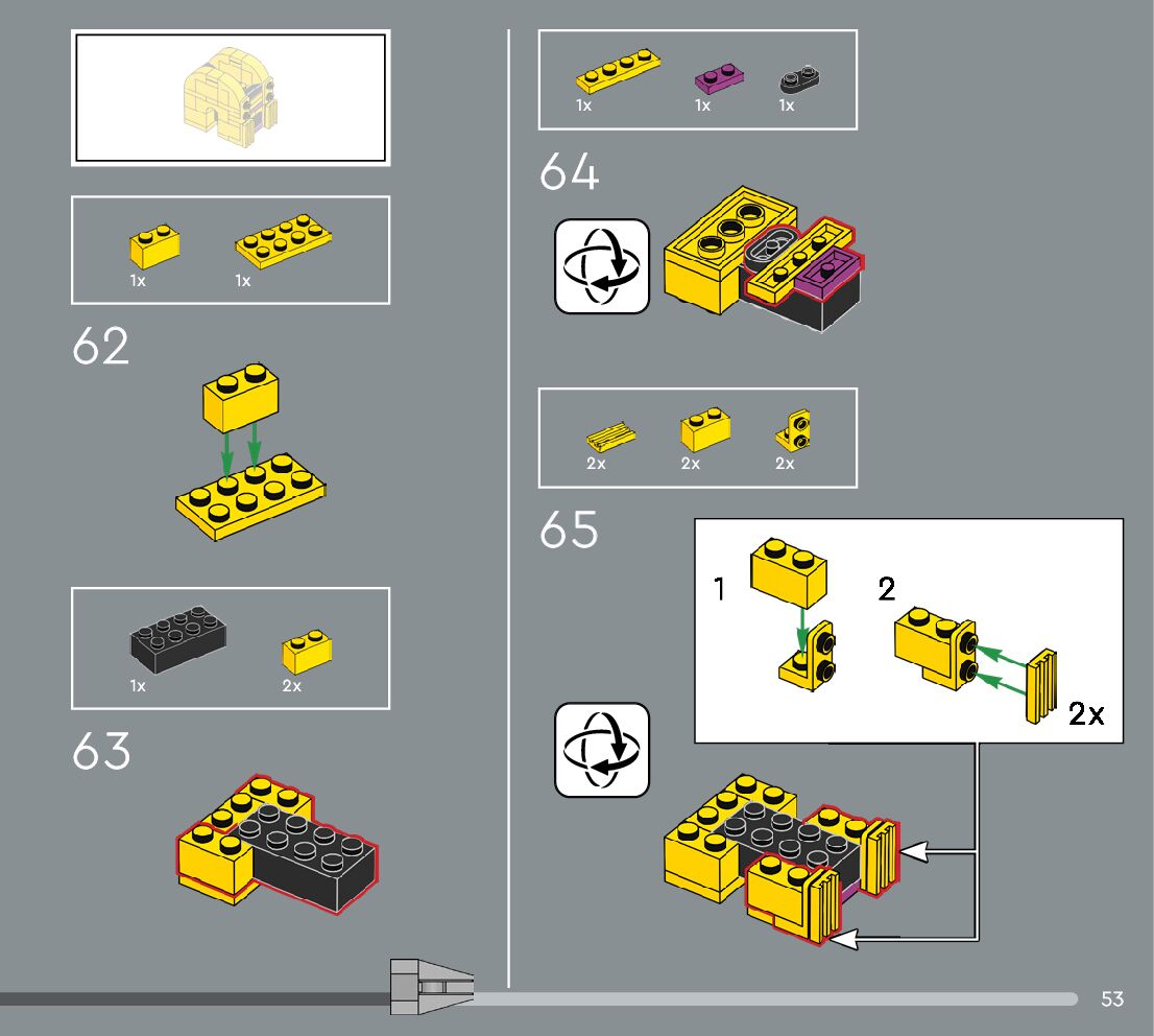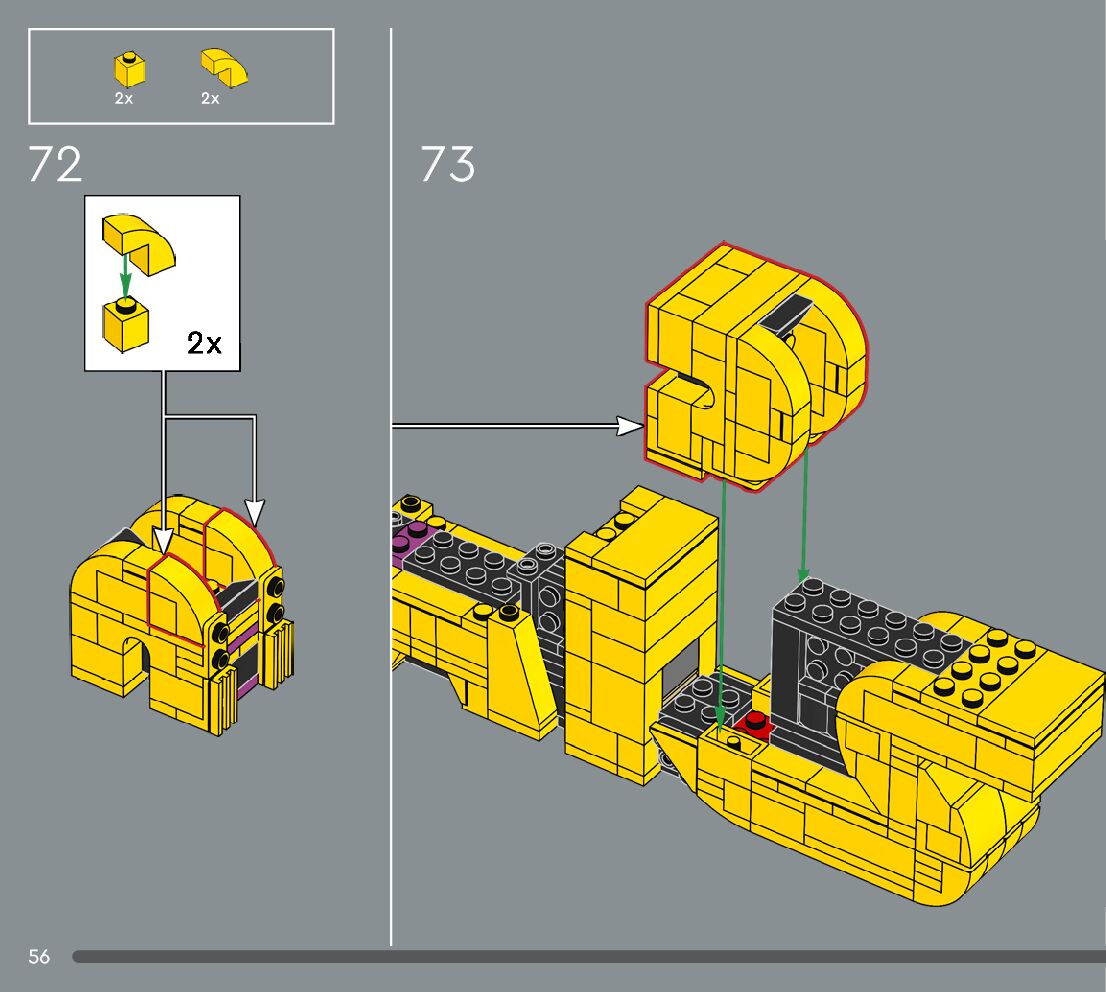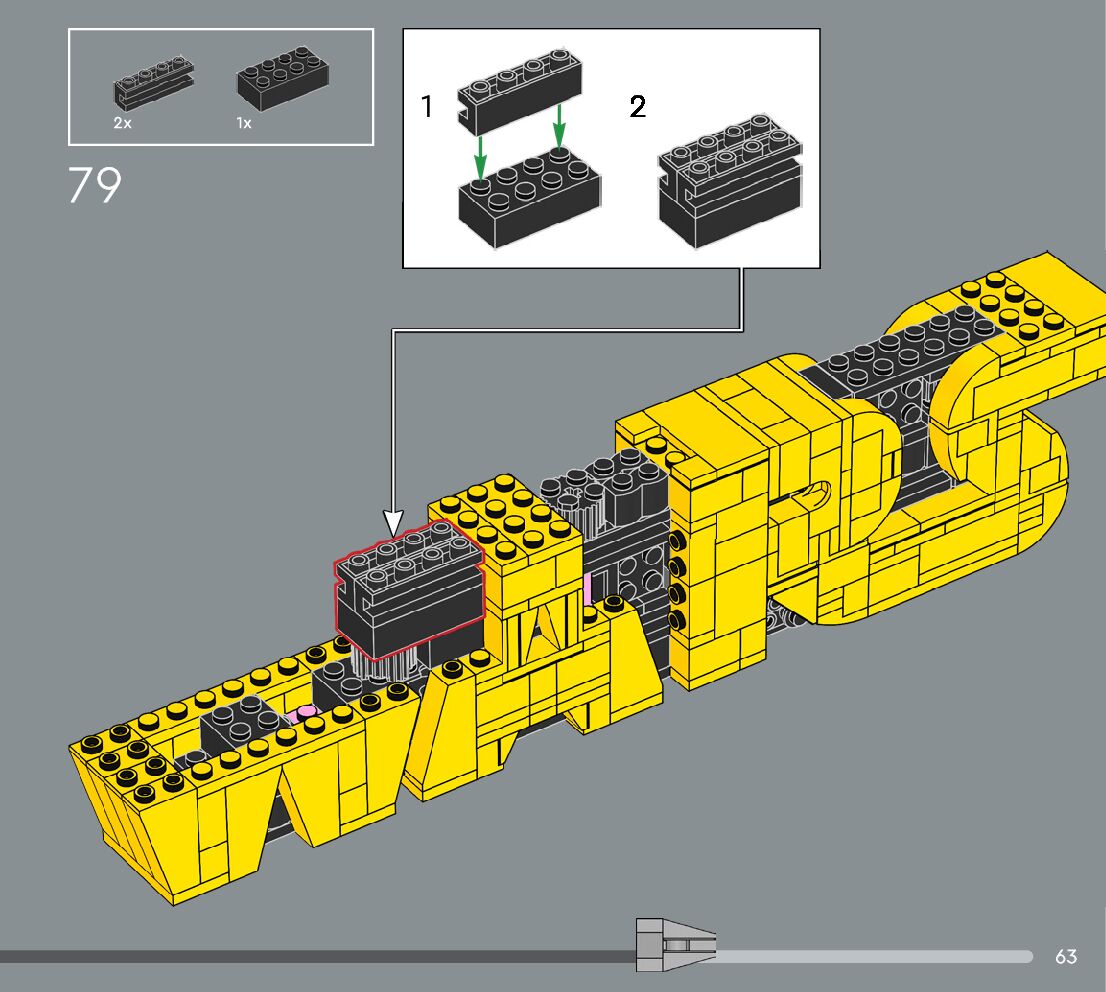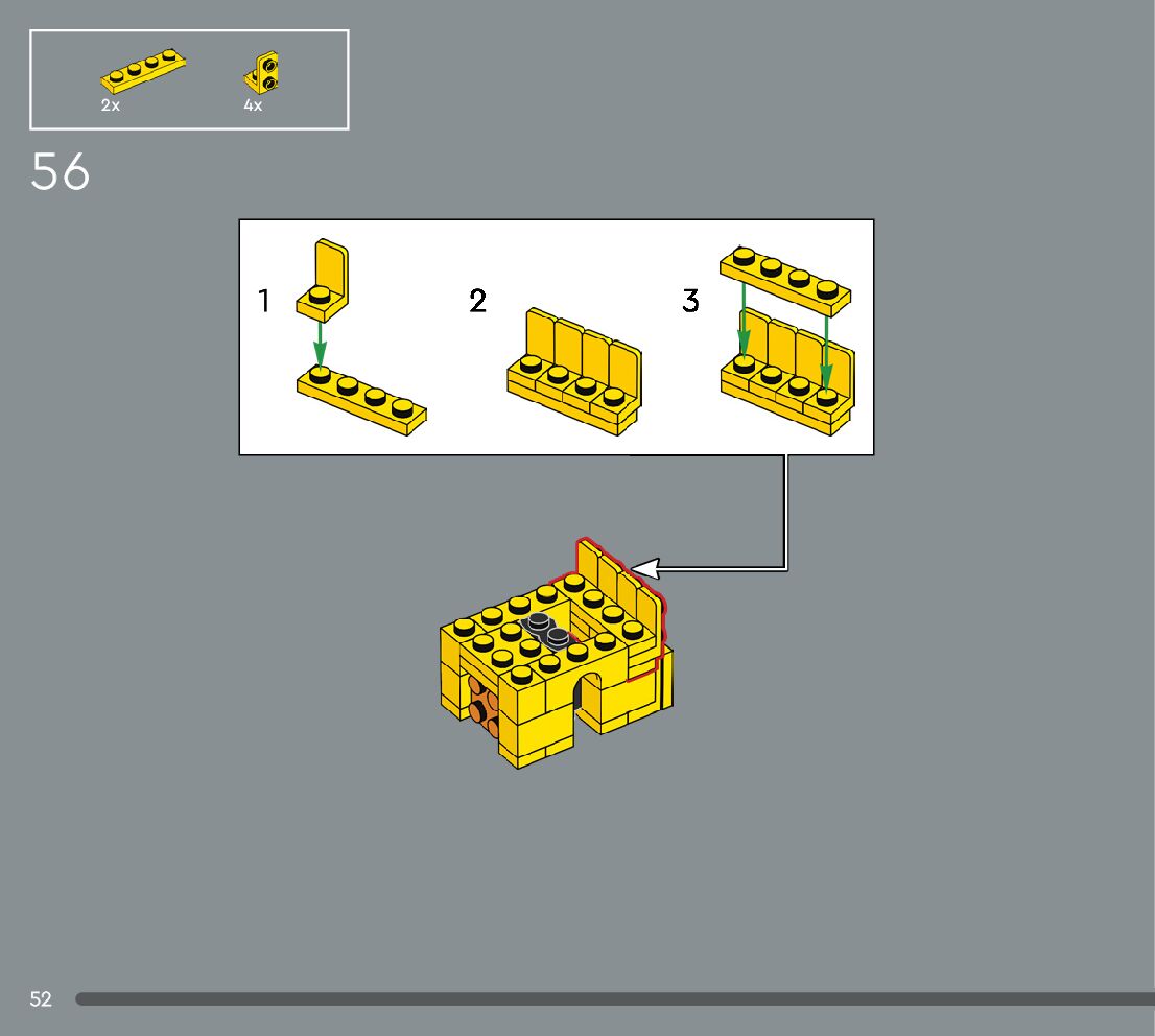 The assembly guide is prepared in a very understandable way for children and adult LEGO enthusiasts. A total of 164 picture galleries are shown, explaining the step-by-step construction stages for 2 different structures.