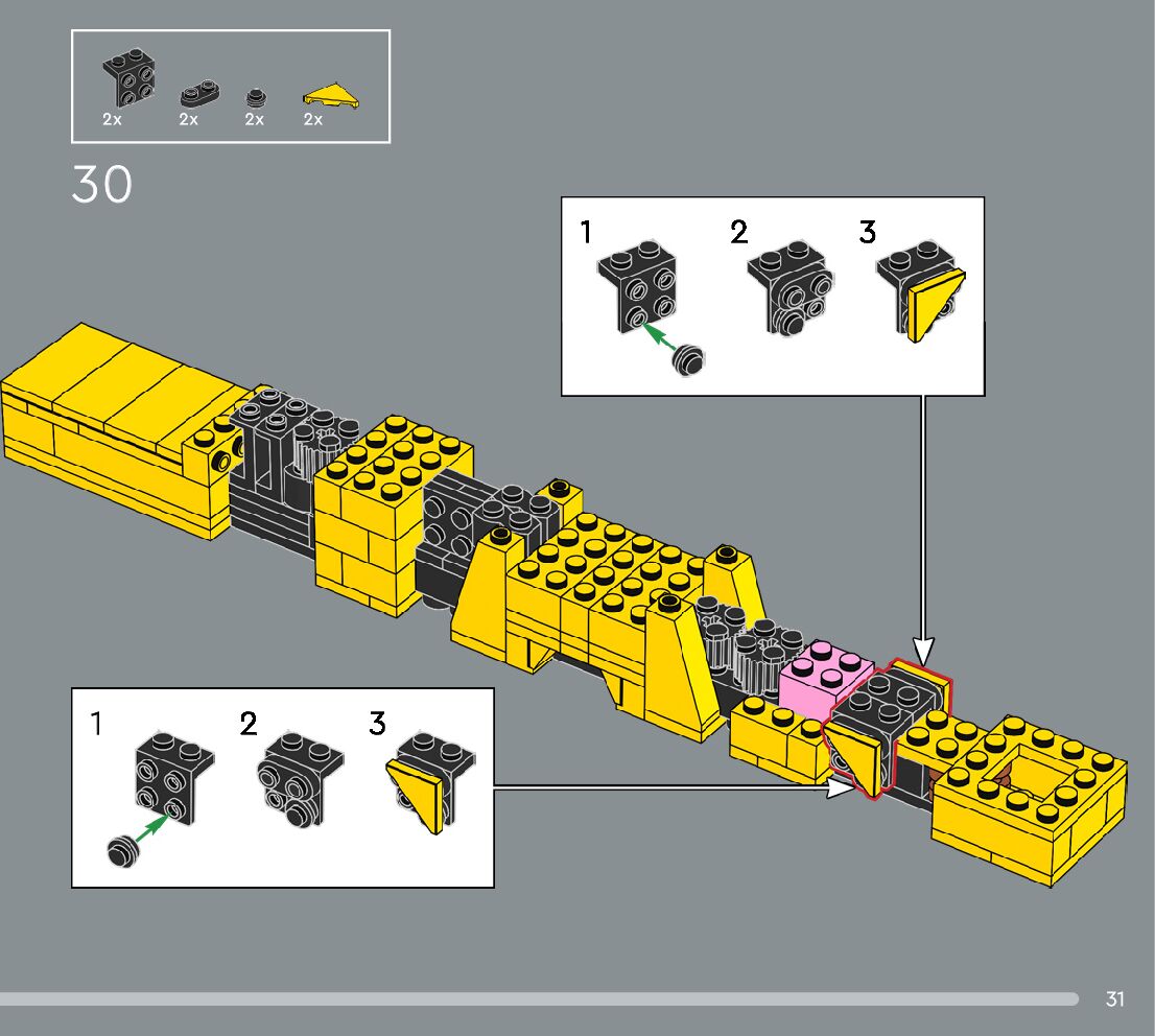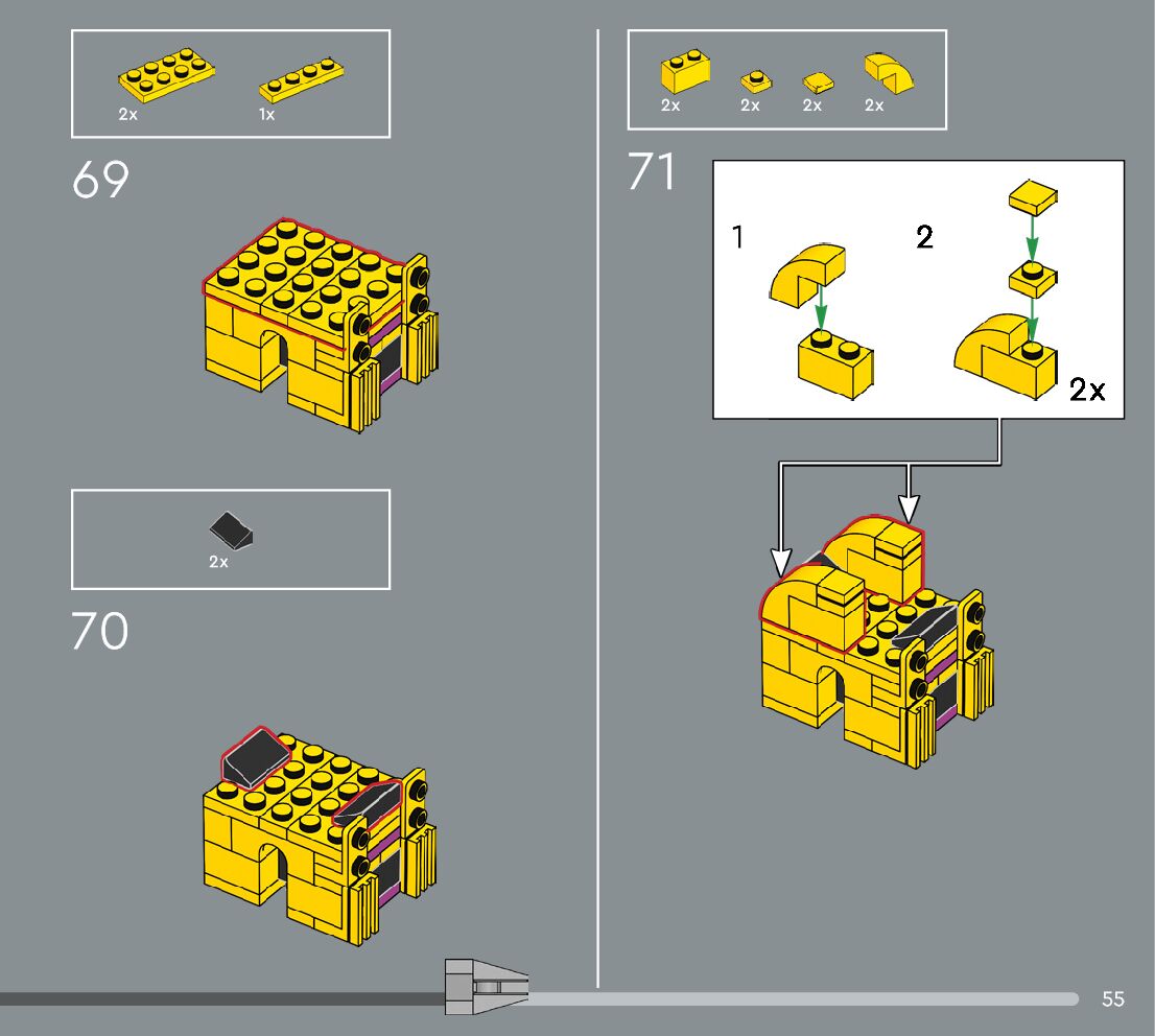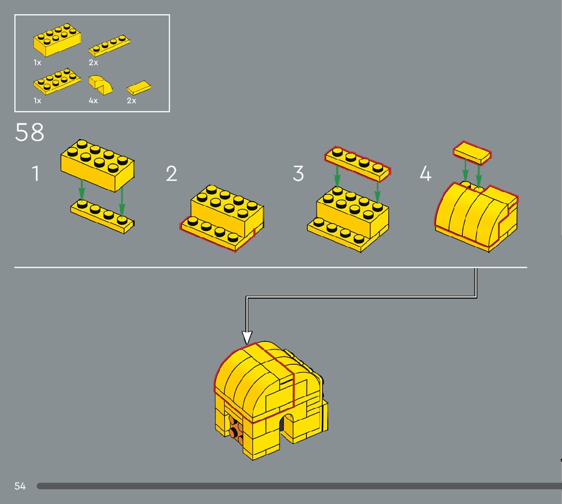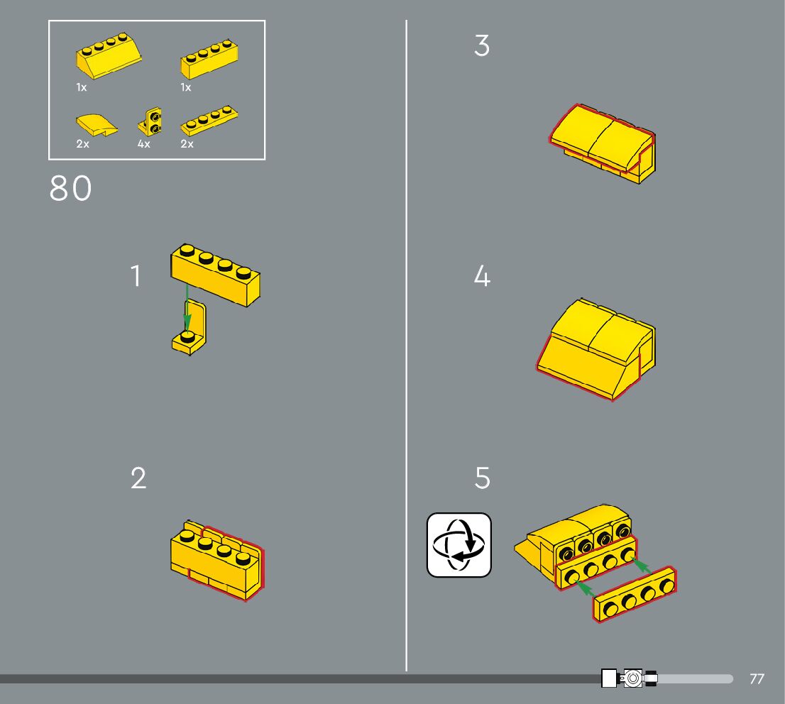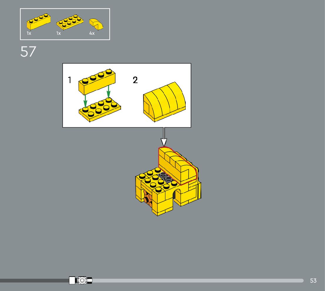The assembly guide is prepared in a very understandable way for children and adult LEGO enthusiasts. A total of 164 picture galleries are shown, explaining the step-by-step construction stages for 2 different structures.