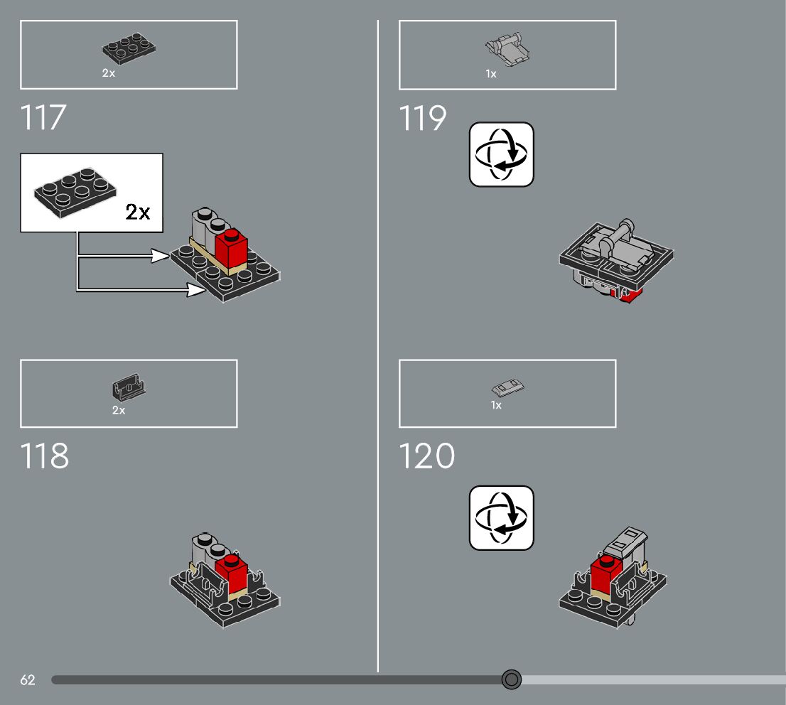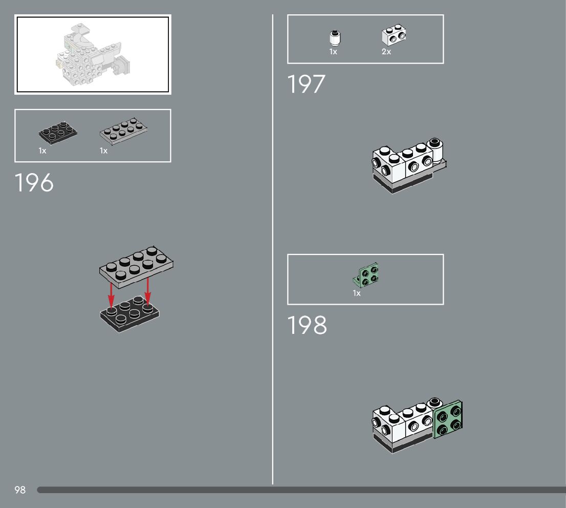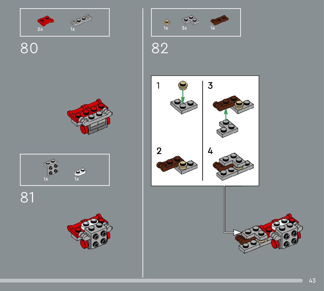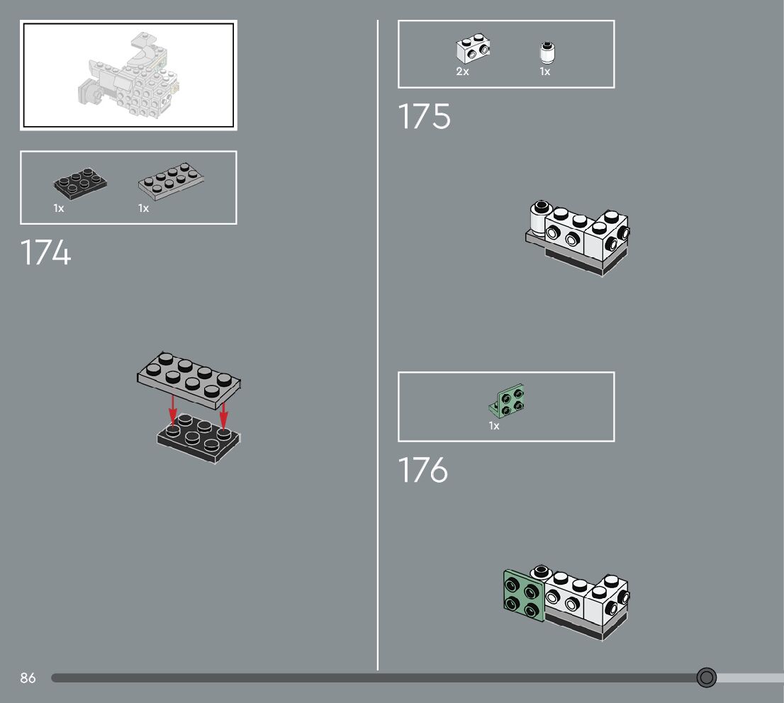 The assembly guide is prepared in a very understandable way for children and adult LEGO enthusiasts. A total of 176 picture galleries are shown, explaining the step-by-step construction stages for 1 different structures.