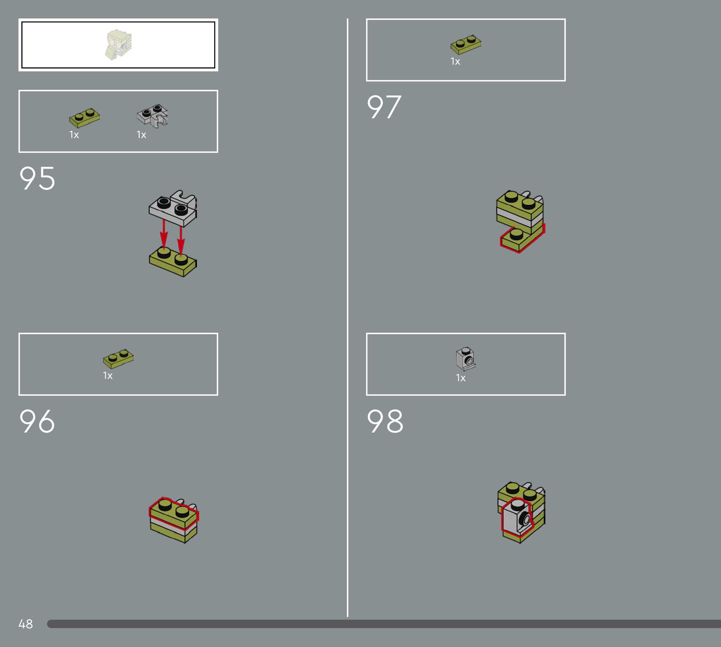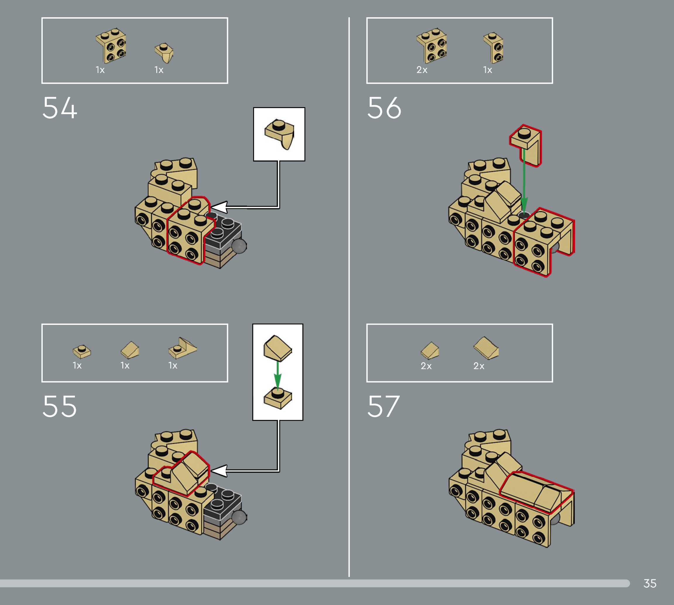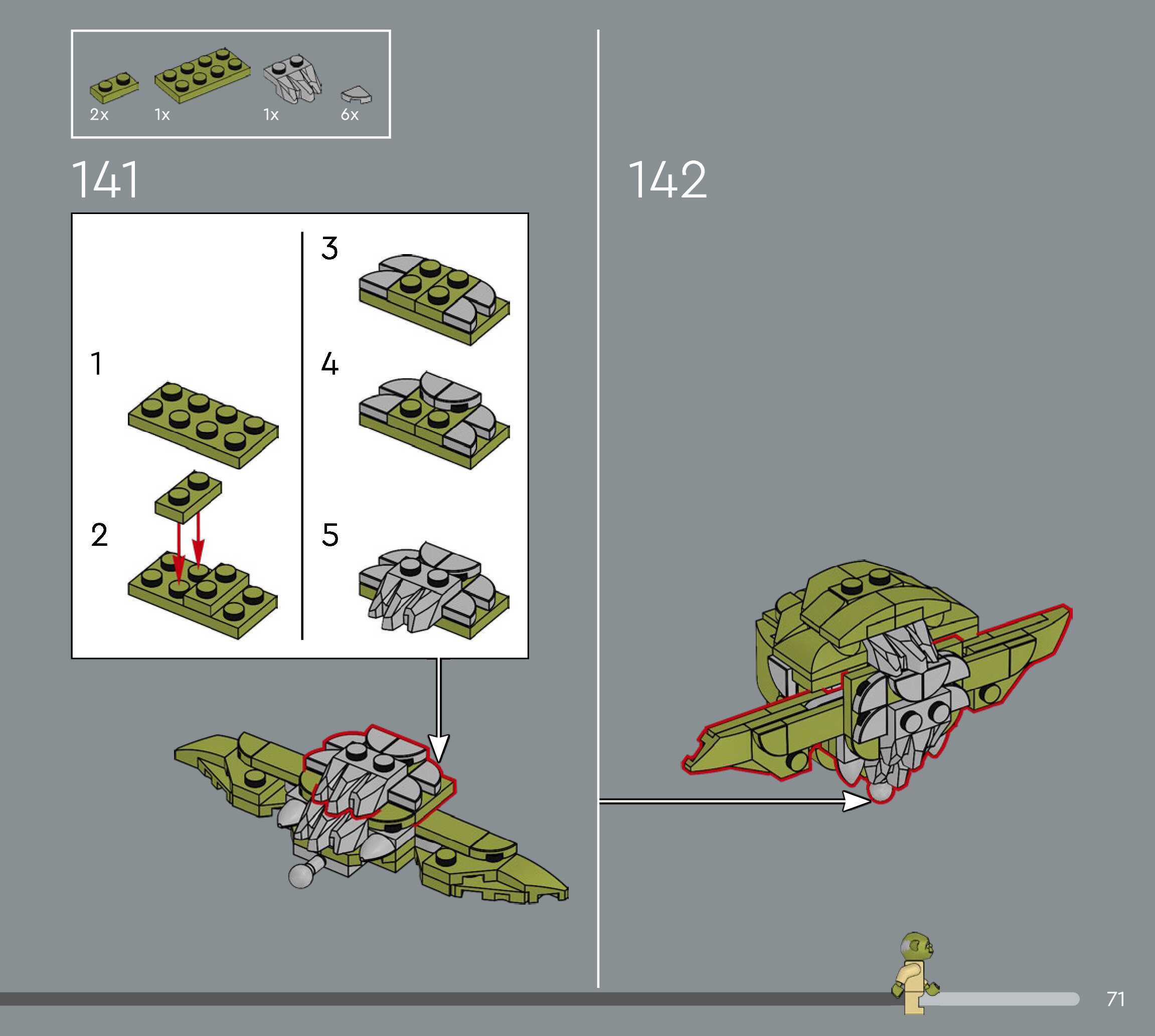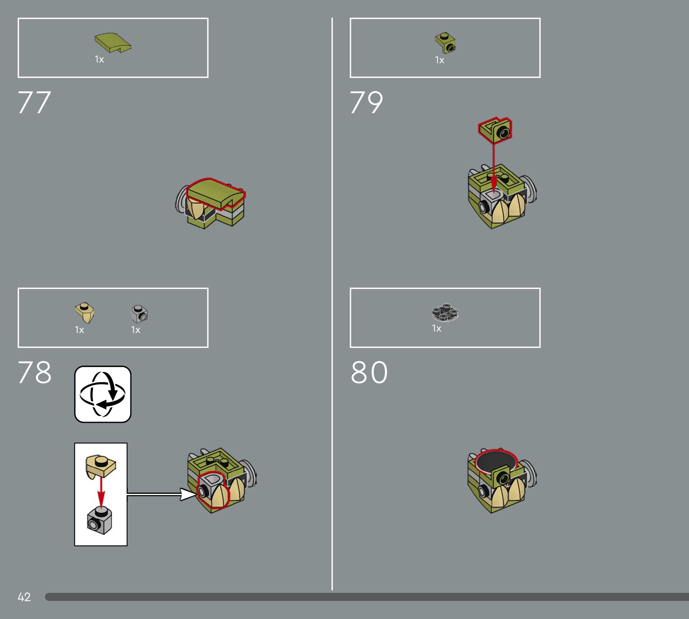 The assembly guide is prepared in a very understandable way for children and adult LEGO enthusiasts. A total of 80 picture galleries are shown, explaining the step-by-step construction stages for 1 different structures.