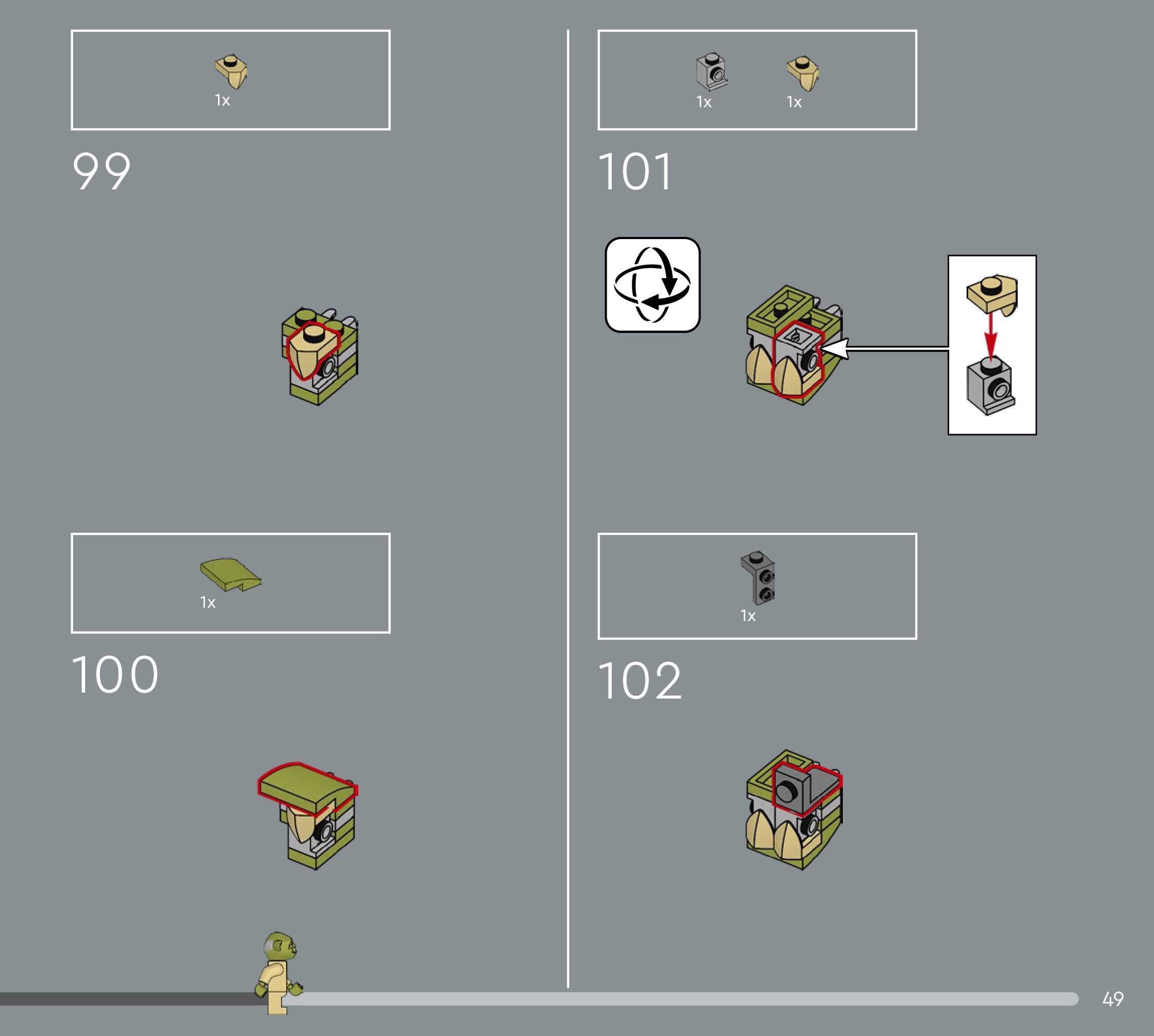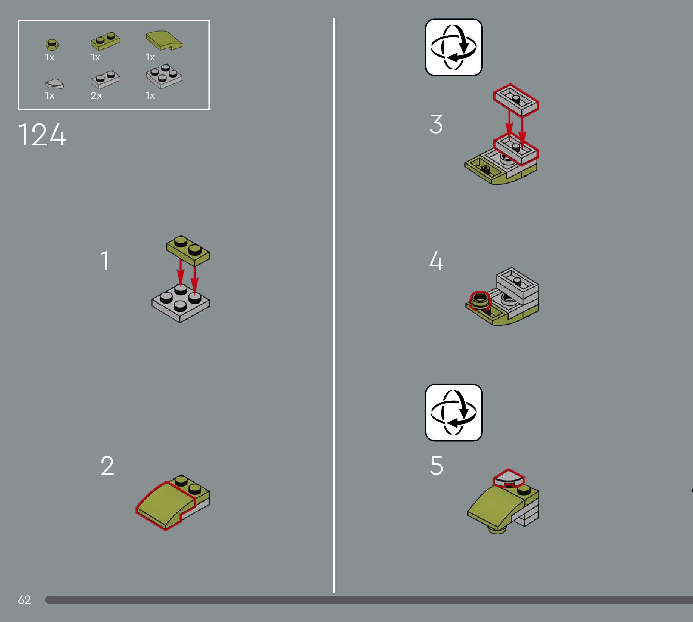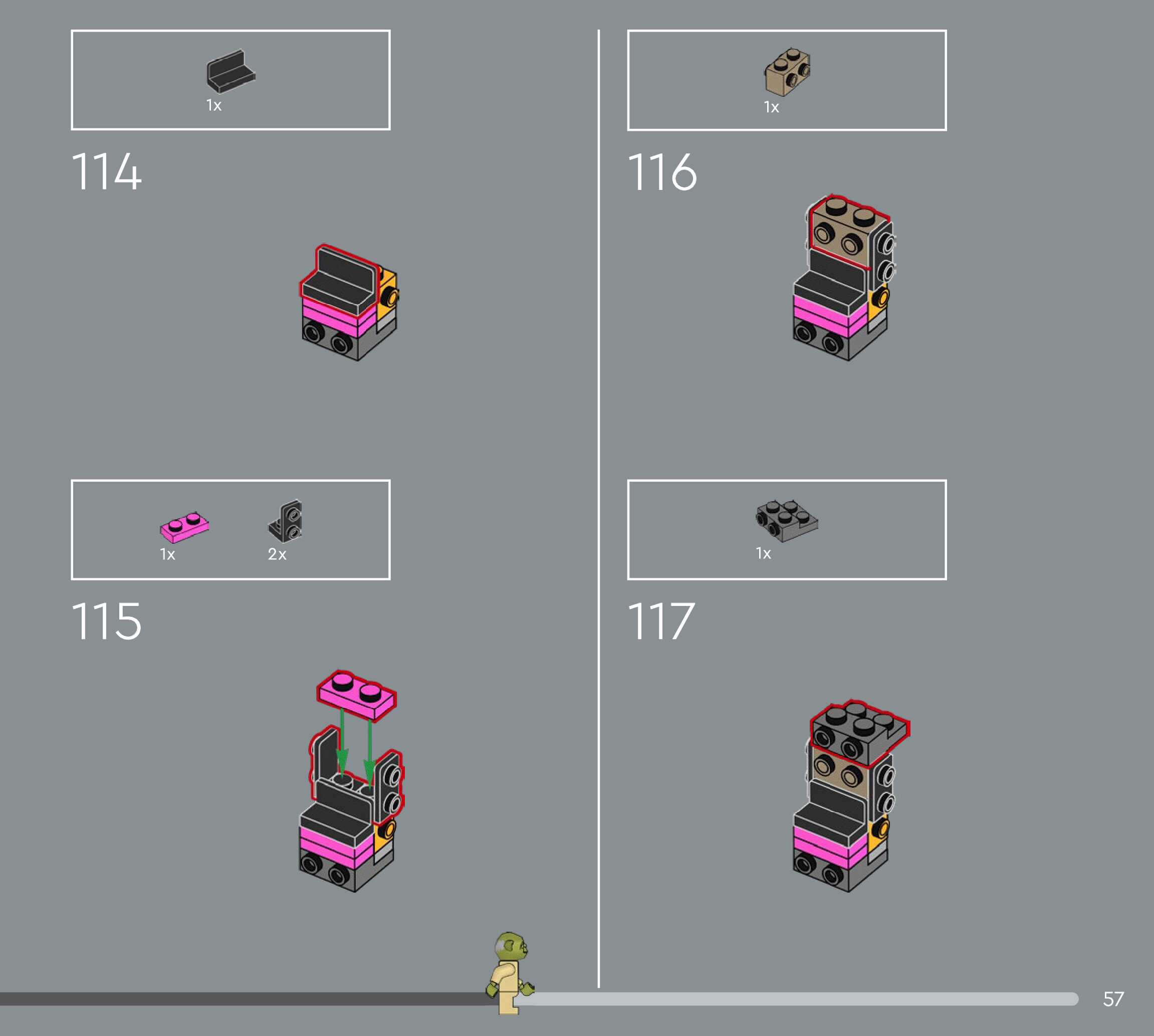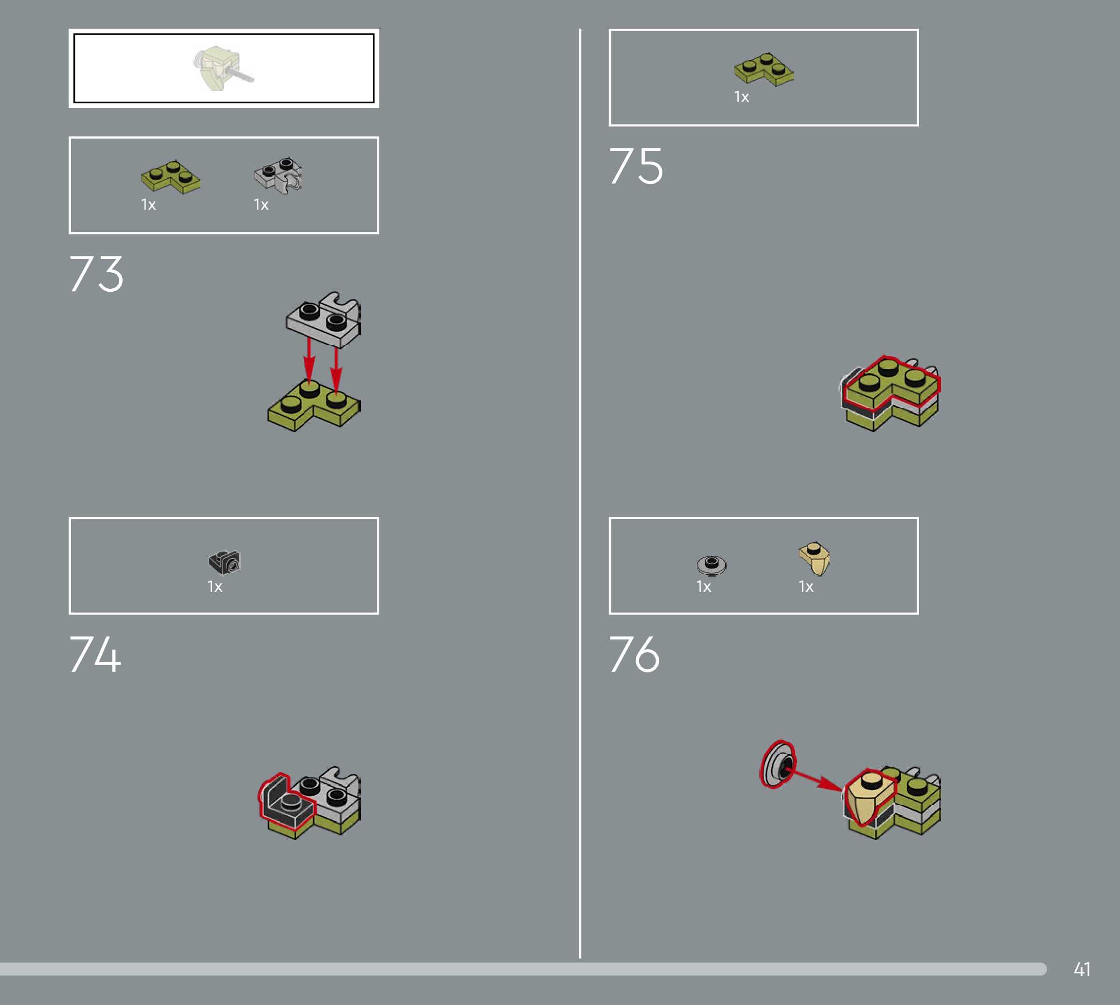 The assembly guide is prepared in a very understandable way for children and adult LEGO enthusiasts. A total of 80 picture galleries are shown, explaining the step-by-step construction stages for 1 different structures.