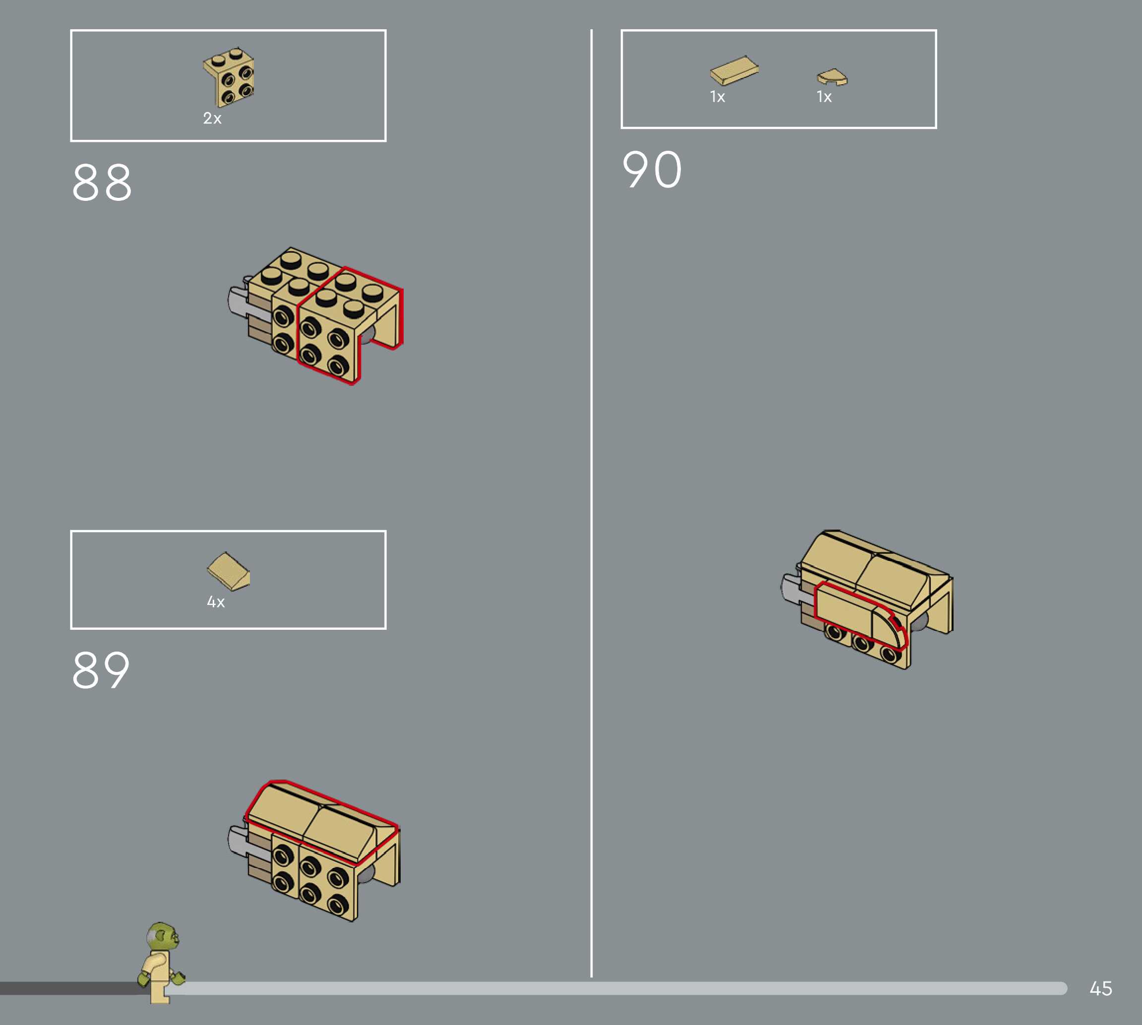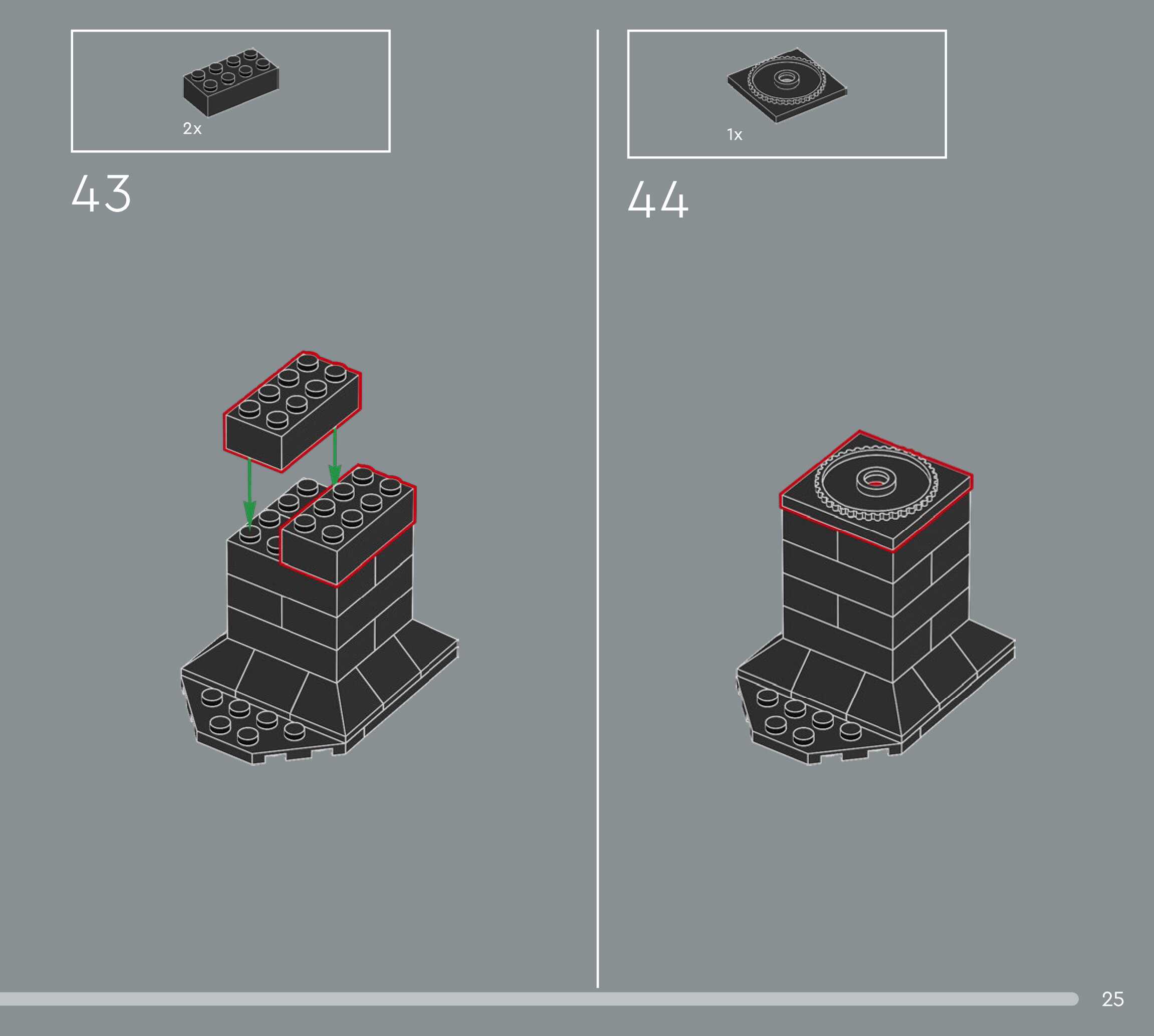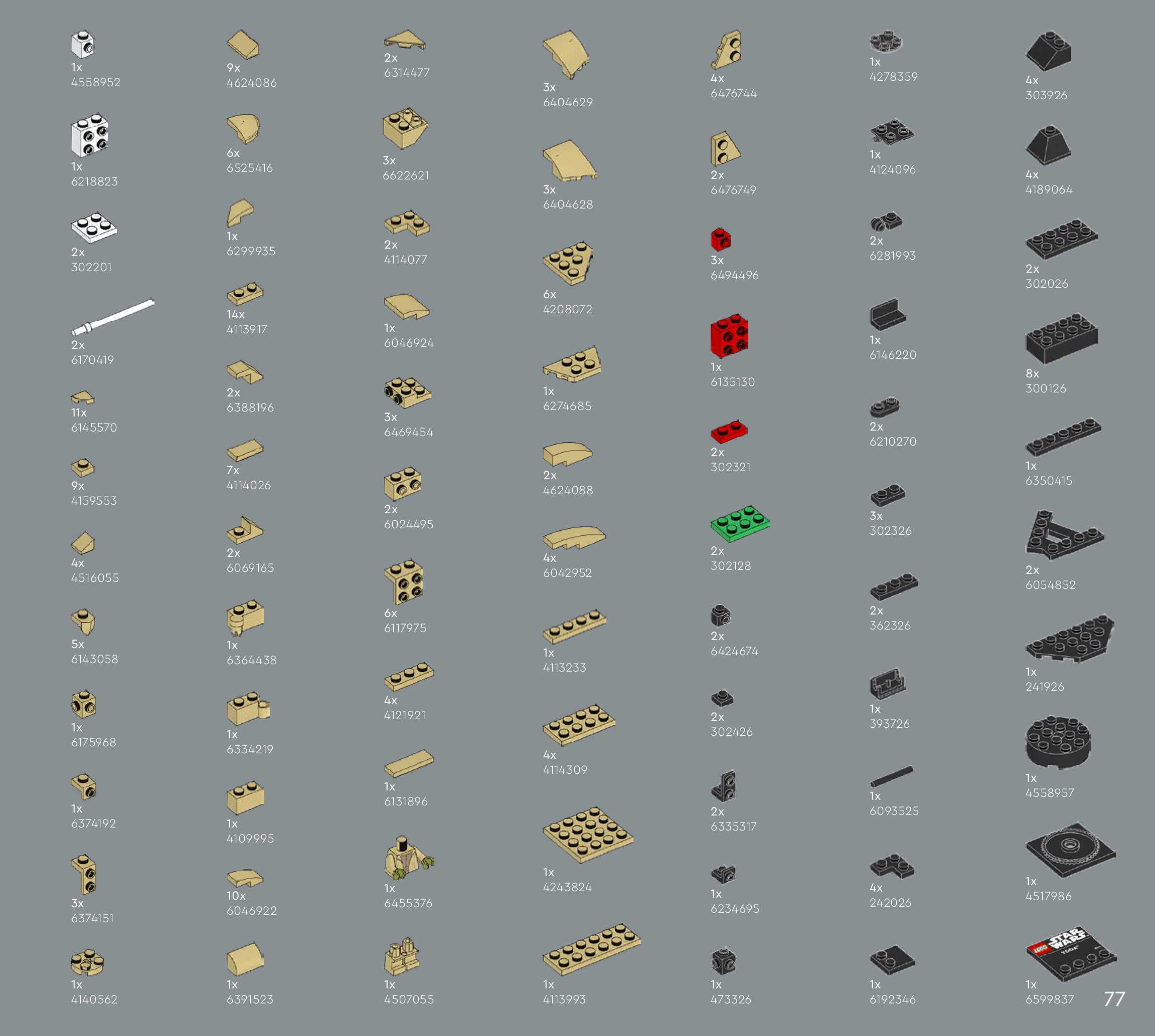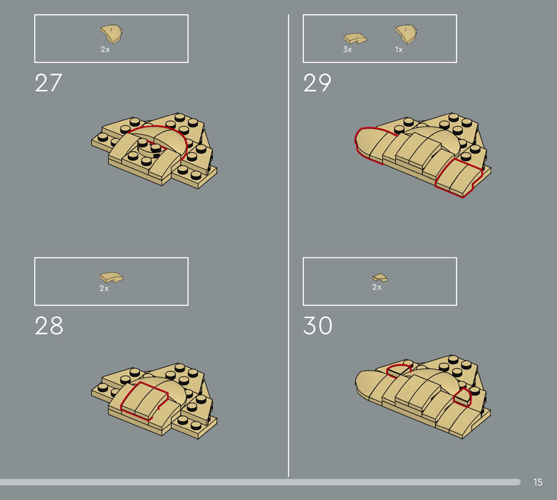 The assembly guide is prepared in a very understandable way for children and adult LEGO enthusiasts. A total of 80 picture galleries are shown, explaining the step-by-step construction stages for 1 different structures.