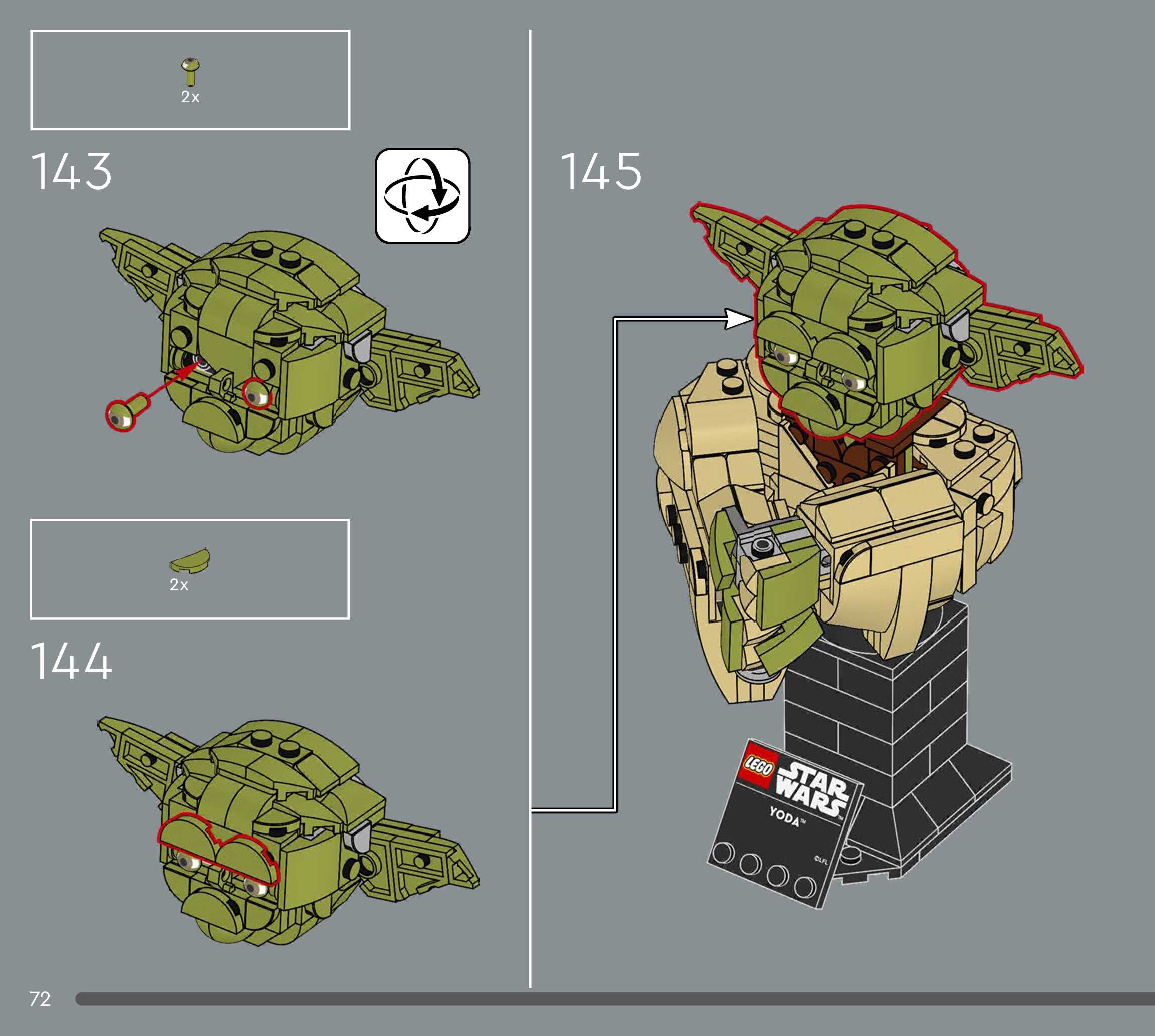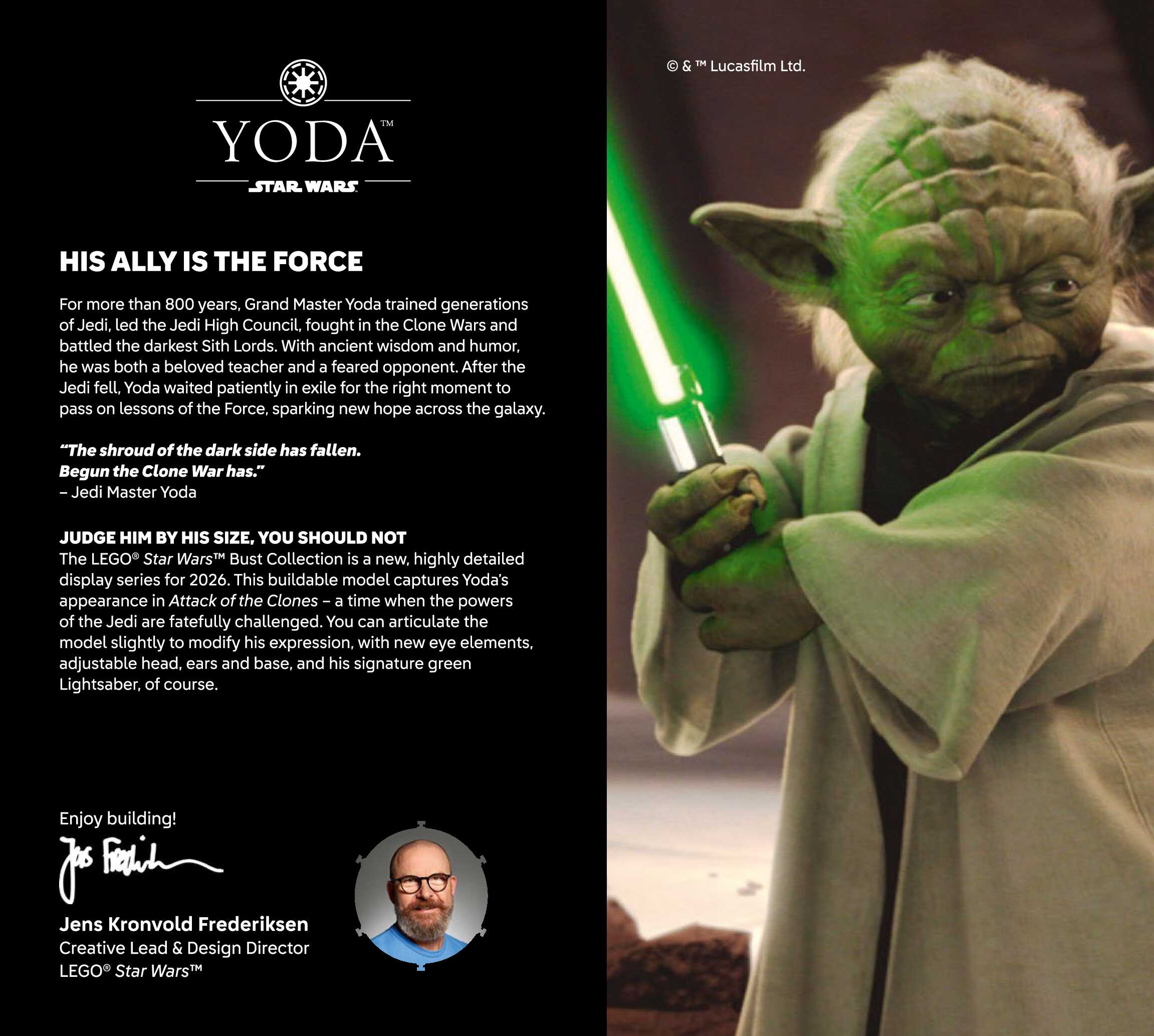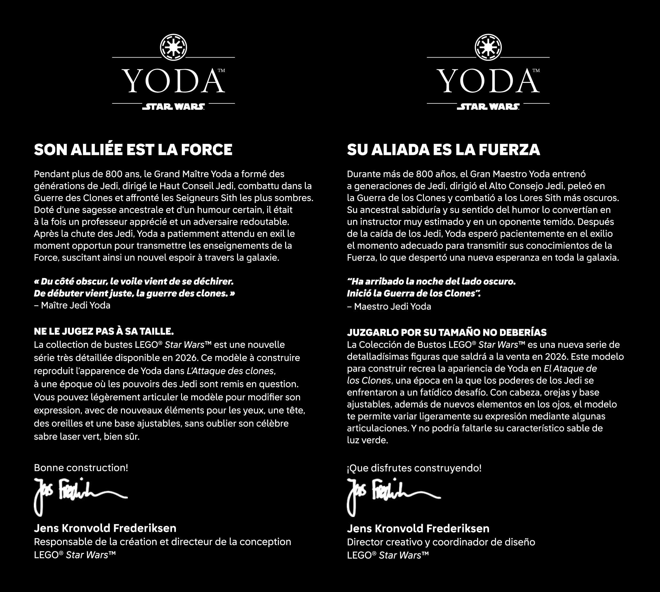 On this page you can find the original construction manual for the LEGO 75438 set. With the assembly manual you can easily learn how to build the Yoda™ Bust step by step. The set was released in 2026.