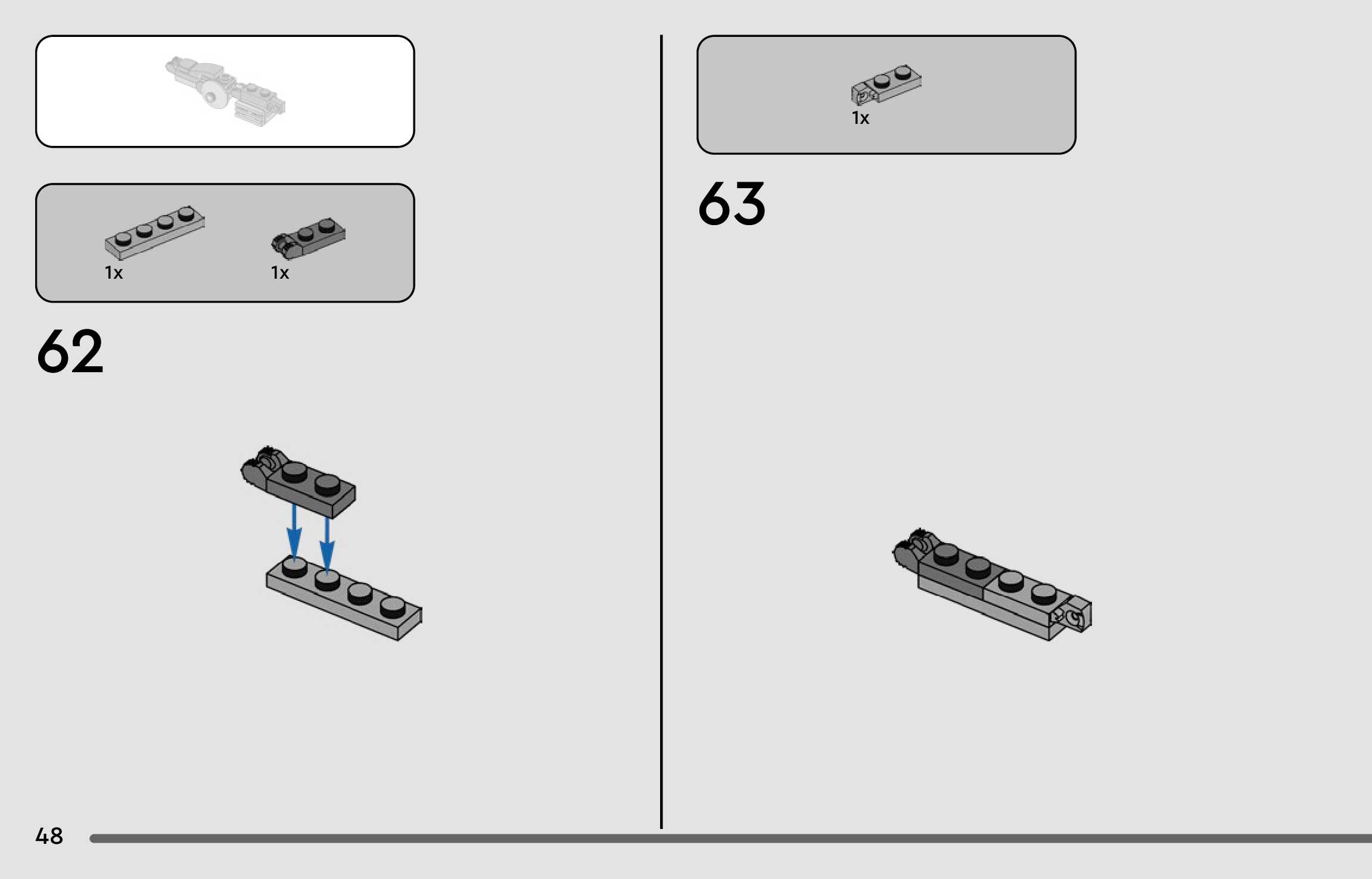 The assembly guide is prepared in a very understandable way for children and adult LEGO enthusiasts. A total of 128 picture galleries are shown, explaining the step-by-step construction stages for 2 different structures.