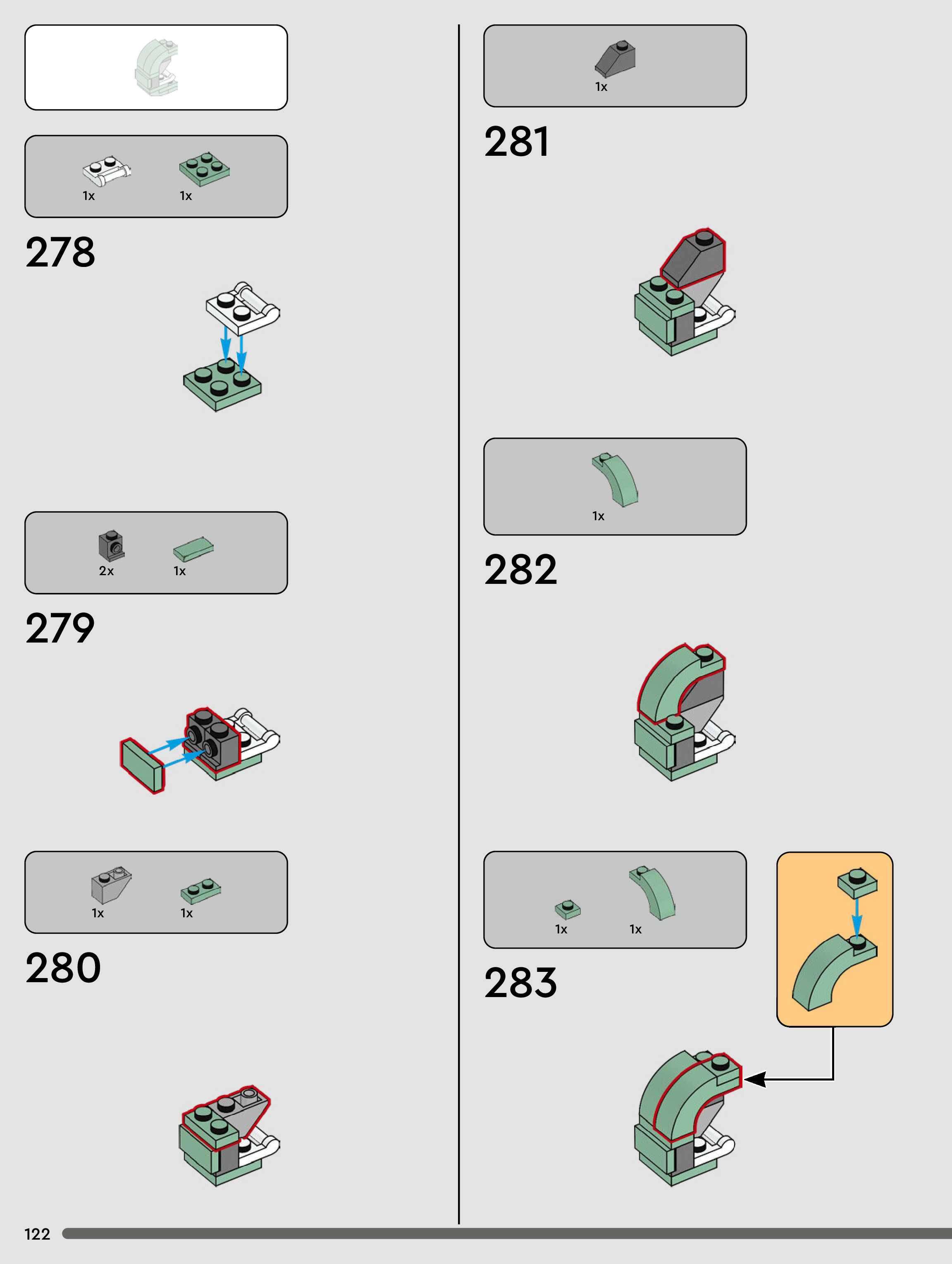 The assembly guide is prepared in a very understandable way for children and adult LEGO enthusiasts. A total of 180 picture galleries are shown, explaining the step-by-step construction stages for 1 different structures.