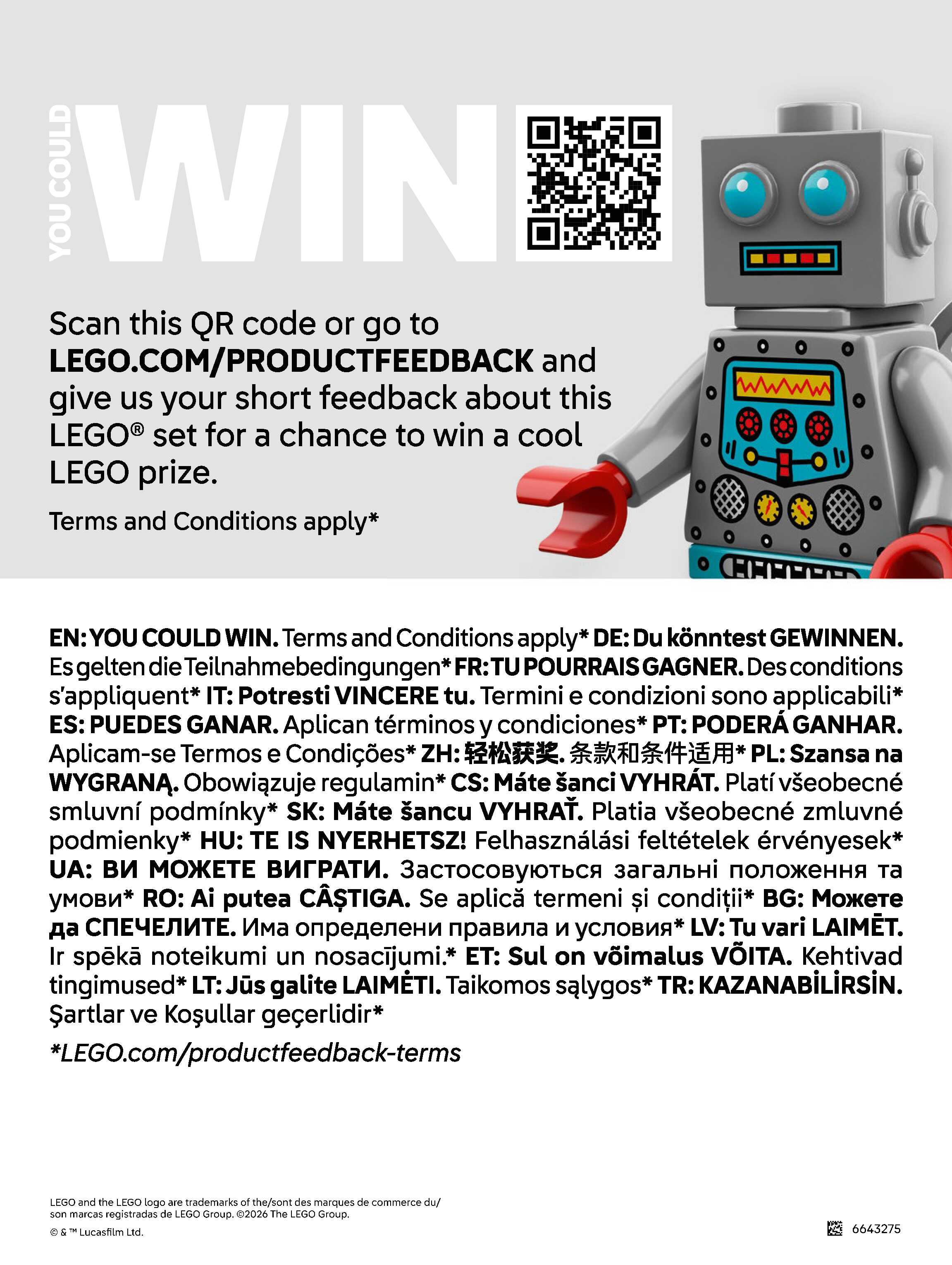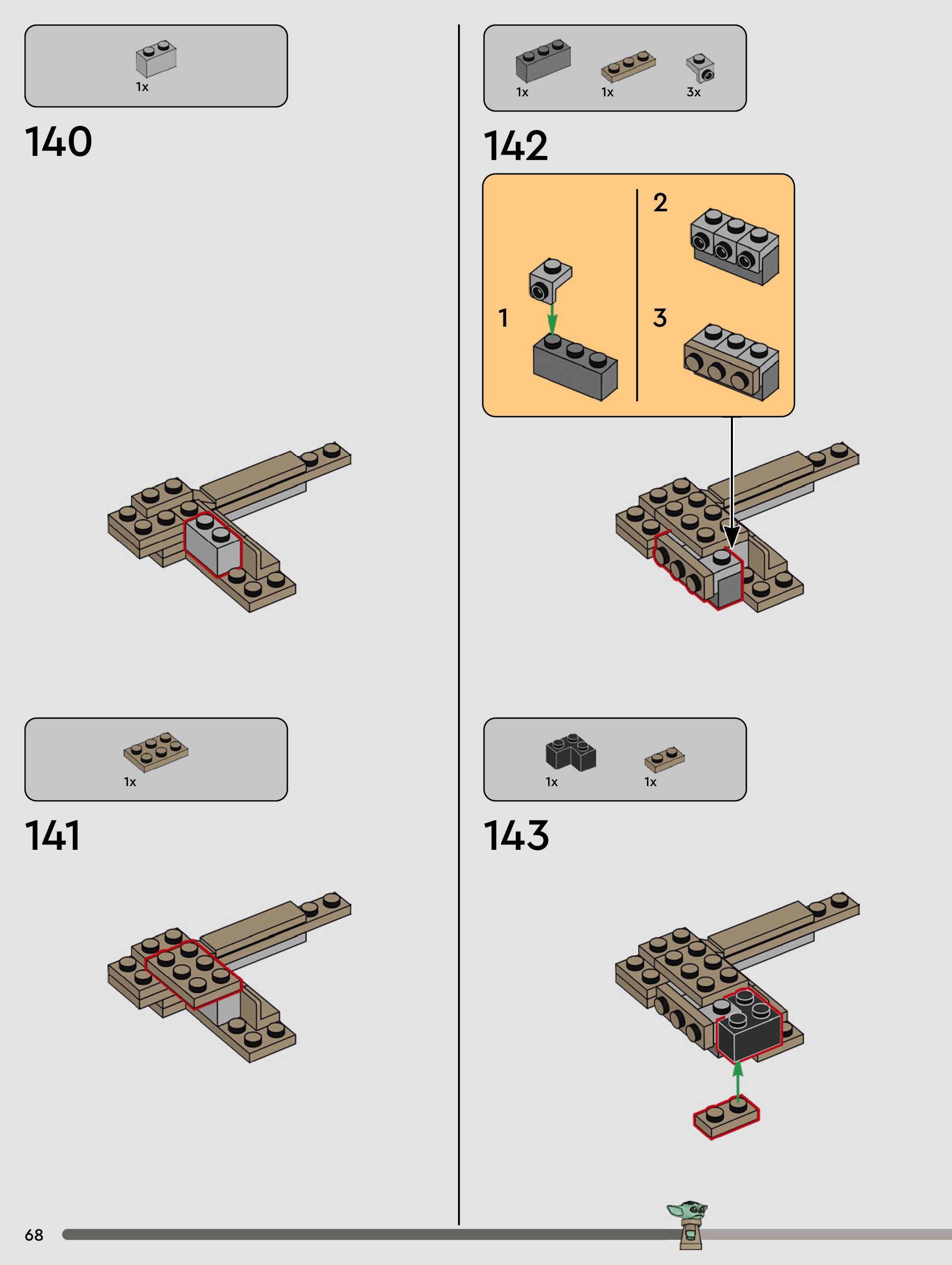 On this page you can find the original construction manual for the LEGO 75446 set. With the assembly manual you can easily learn how to build the Grogu™ (Mandalorian Apprentice) step by step. The set was released in 2026.