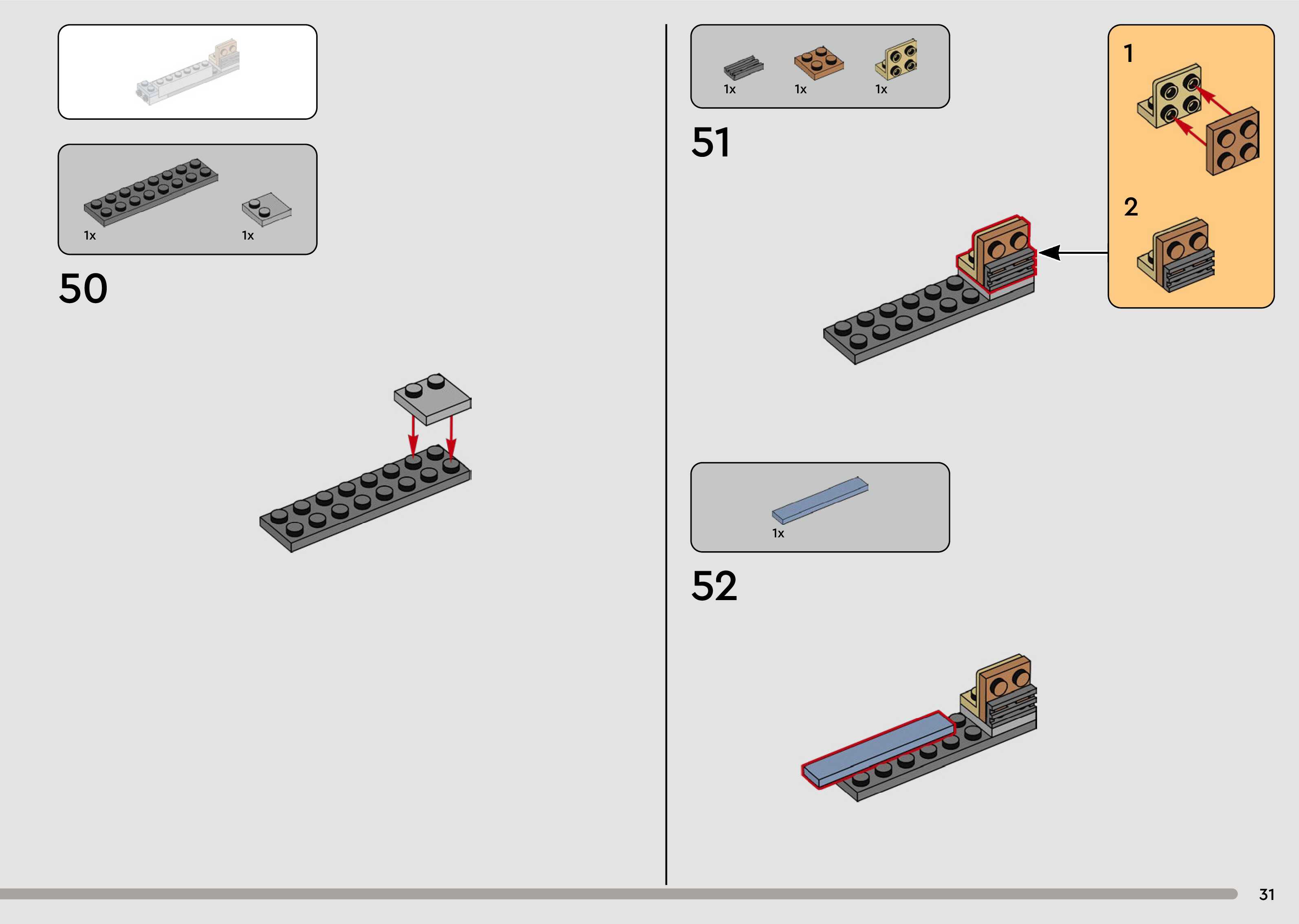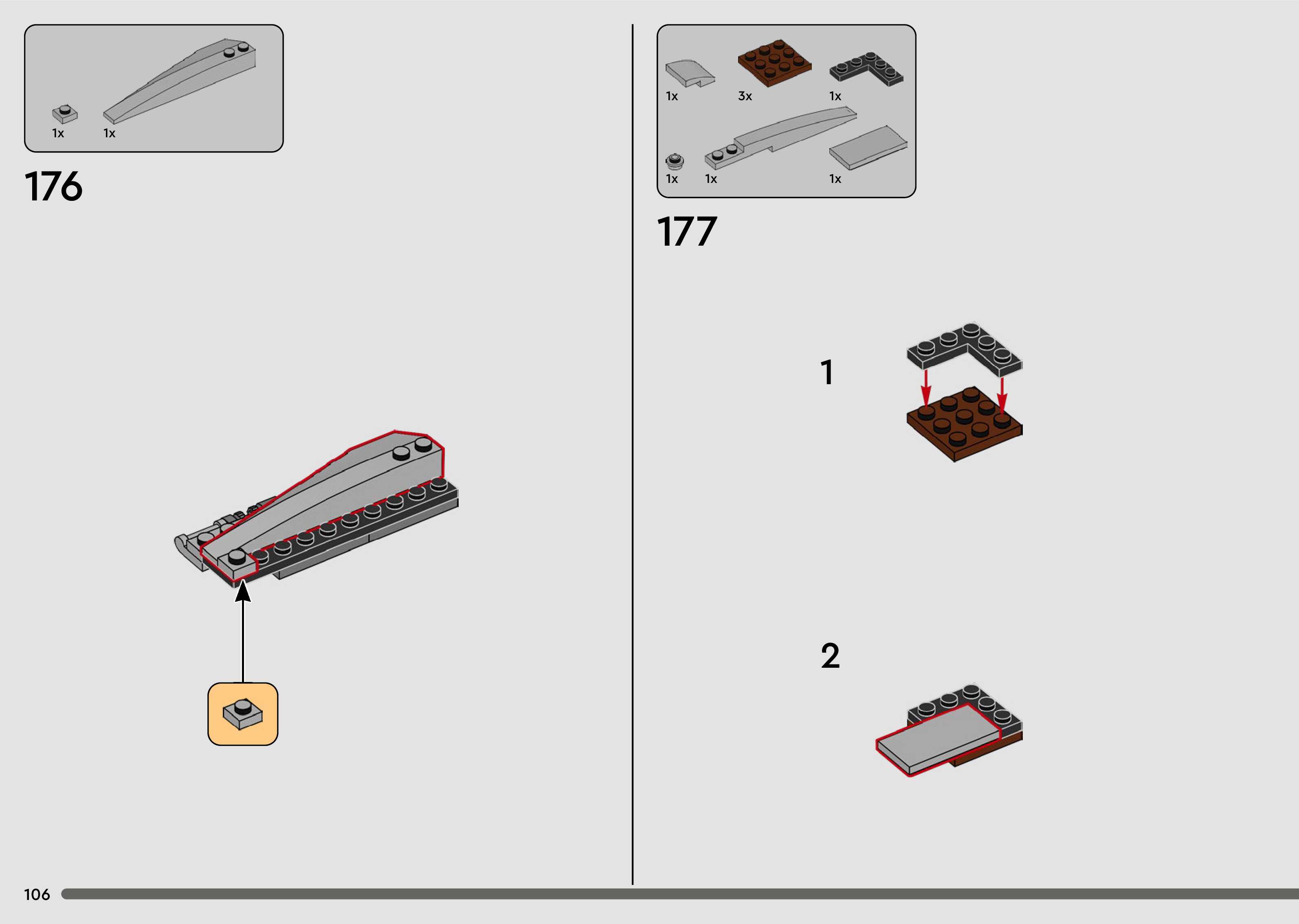 The assembly guide is prepared in a very understandable way for children and adult LEGO enthusiasts. A total of 176 picture galleries are shown, explaining the step-by-step construction stages for 1 different structures.