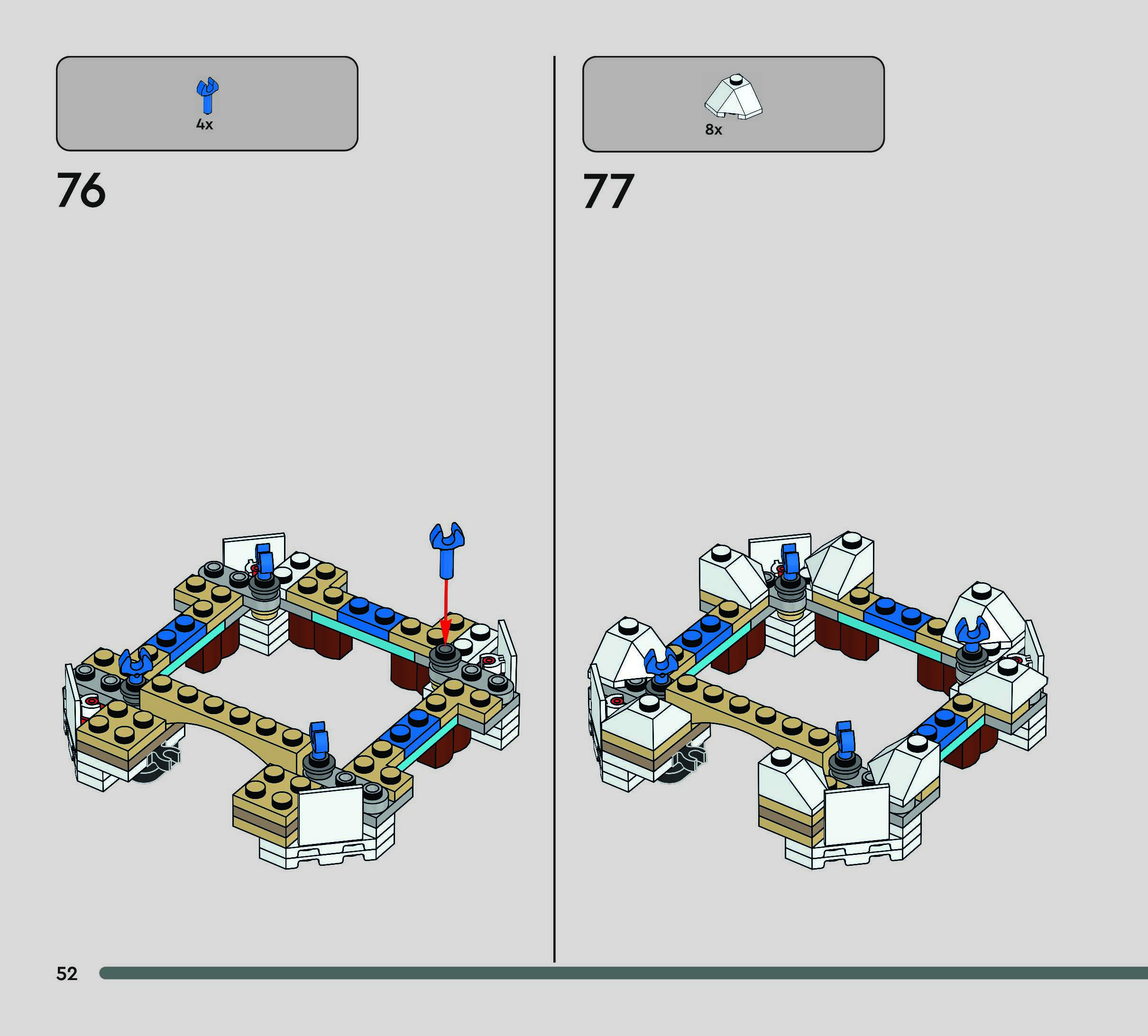 The assembly guide is prepared in a very understandable way for children and adult LEGO enthusiasts. A total of 92 picture galleries are shown, explaining the step-by-step construction stages for 1 different structures.