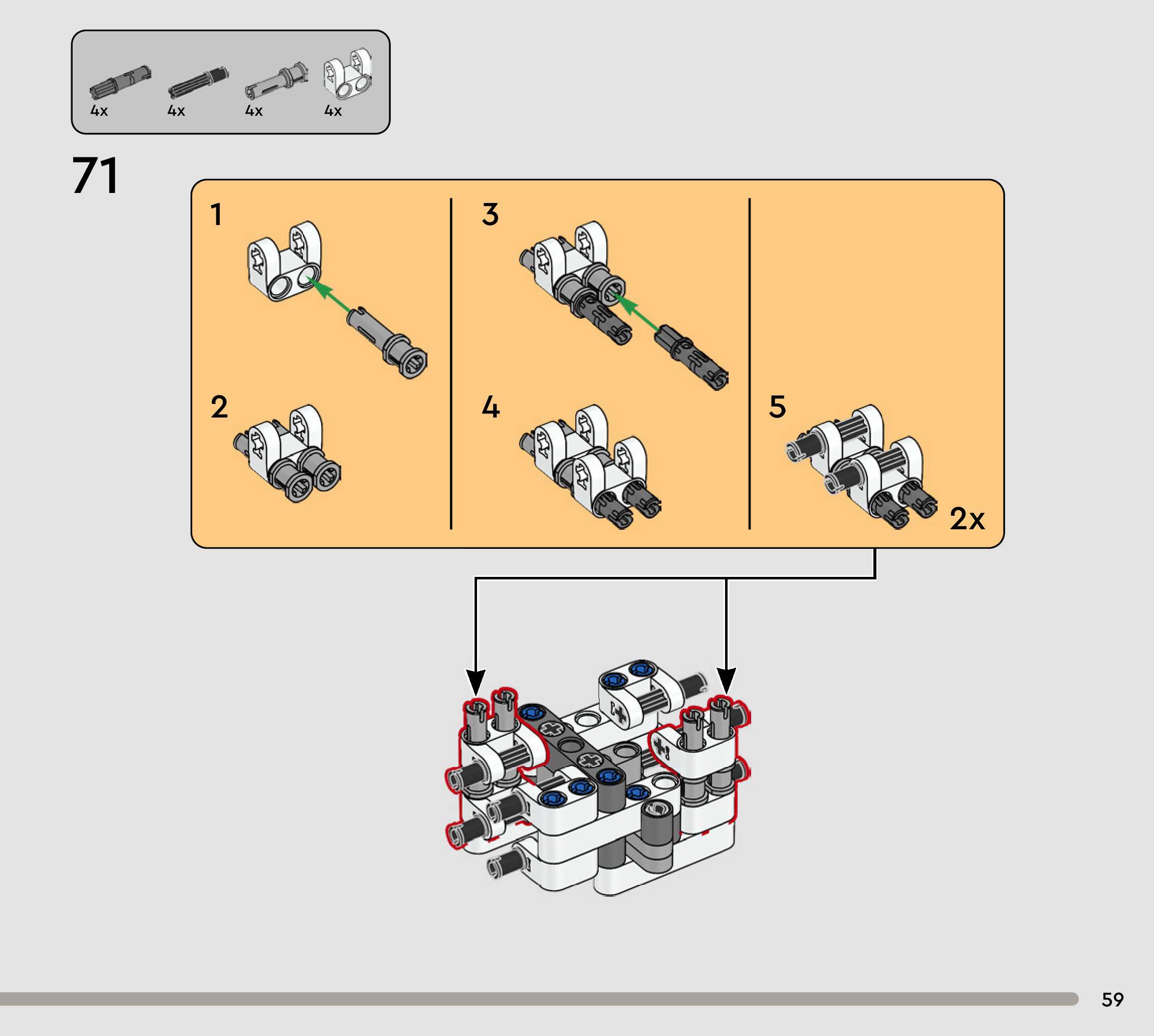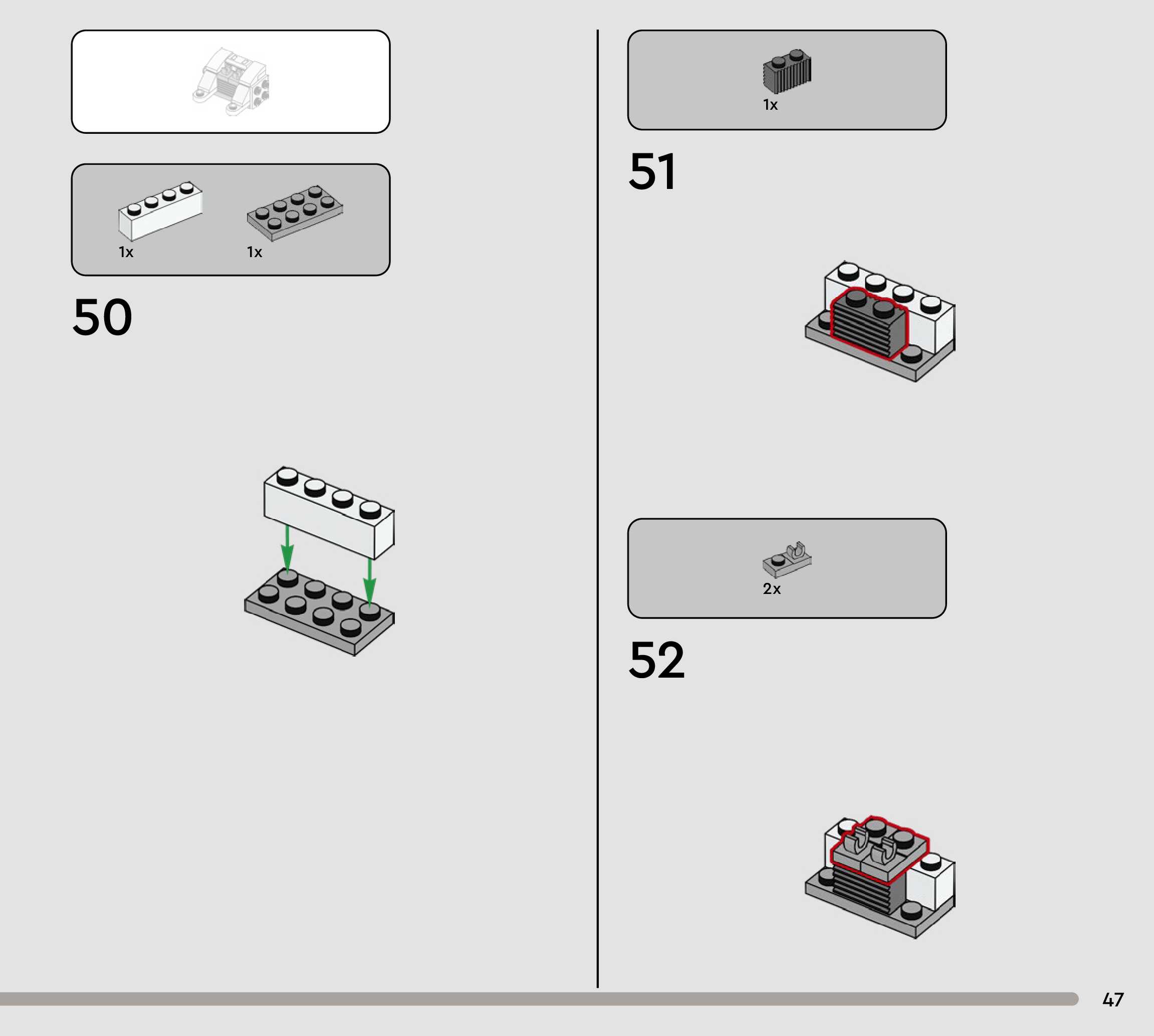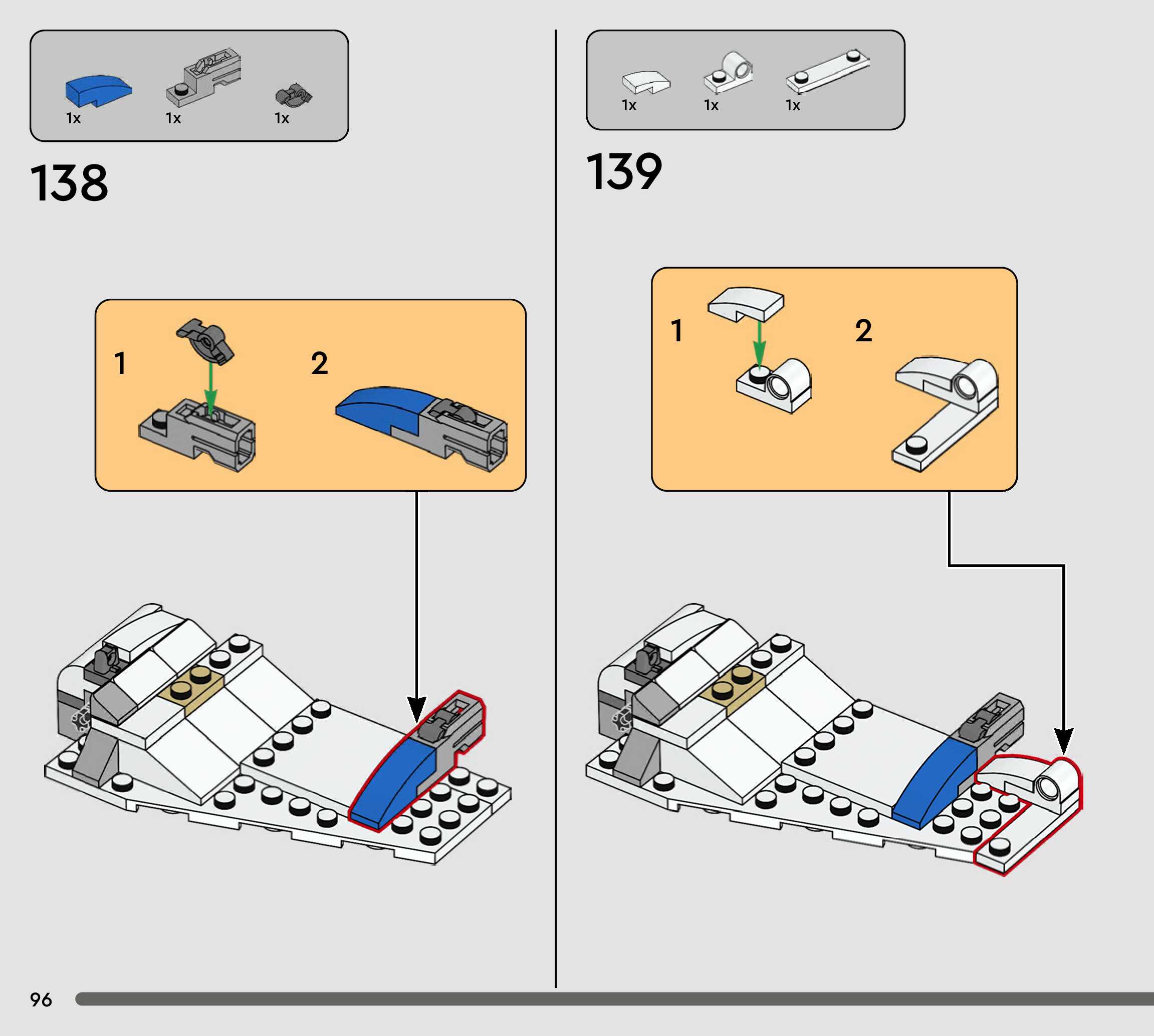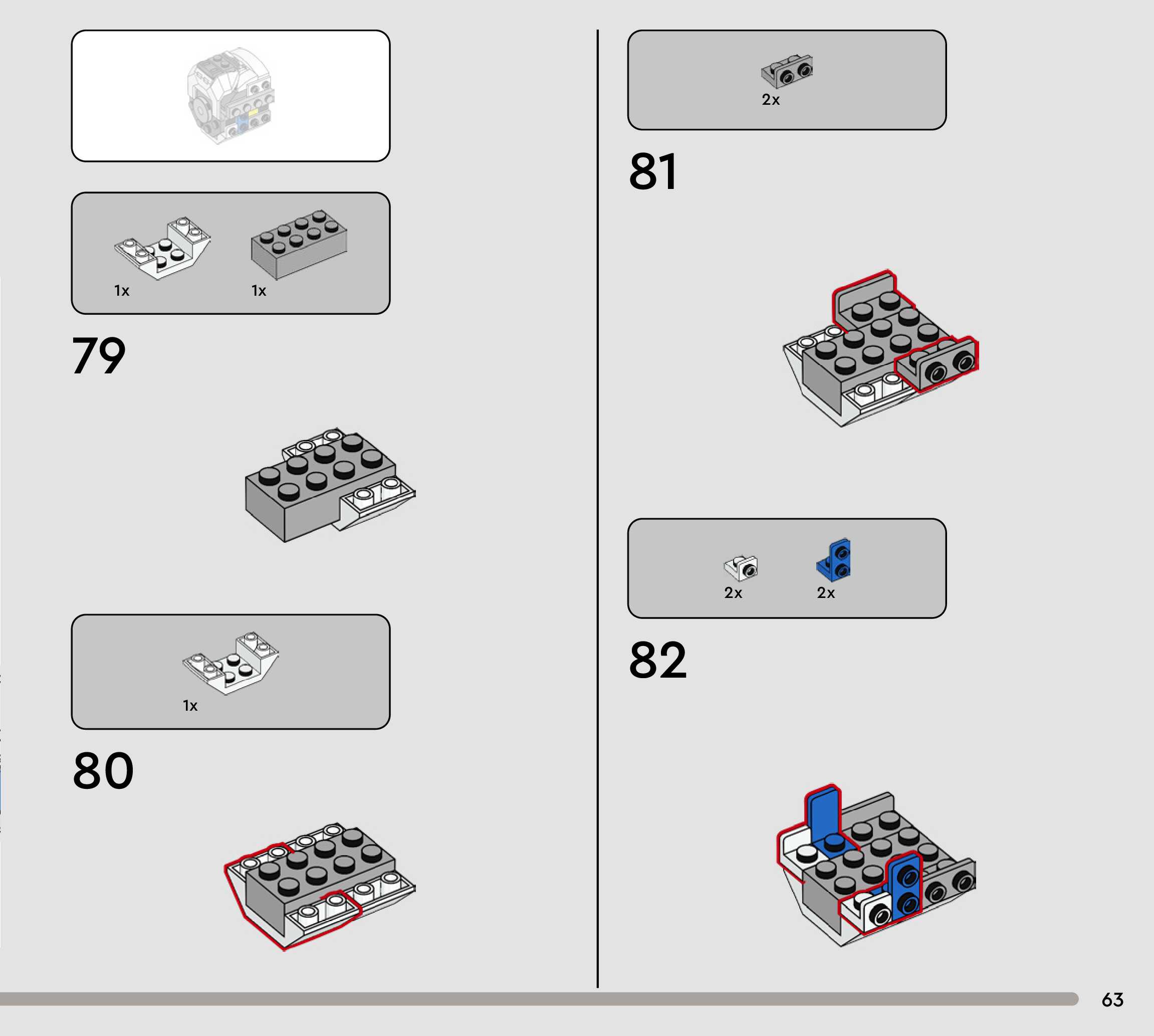 The assembly guide is prepared in a very understandable way for children and adult LEGO enthusiasts. A total of 140 picture galleries are shown, explaining the step-by-step construction stages for 1 different structures.
