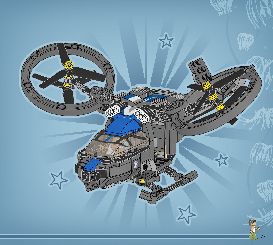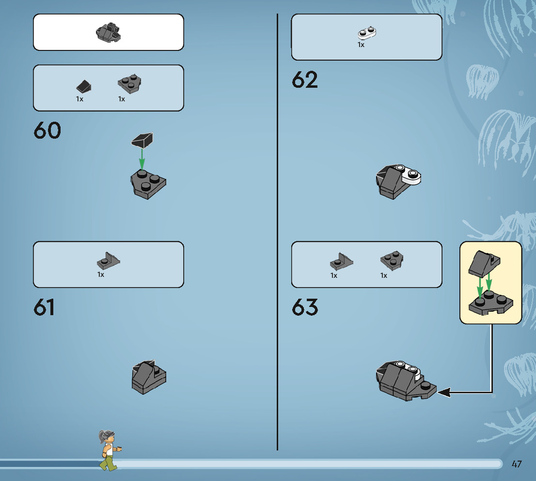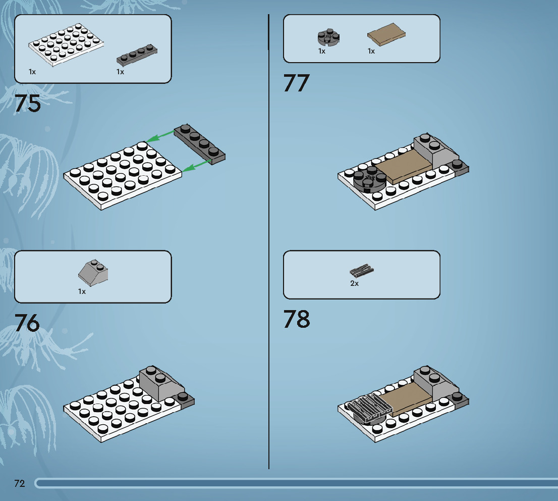 The assembly guide is prepared in a very understandable way for children and adult LEGO enthusiasts. A total of 240 picture galleries are shown, explaining the step-by-step construction stages for 3 different structures.