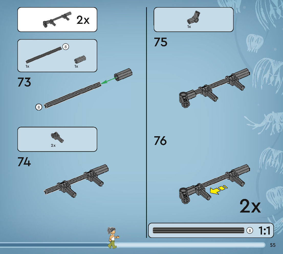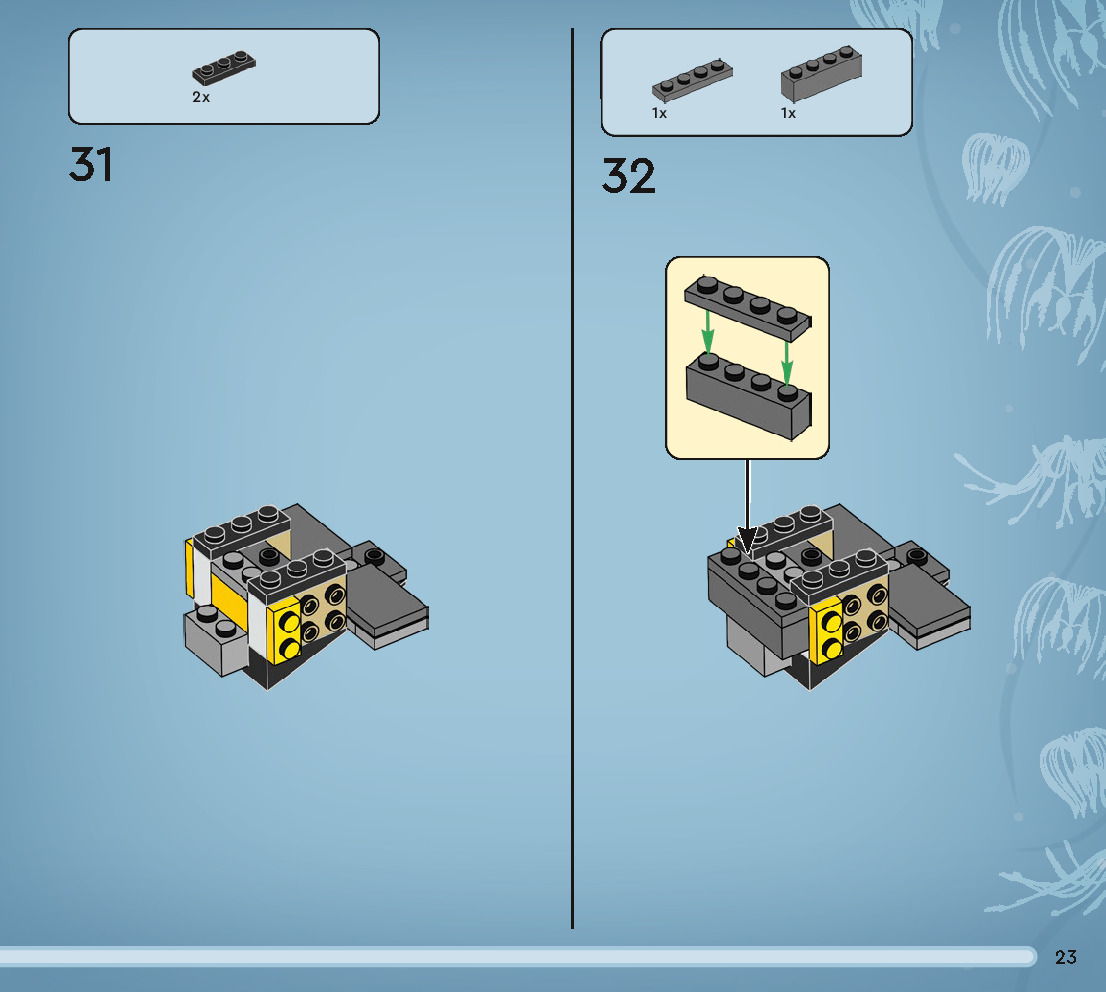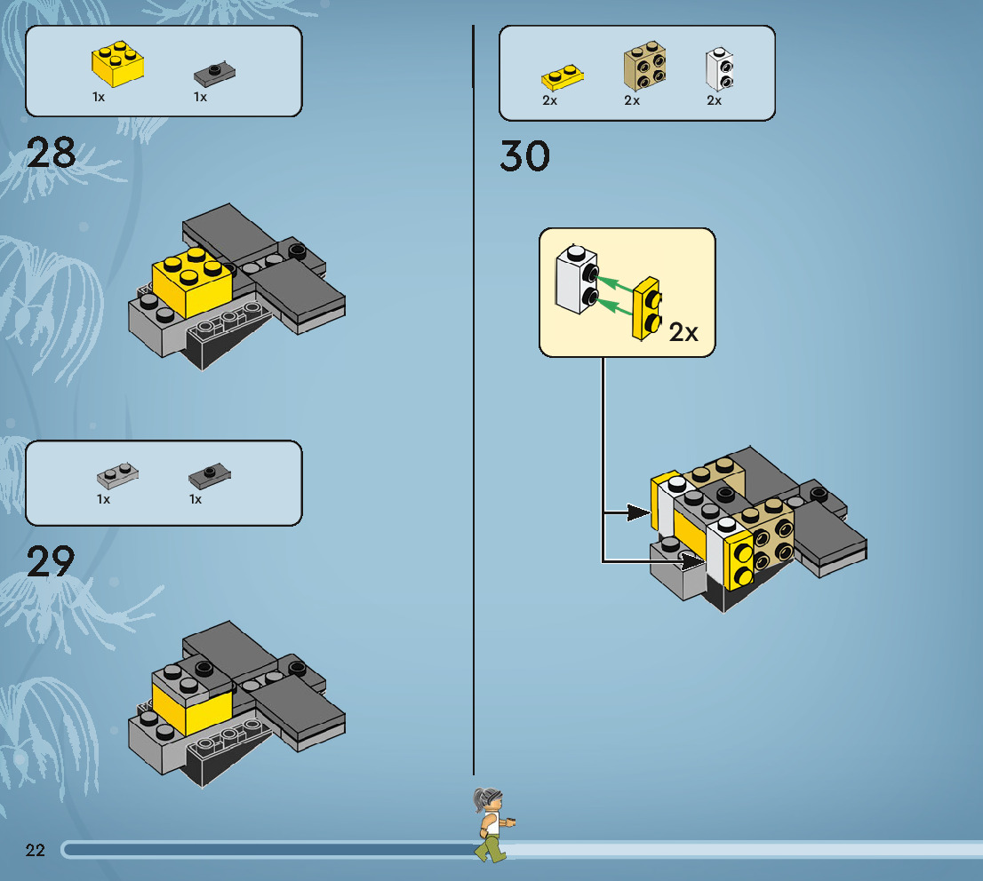 The assembly guide is prepared in a very understandable way for children and adult LEGO enthusiasts. A total of 240 picture galleries are shown, explaining the step-by-step construction stages for 3 different structures.