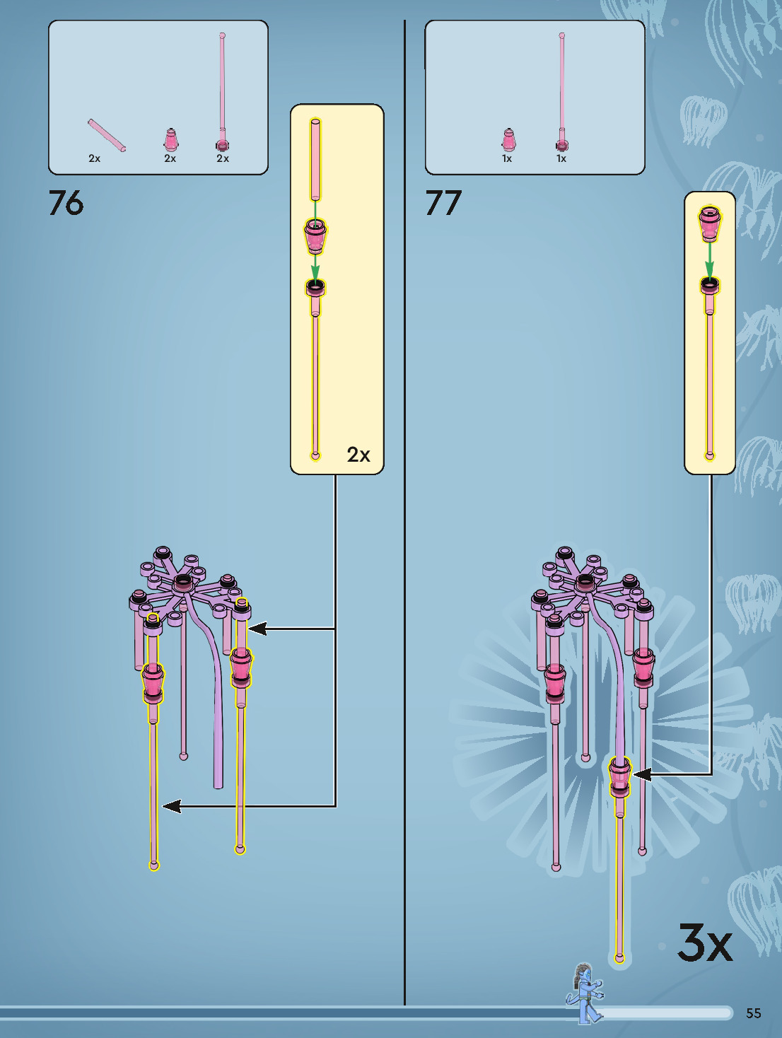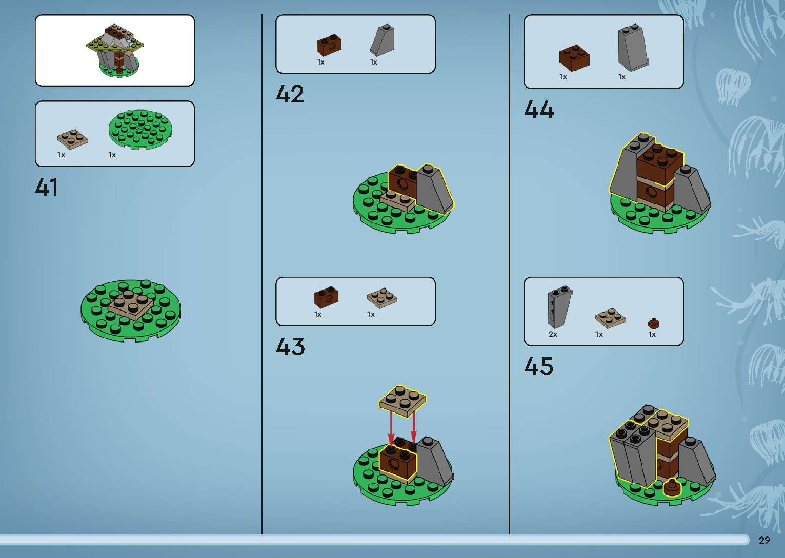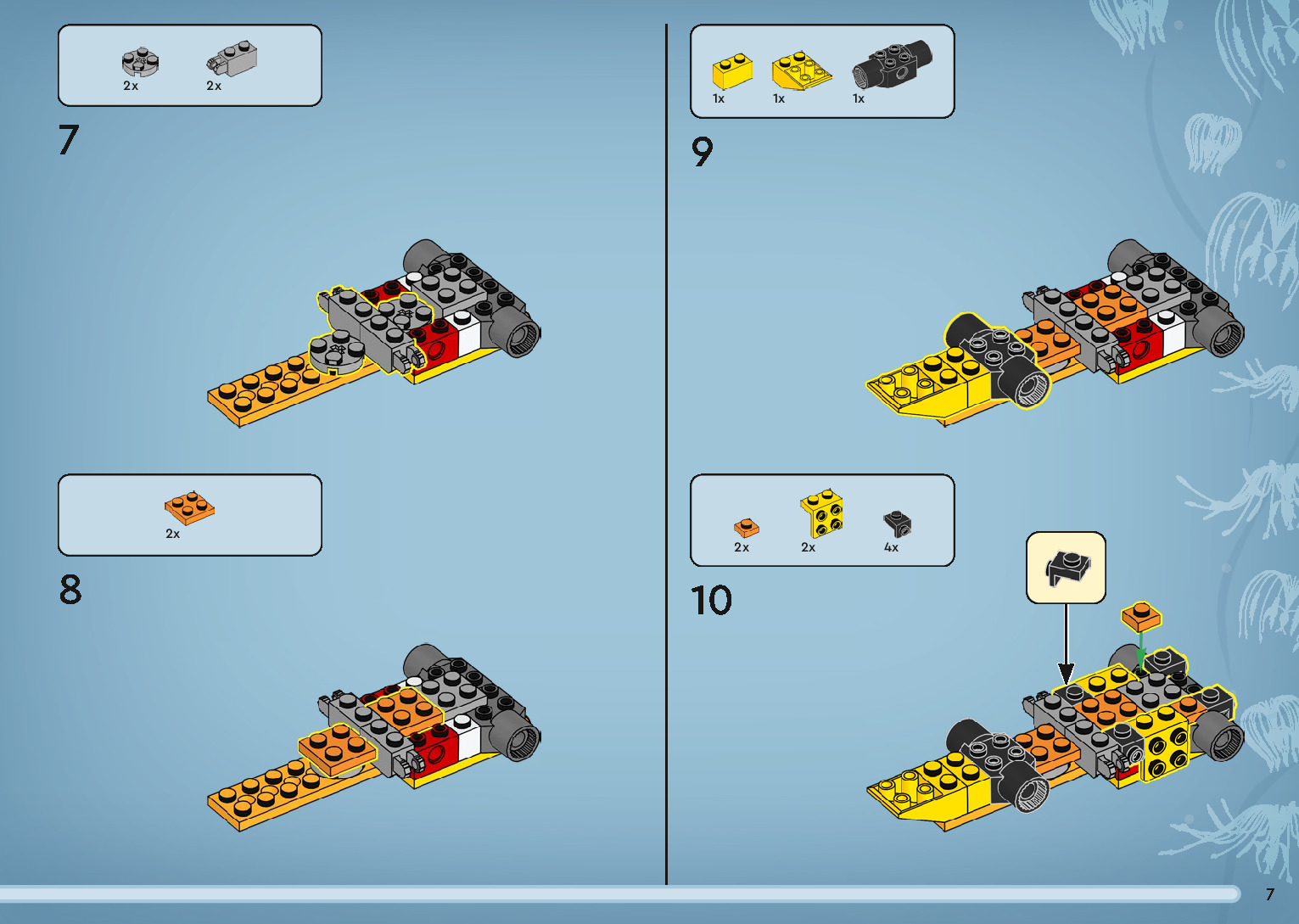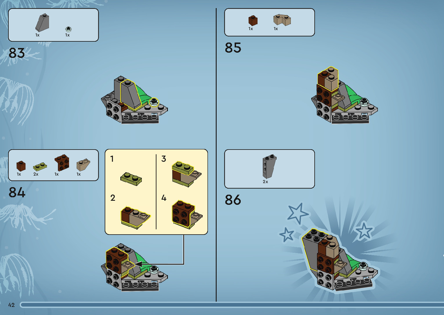 The assembly guide is prepared in a very understandable way for children and adult LEGO enthusiasts. A total of 244 picture galleries are shown, explaining the step-by-step construction stages for 4 different structures.