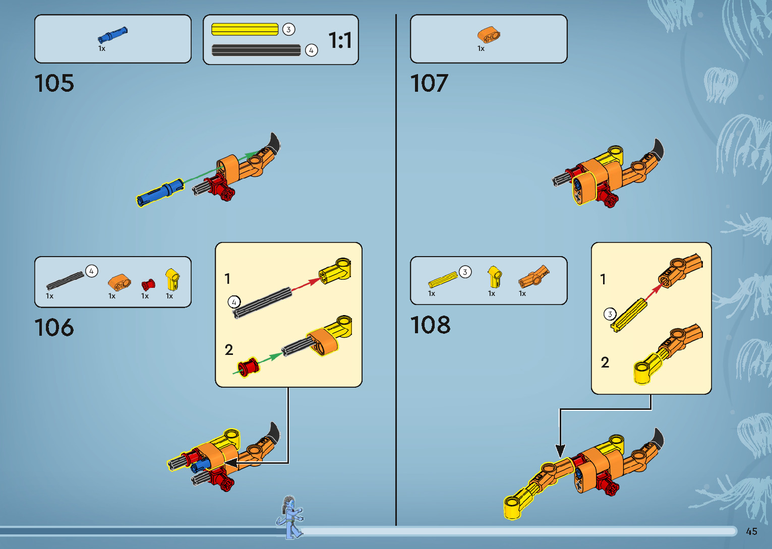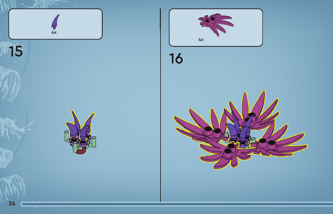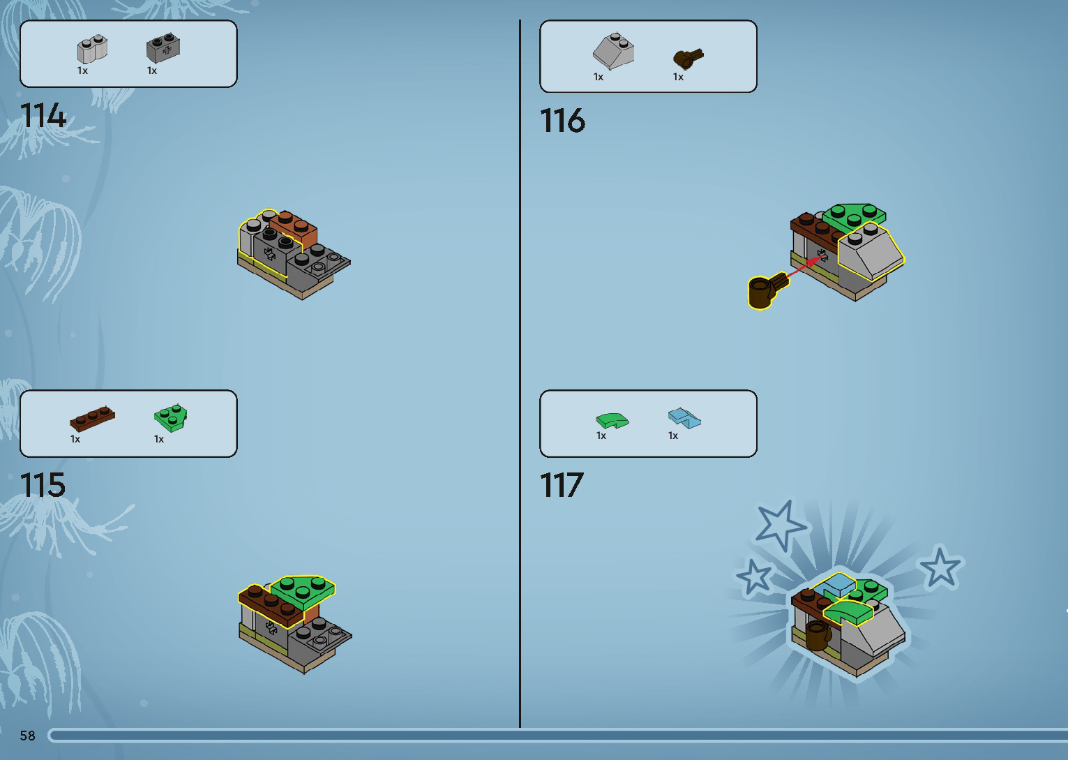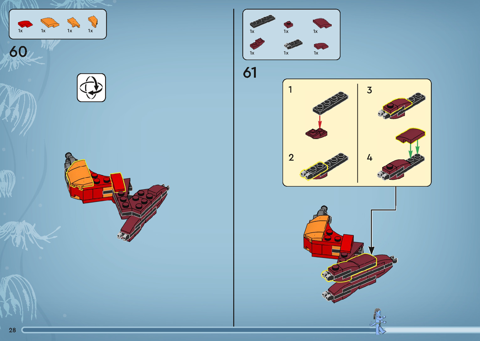The assembly guide is prepared in a very understandable way for children and adult LEGO enthusiasts. A total of 244 picture galleries are shown, explaining the step-by-step construction stages for 4 different structures.
