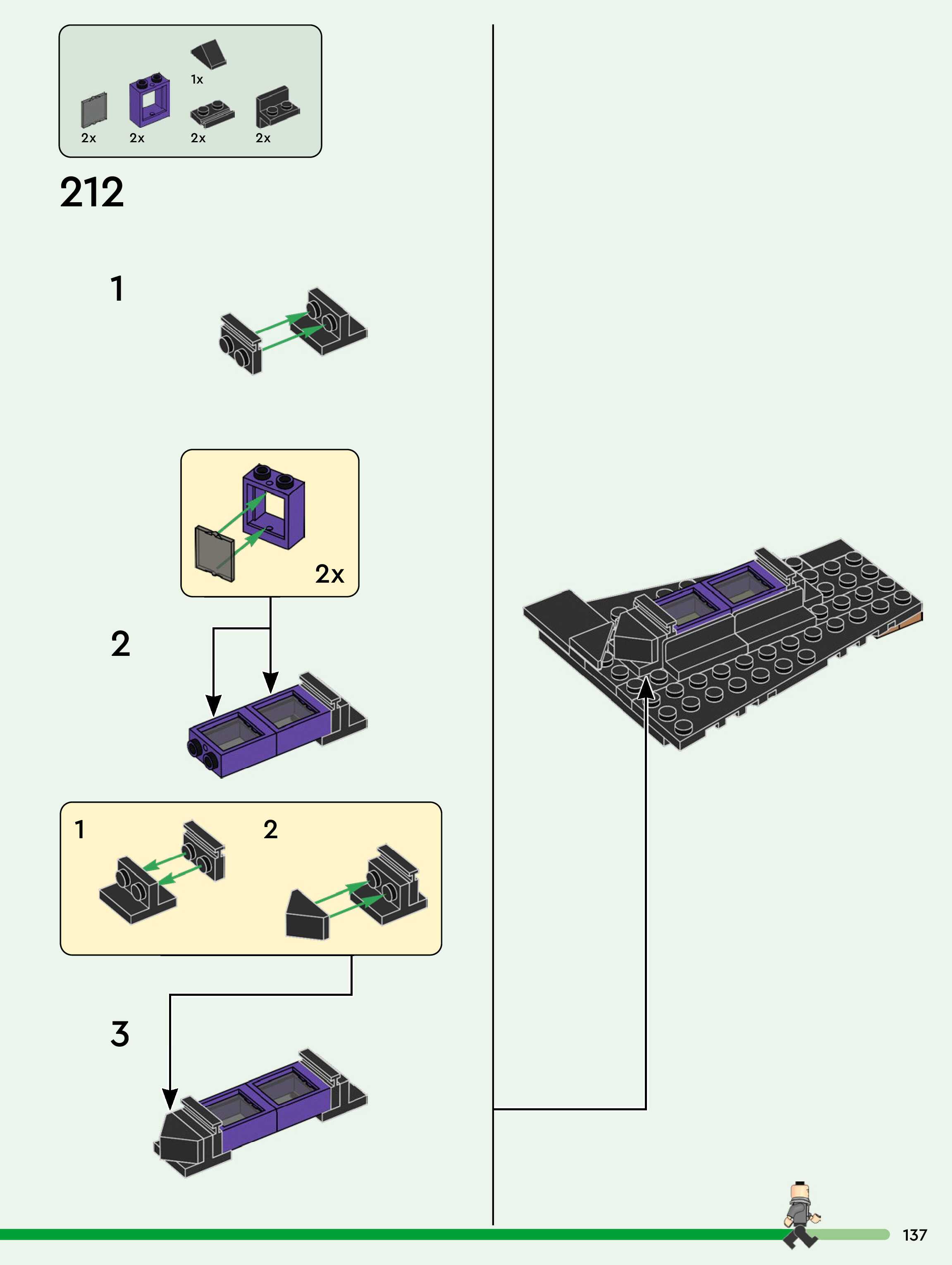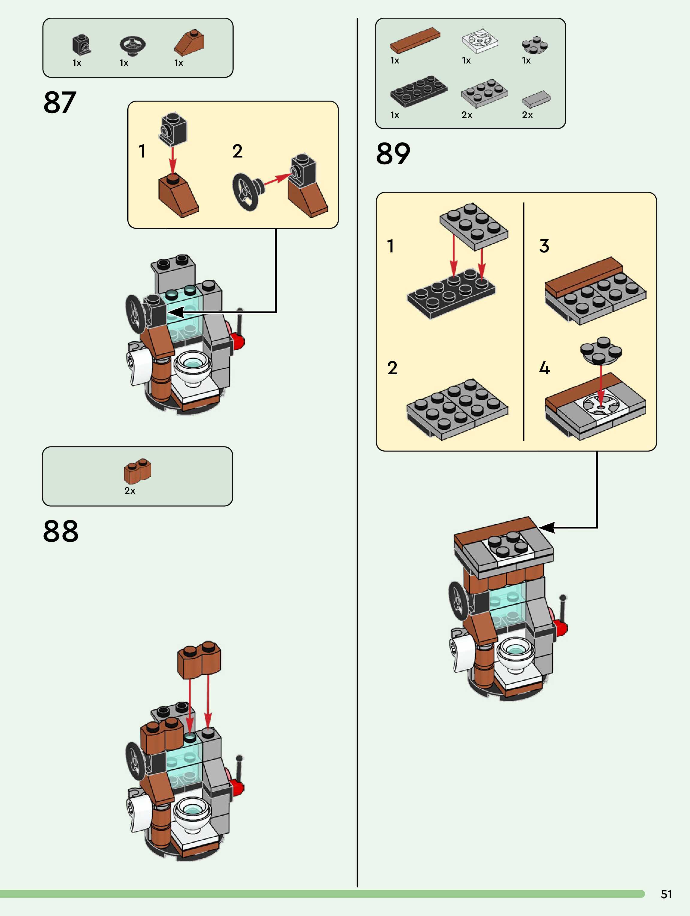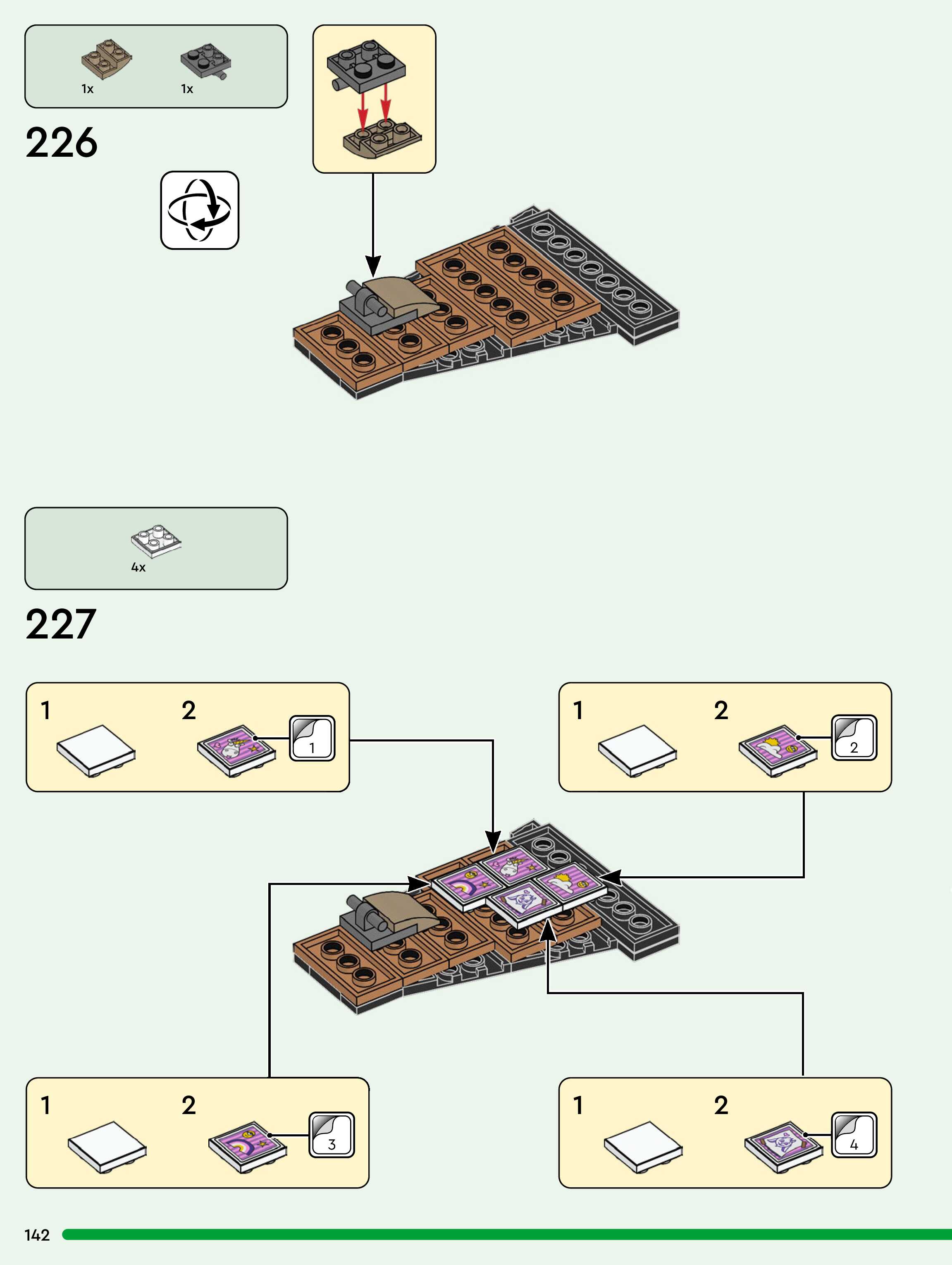 The assembly guide is prepared in a very understandable way for children and adult LEGO enthusiasts. A total of 204 picture galleries are shown, explaining the step-by-step construction stages for 2 different structures.