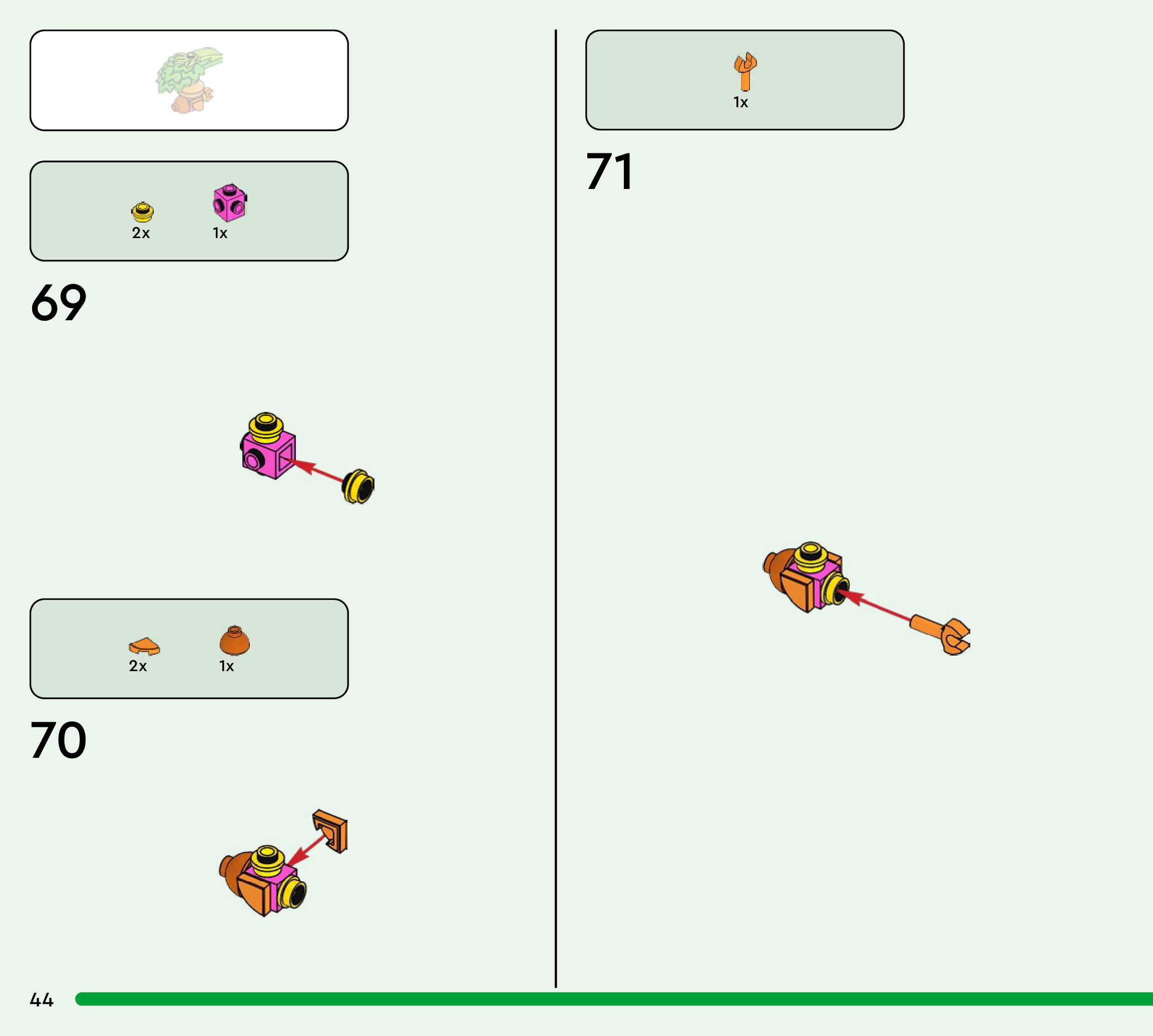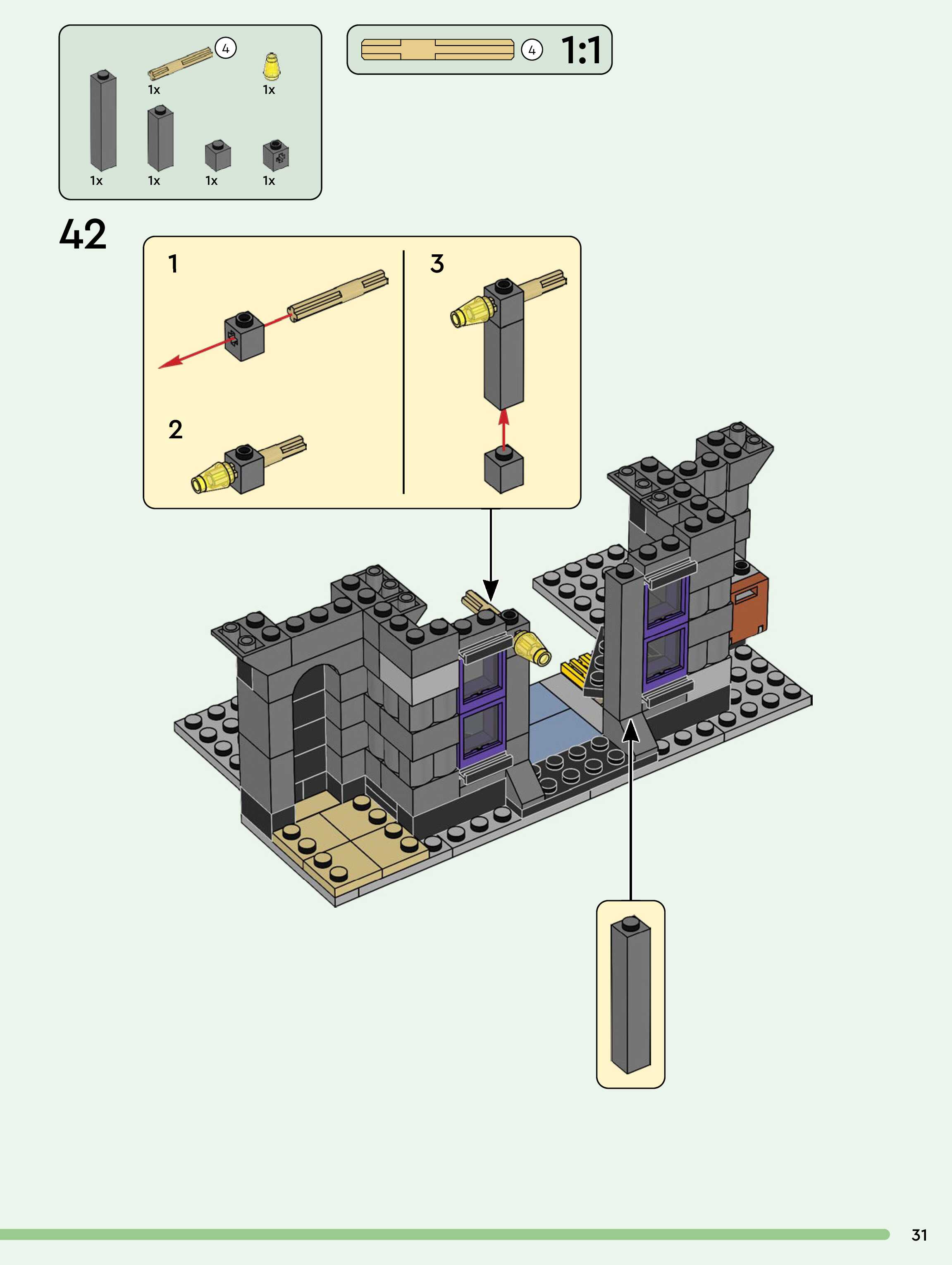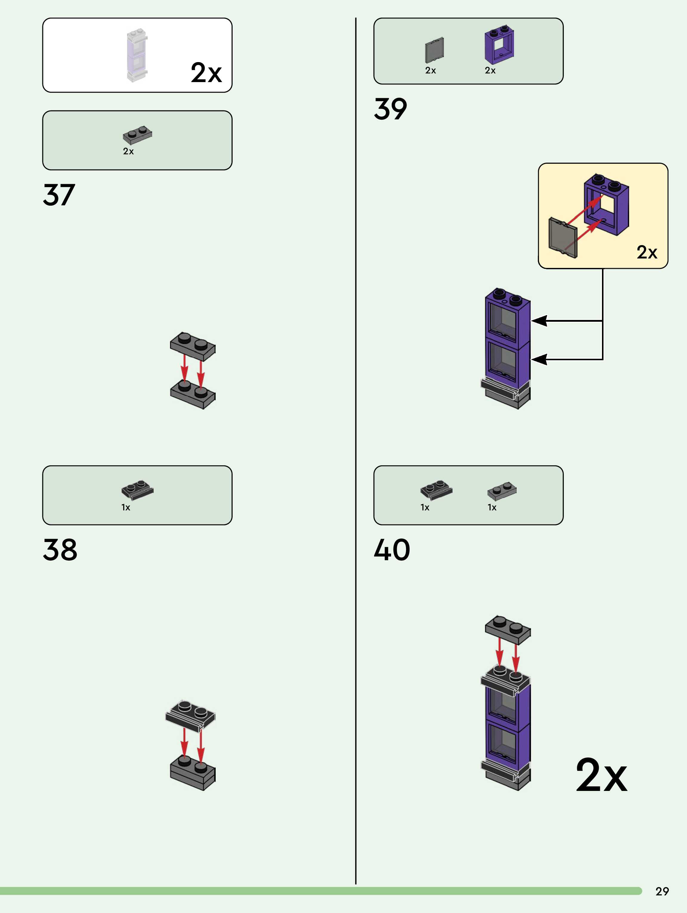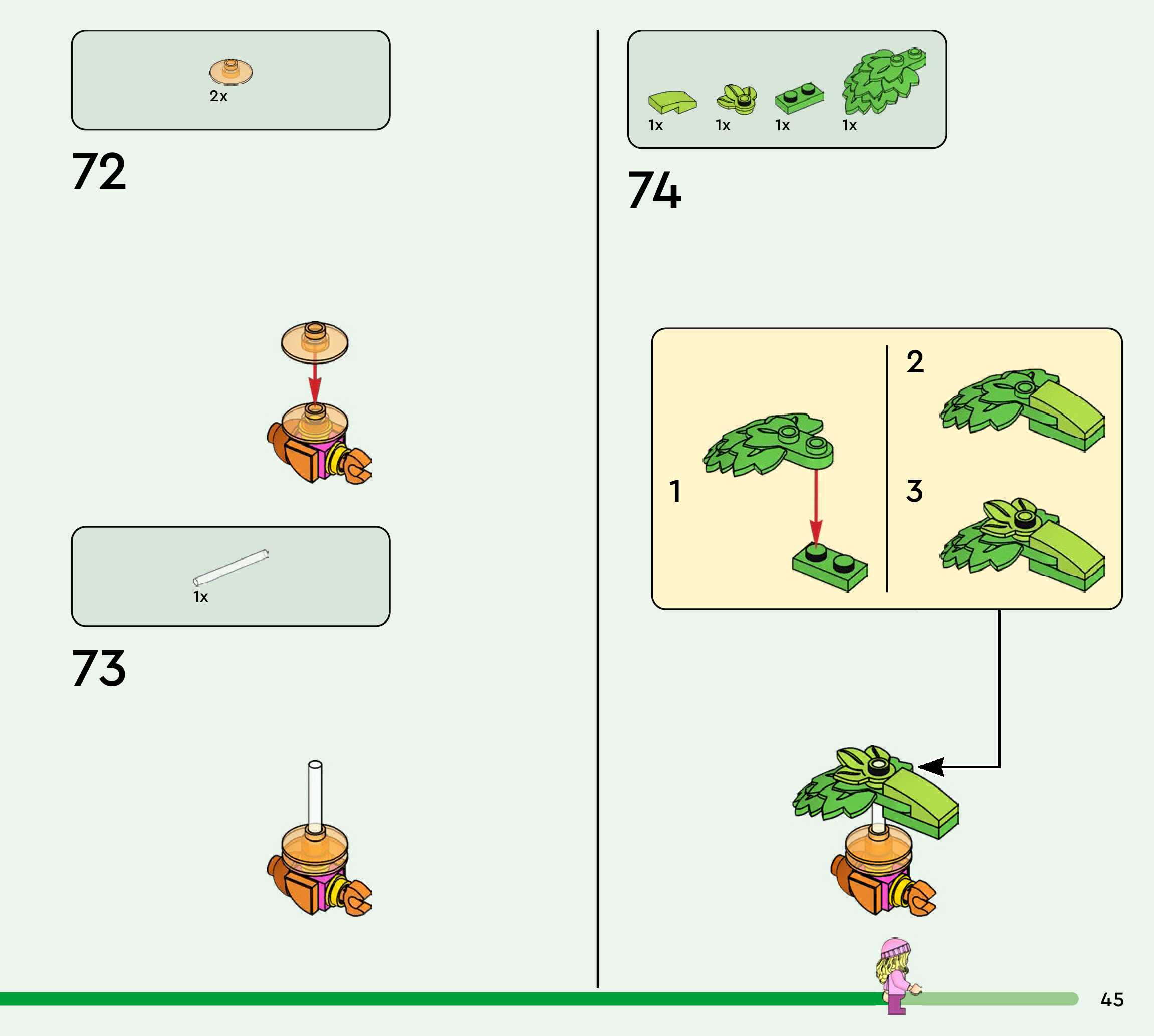 The assembly guide is prepared in a very understandable way for children and adult LEGO enthusiasts. A total of 204 picture galleries are shown, explaining the step-by-step construction stages for 2 different structures.