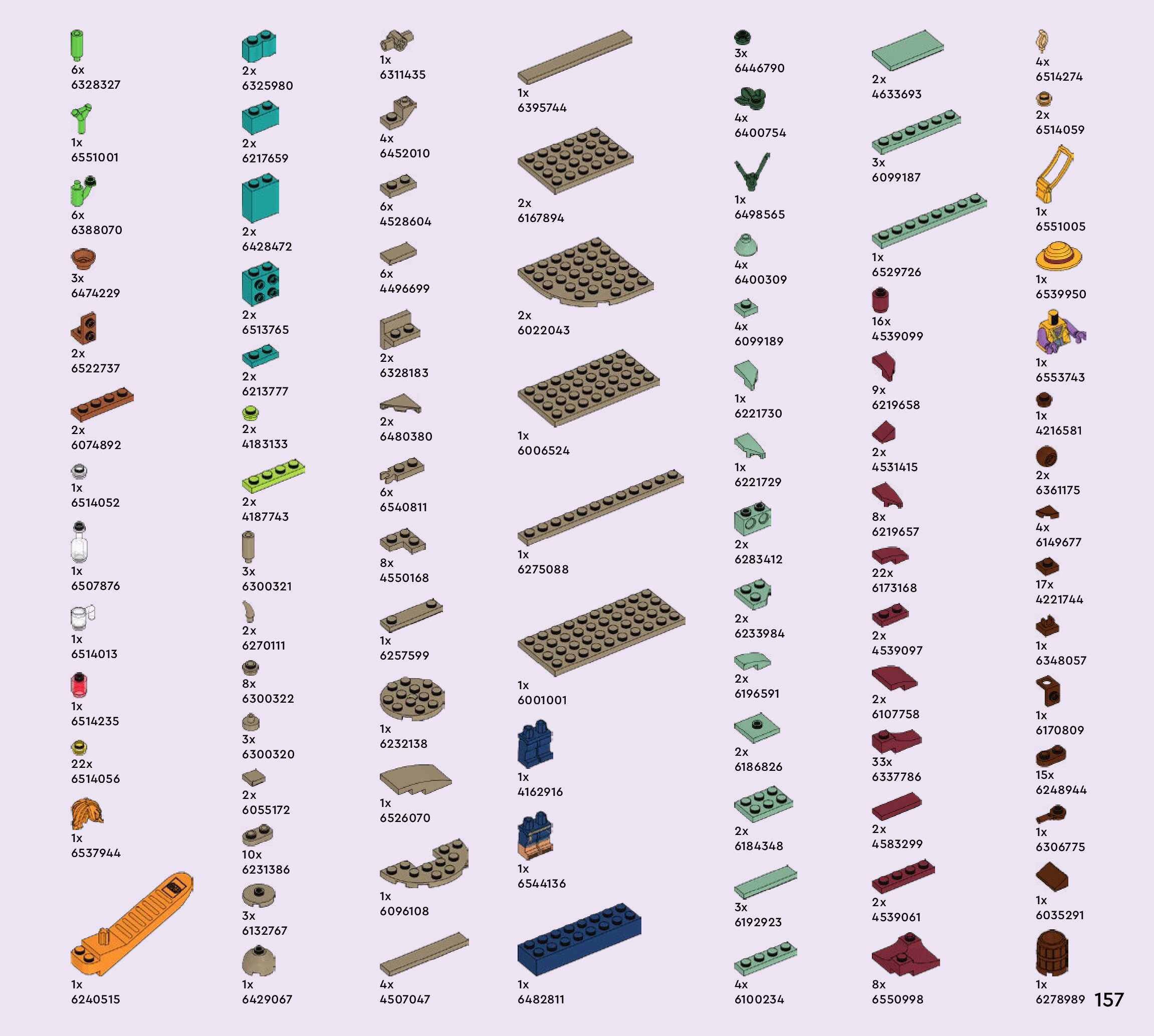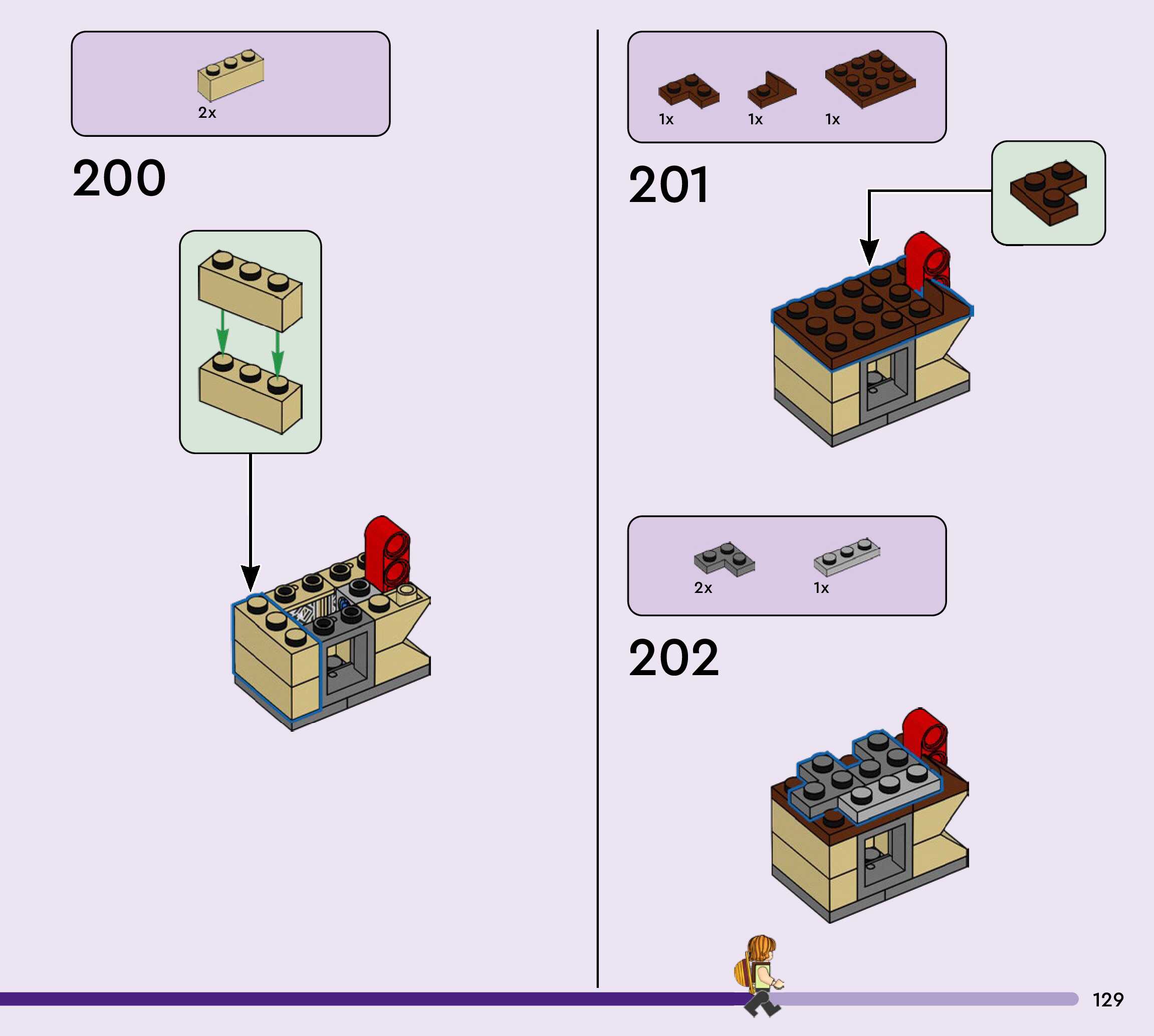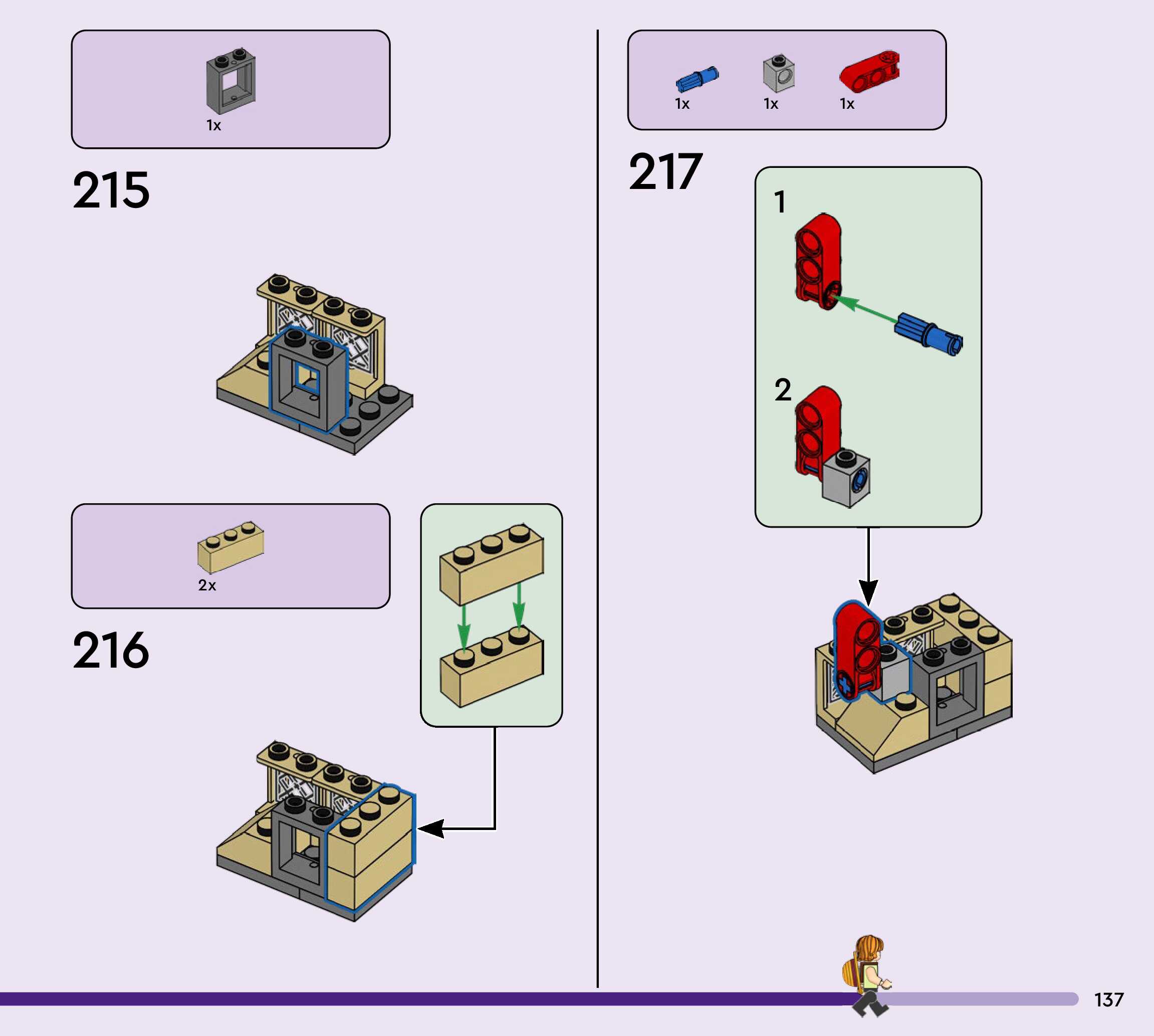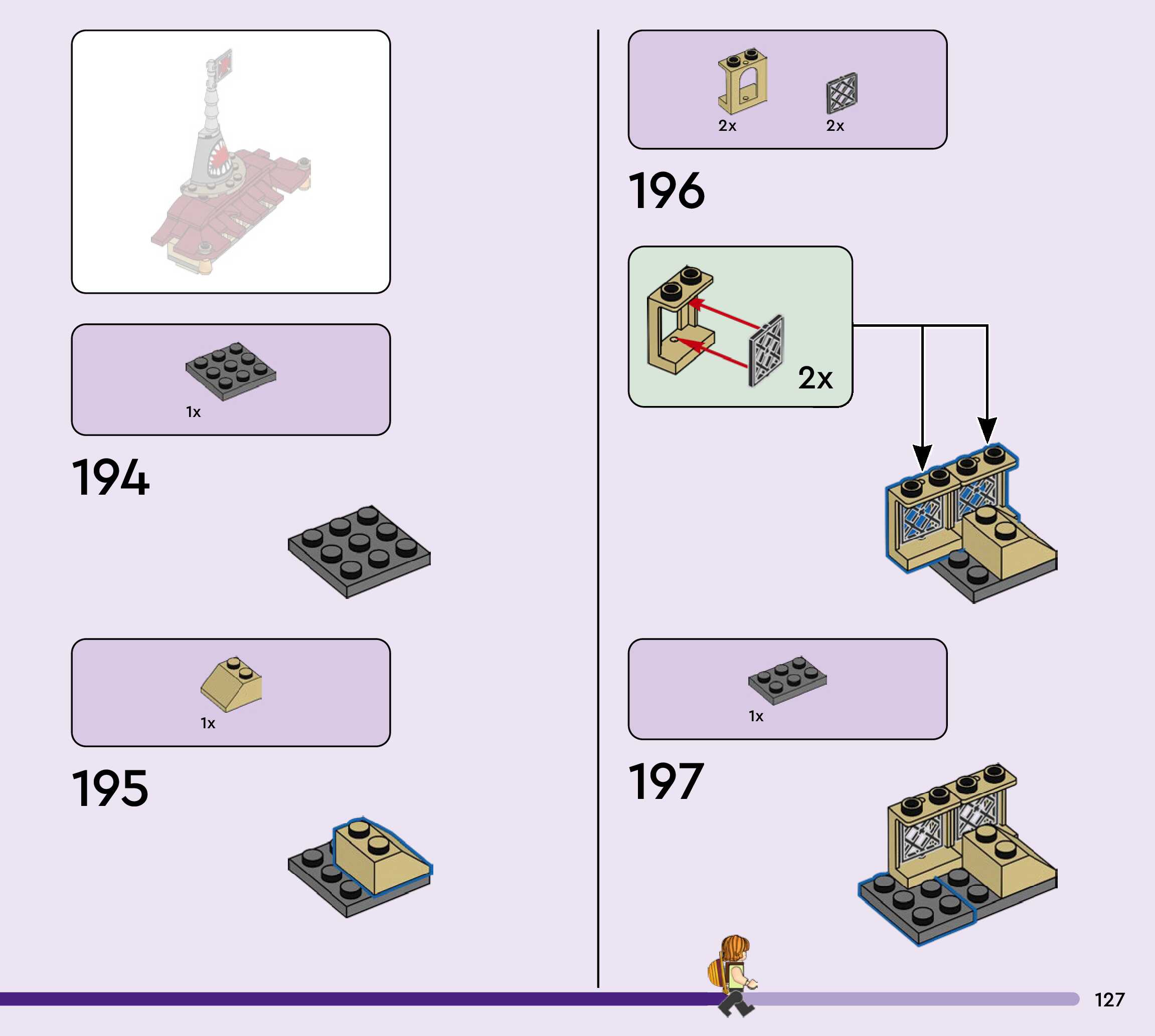 The assembly guide is prepared in a very understandable way for children and adult LEGO enthusiasts. A total of 244 picture galleries are shown, explaining the step-by-step construction stages for 3 different structures.